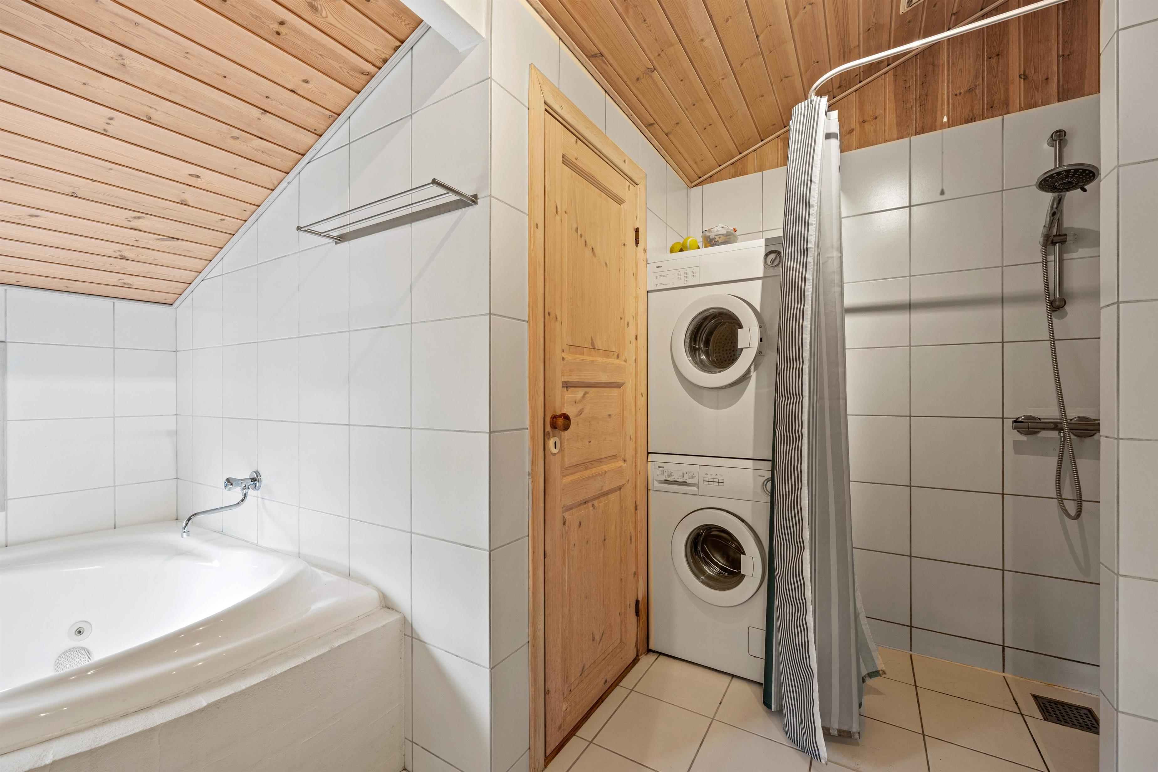 Your holiday can begin the moment you step into this beautiful 110-square-metre holiday home. The open-plan living space, combining kitchen, dining area and living room, welcomes you with its wood-panelled high ceilings creating a warm atmosphere. Settle down on the sofas in the evening for a film night, with content available via Chromecast streaming.