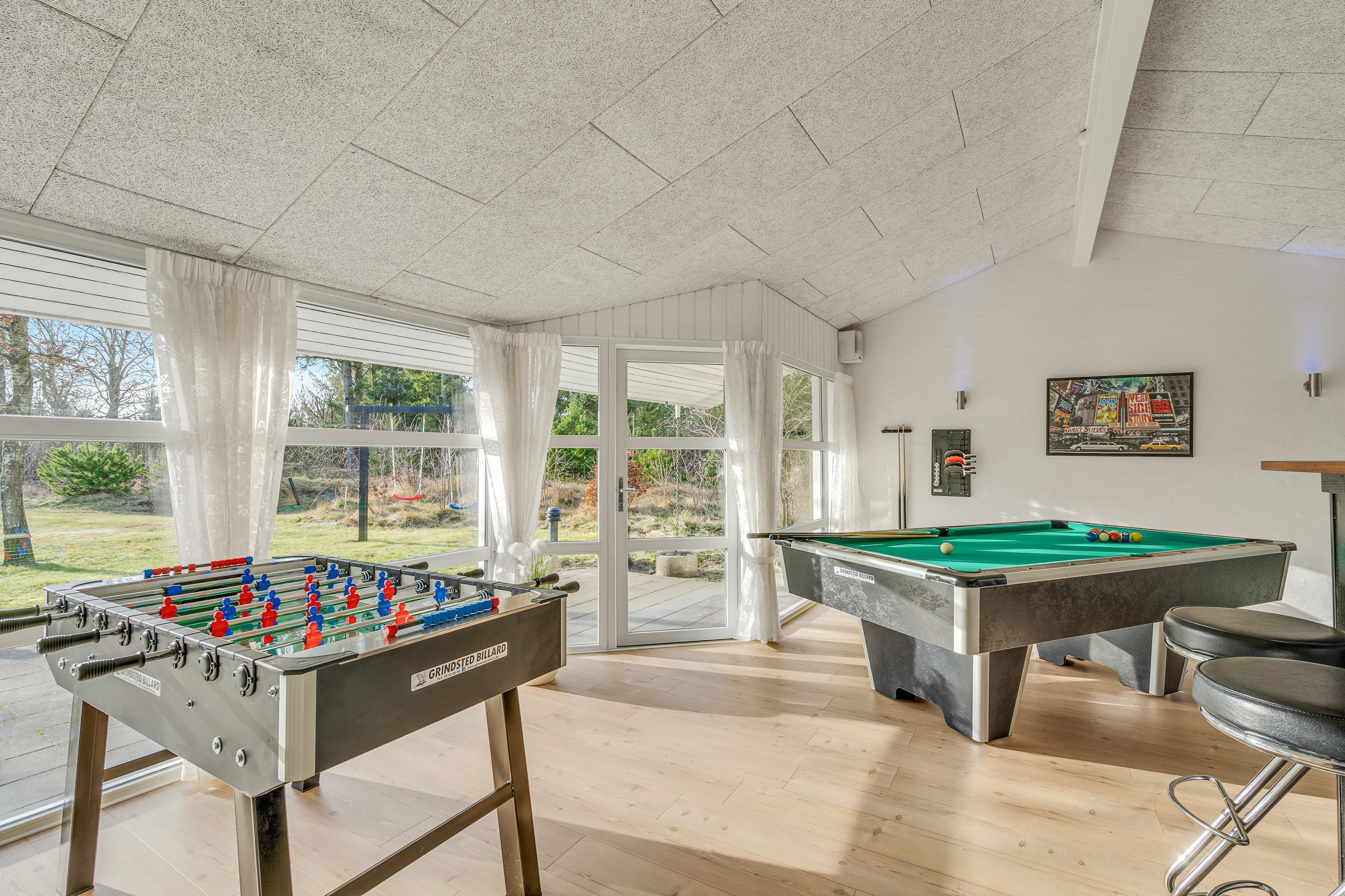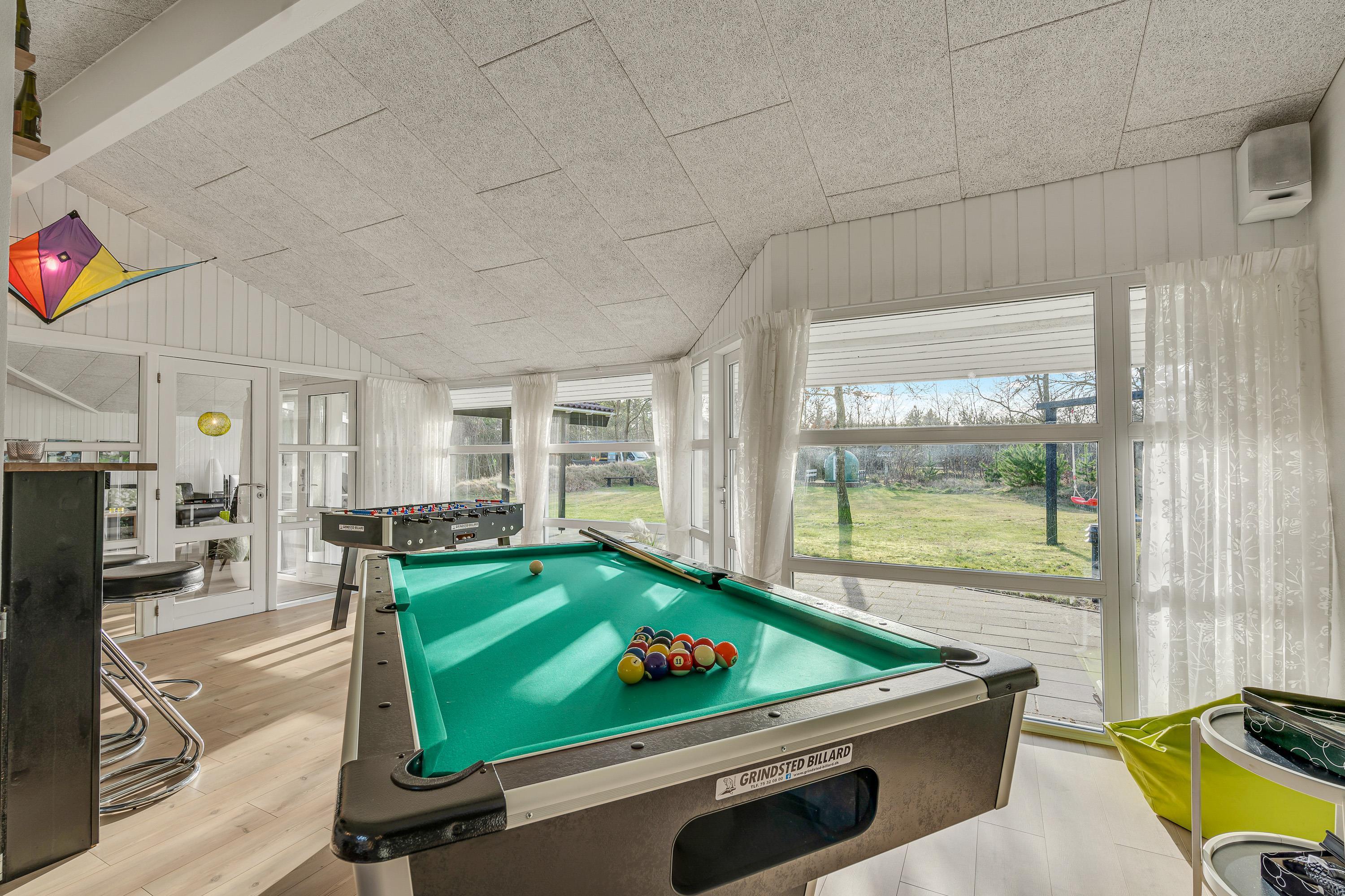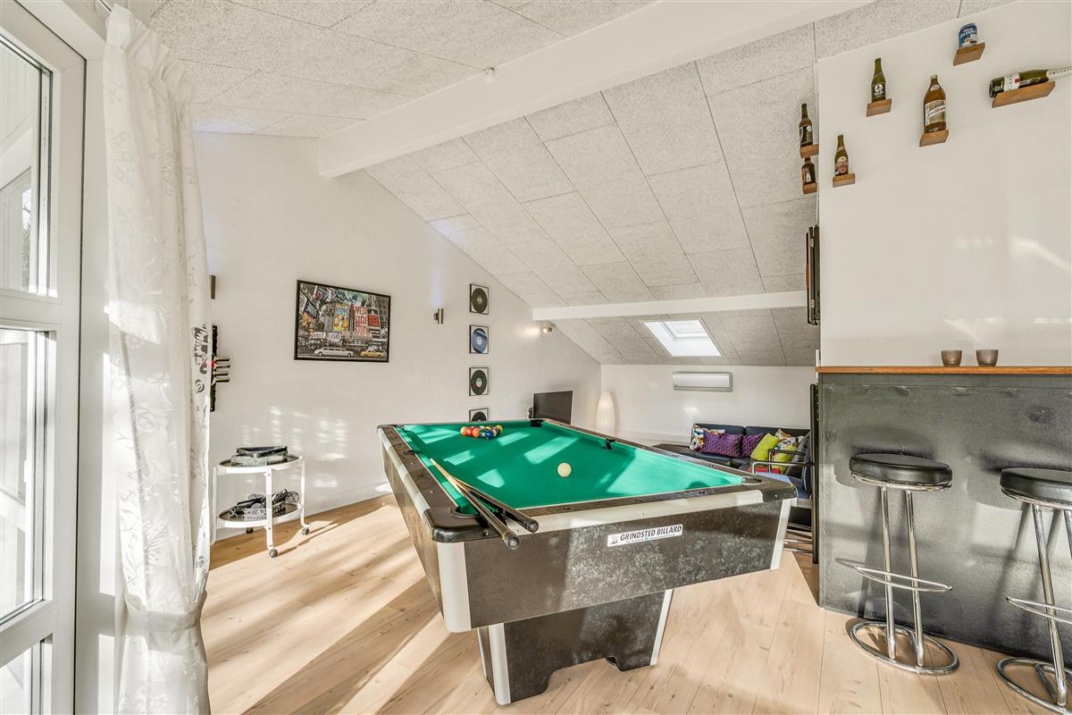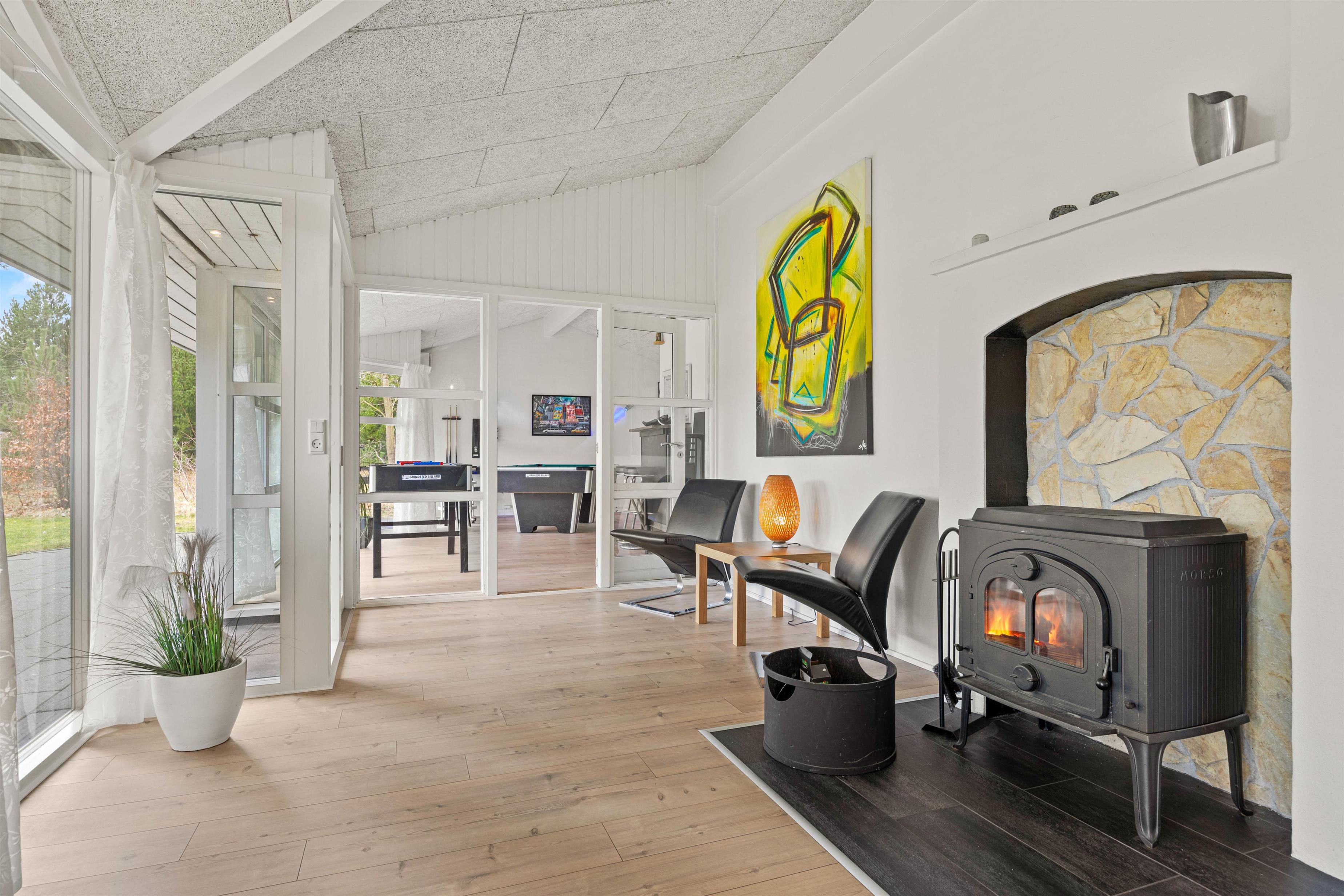 The bright interior, large windows and skylights create a special atmosphere throughout. The spacious, well-equipped kitchen provides the perfect setting for preparing meals together, while you can gather around the dining table or relax in one of the comfortable living room corners. Both children and adults will enjoy a game of table football, while others might prefer to unwind on the sofa with a good book by the wood-burning stove.