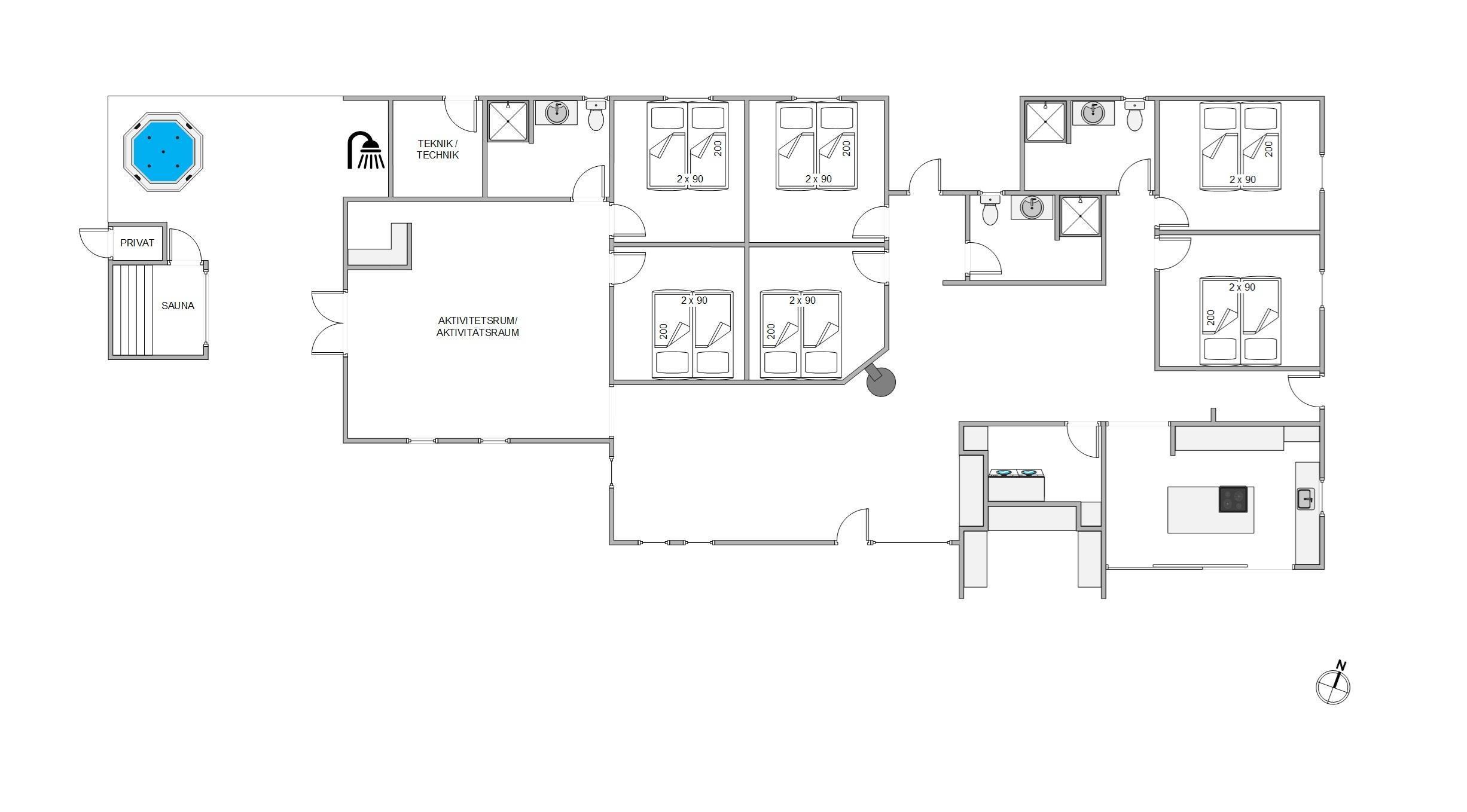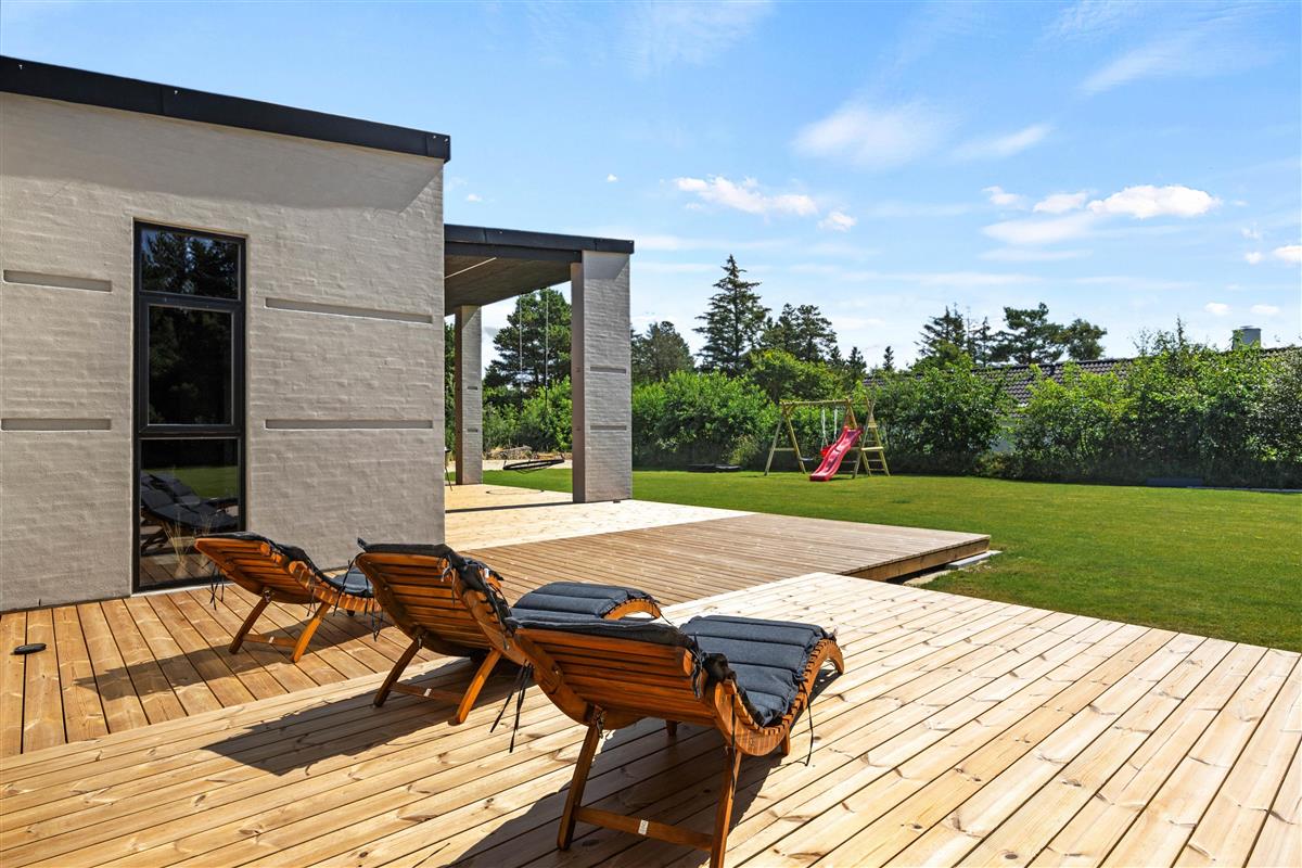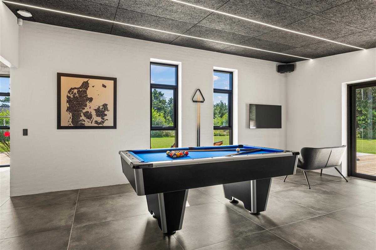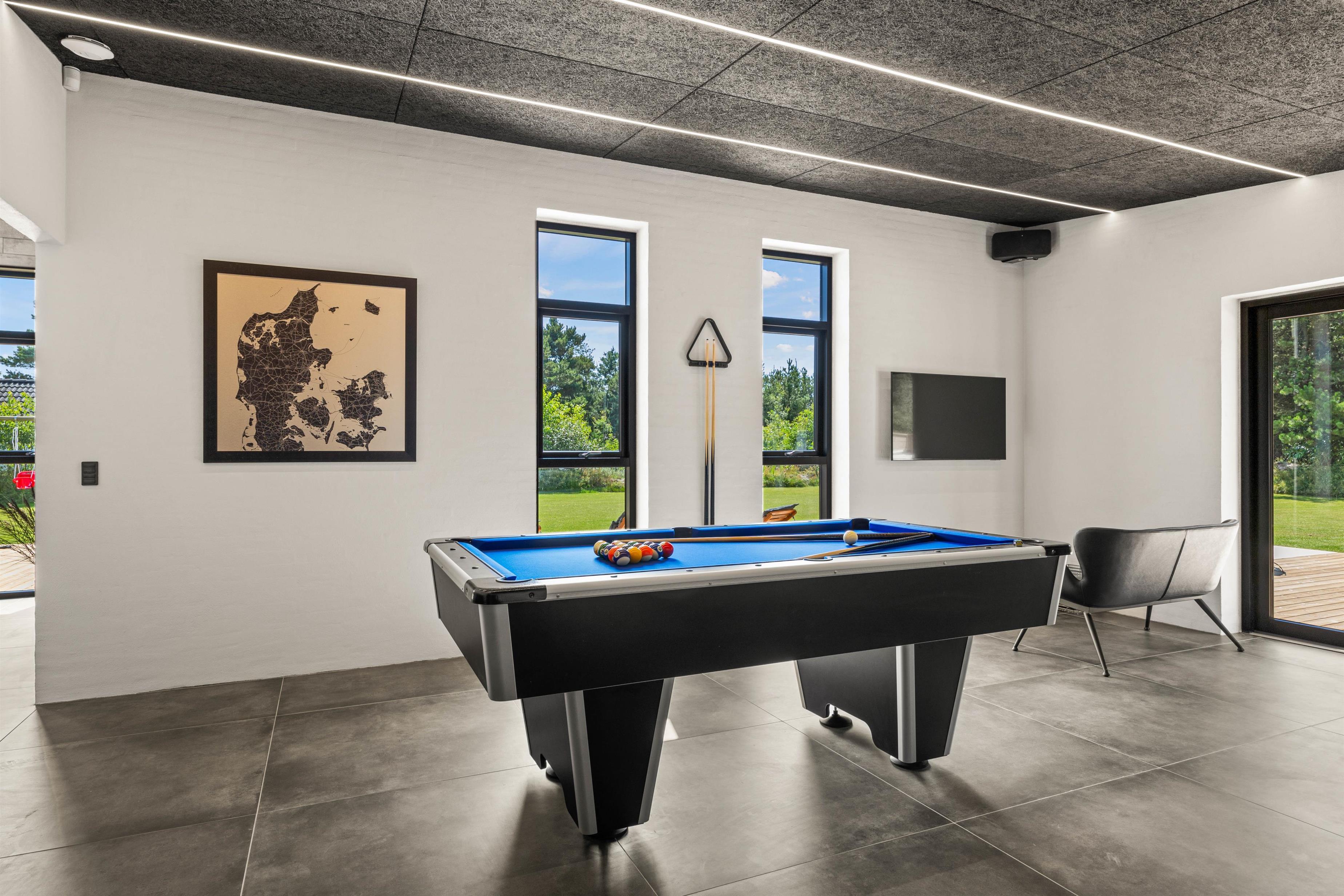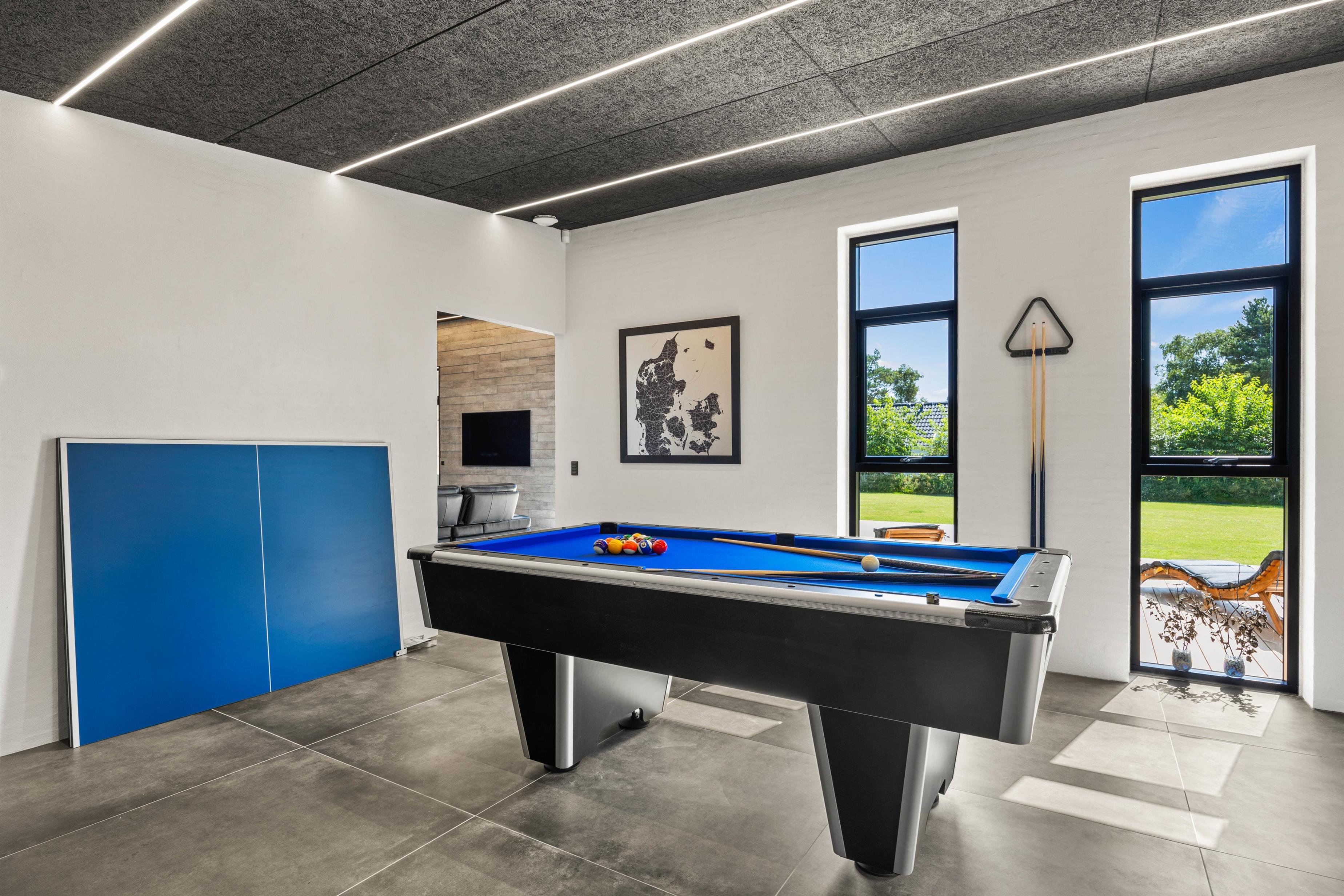 Welcome to Rævestien 29 in Henneby! Built in 2024, this luxurious holiday home has been carefully designed down to the smallest detail to provide the perfect holiday setting. The 227-square-metre holiday home accommodates up to 12 guests and features an excellent games room with pool table, air hockey and table tennis, as well as a sauna and spa.