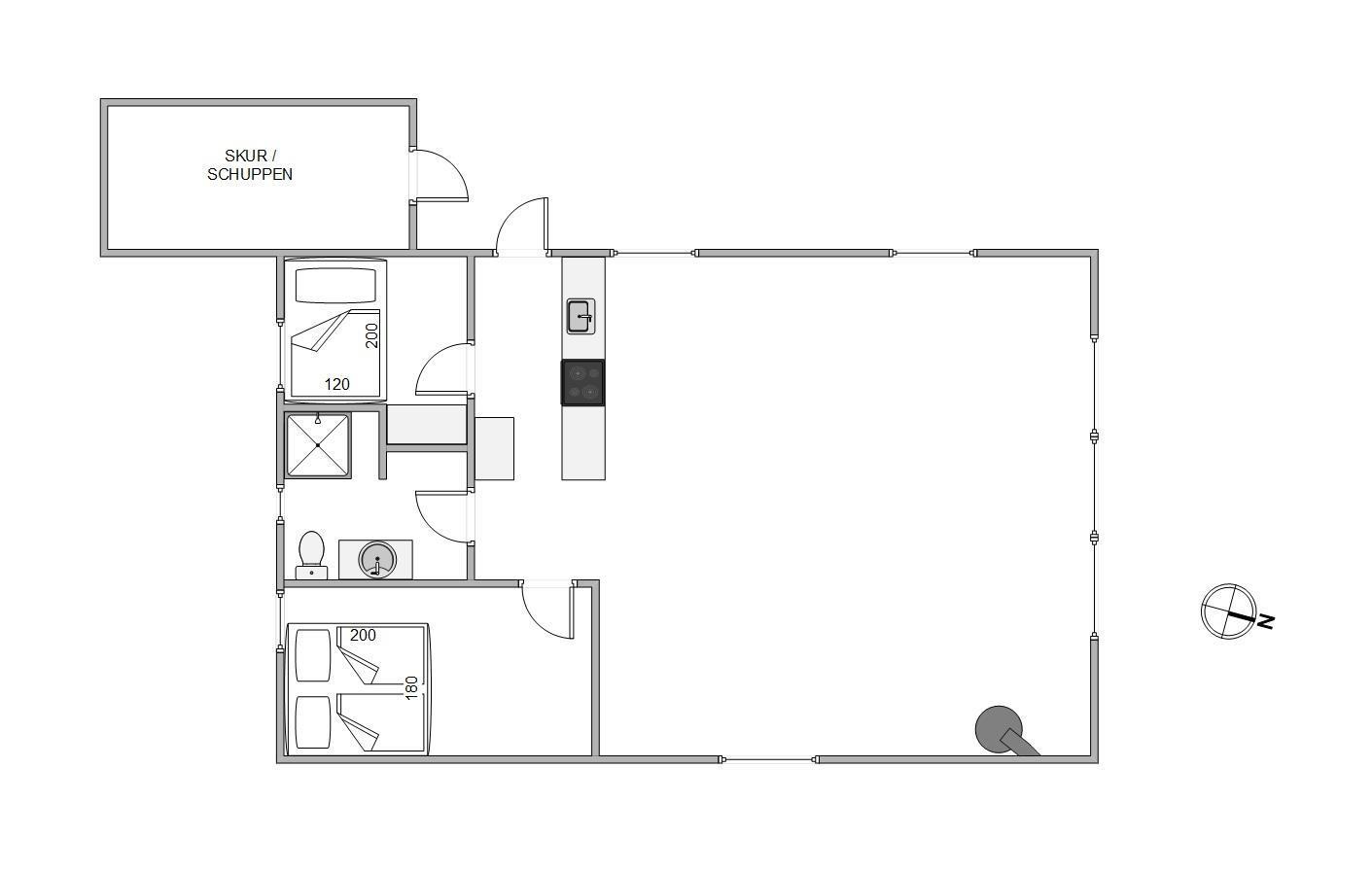 This small but perfectly formed holiday home, renovated in 2019, offers 55 square metres of living space with two bedrooms and one bathroom with underfloor heating. The kitchen is open-plan with the living area, allowing you to cook together, play games, or watch your favourite series on TV using Chromecast while making yourself comfortable.