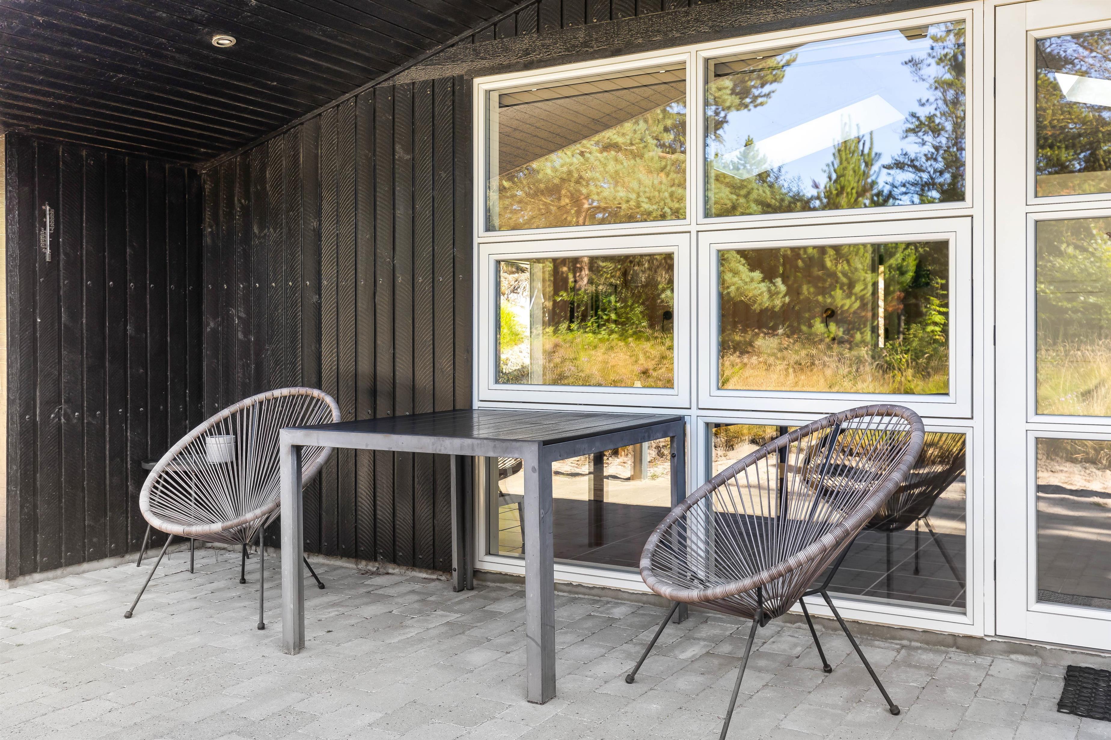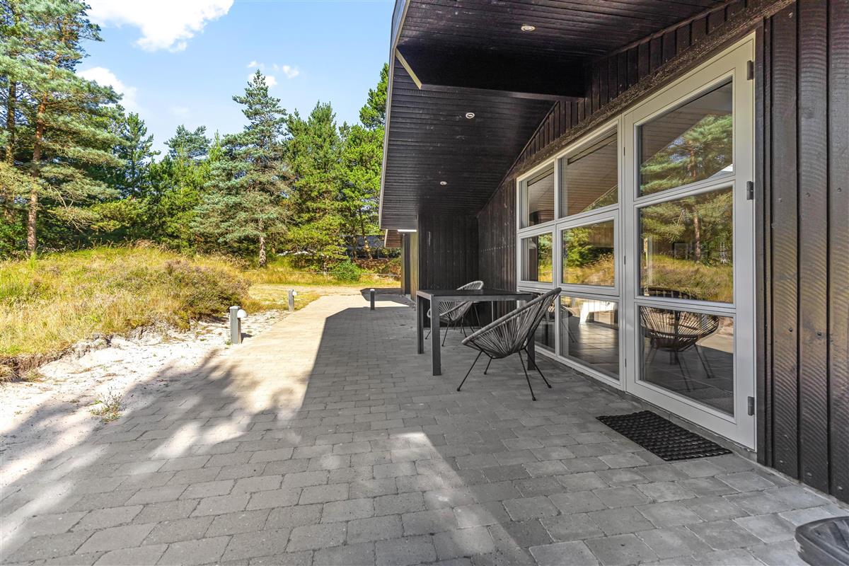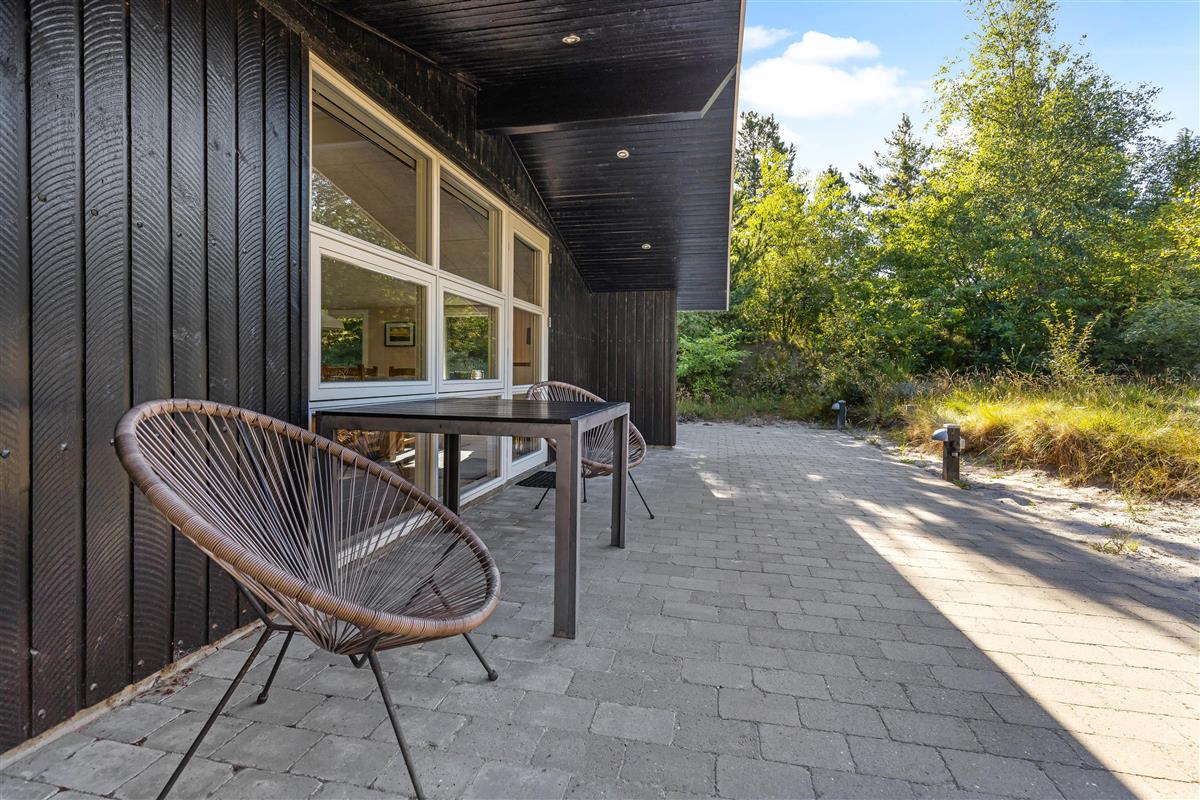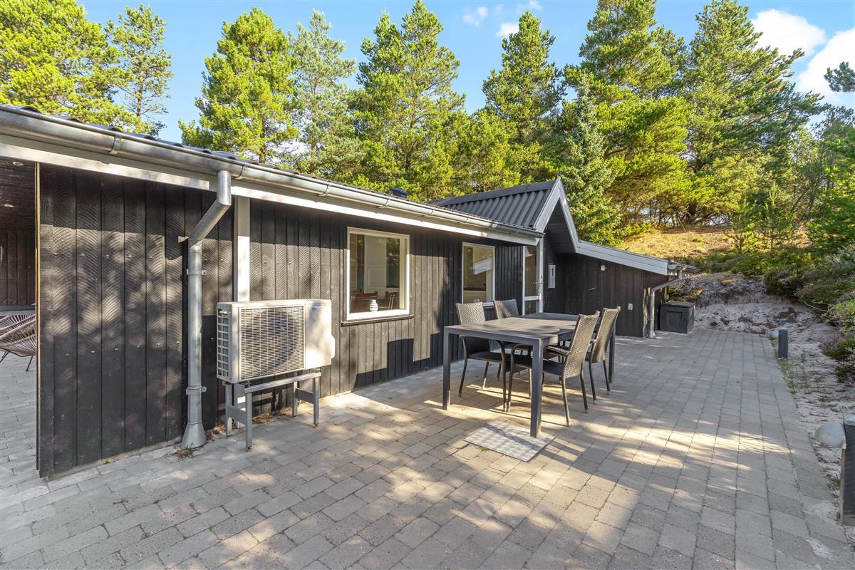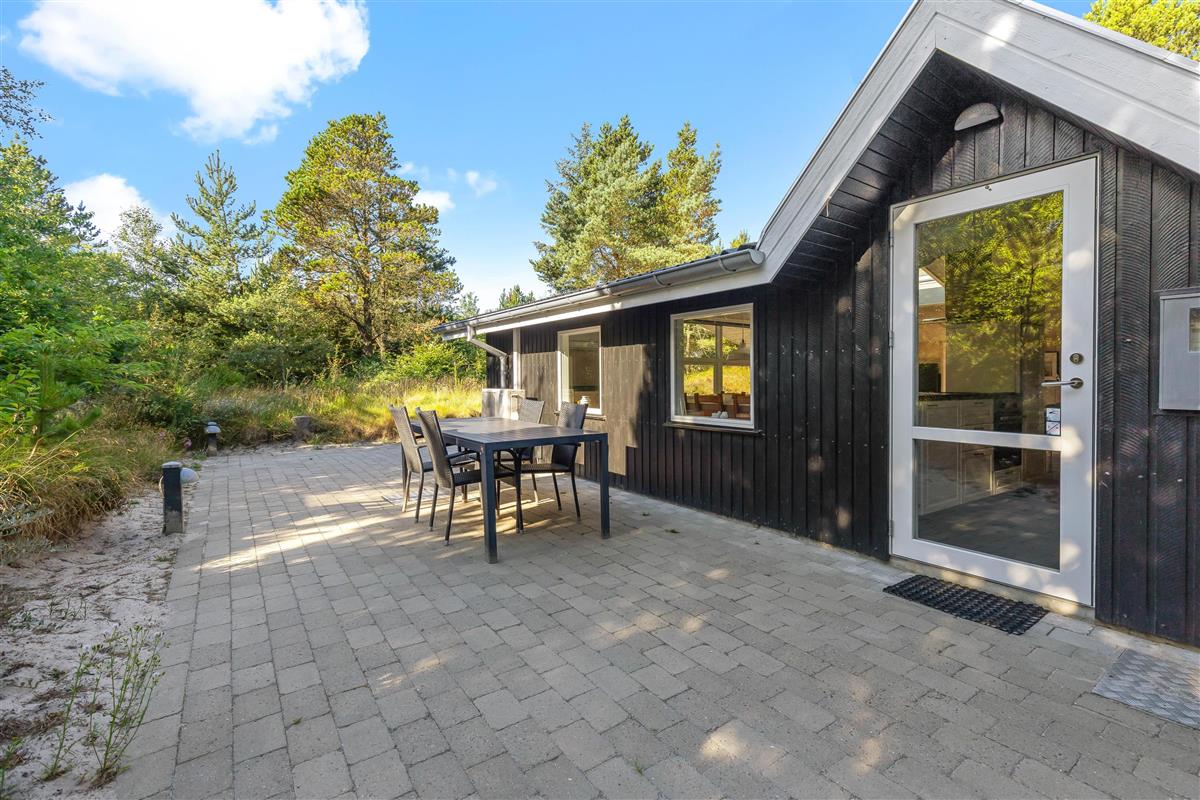 The outdoor area of the holiday home in Henne features a dune and is characterised by trees and bushes. The 1,600-square-metre natural plot includes a swing and interesting corners for your dog to explore. The open terrace is equipped with a barbecue, garden furniture and sun loungers, perfect for days enjoying sunshine and fresh air.