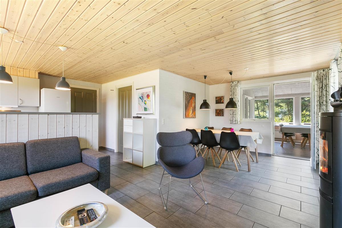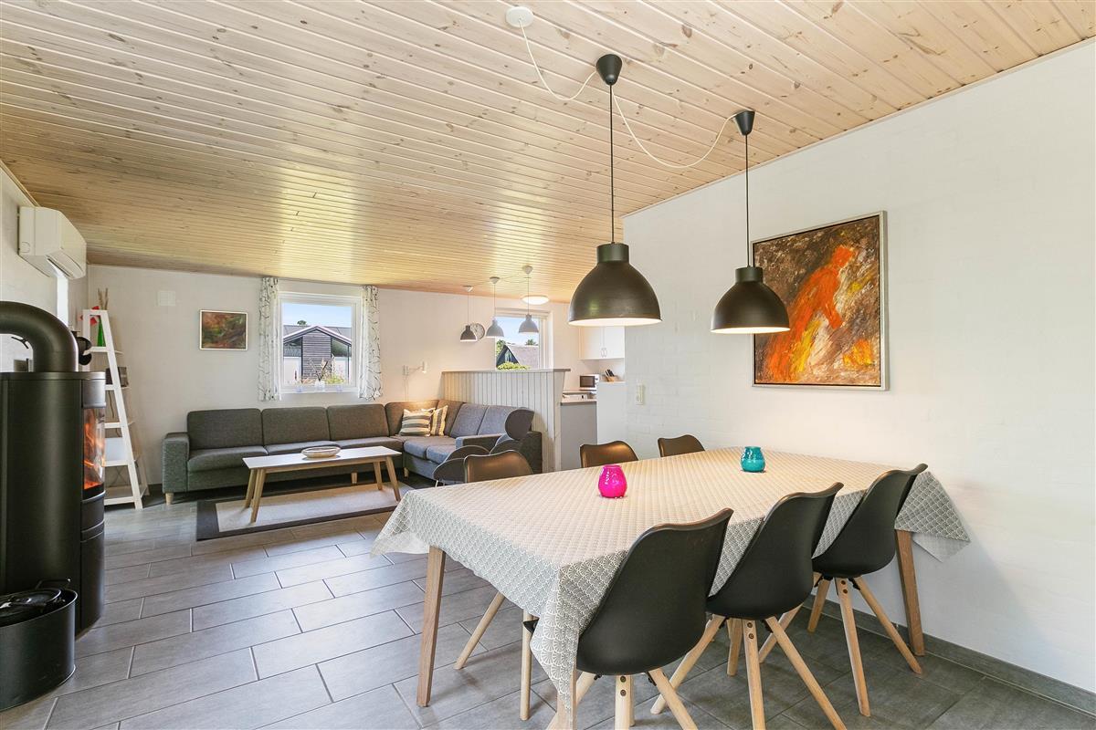 This beautiful holiday home in Henneby captivates with its bright and inviting interior. The living area features a wood-burning stove providing warmth and a comfortable atmosphere. The heat pump ensures pleasant temperatures throughout the year.