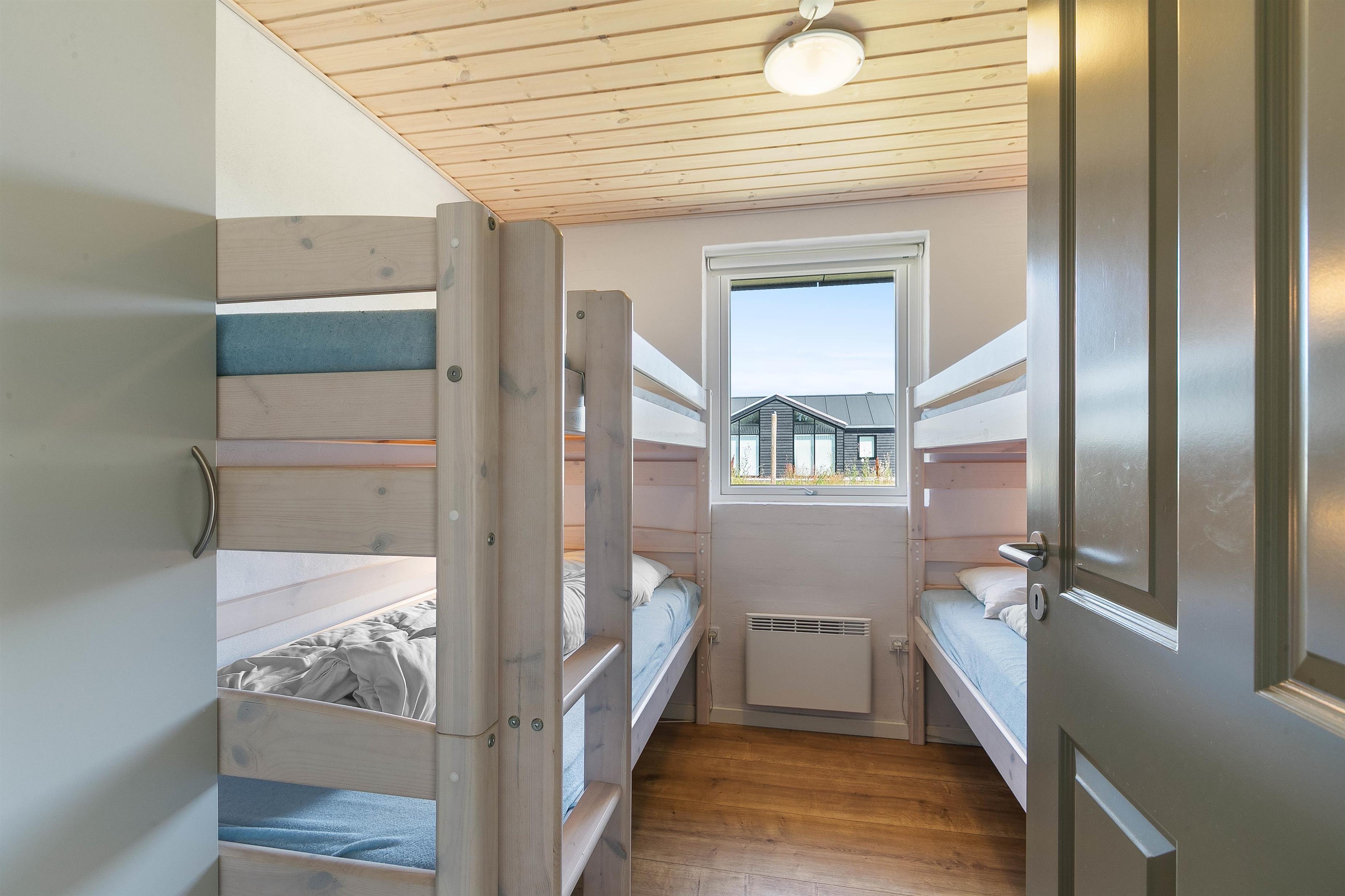 The holiday home offers three cosy bedrooms, two with comfortable double beds ensuring restful nights. One bedroom features two bunk beds, providing ideal sleeping arrangements for children.