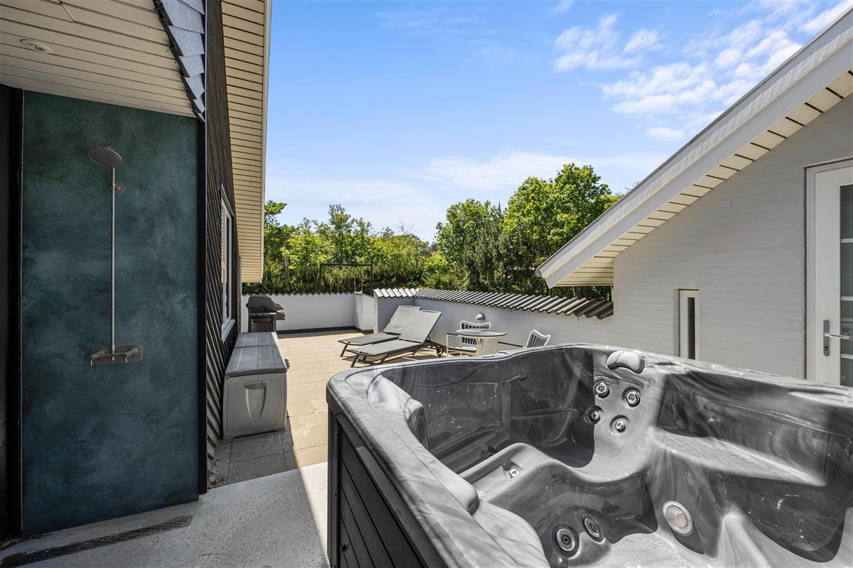 For additional wellness facilities, you'll find a lovely outdoor hot tub (seating 5 people), outdoor sauna, and outdoor shower* on one of the holiday home's many comfortable terraces.