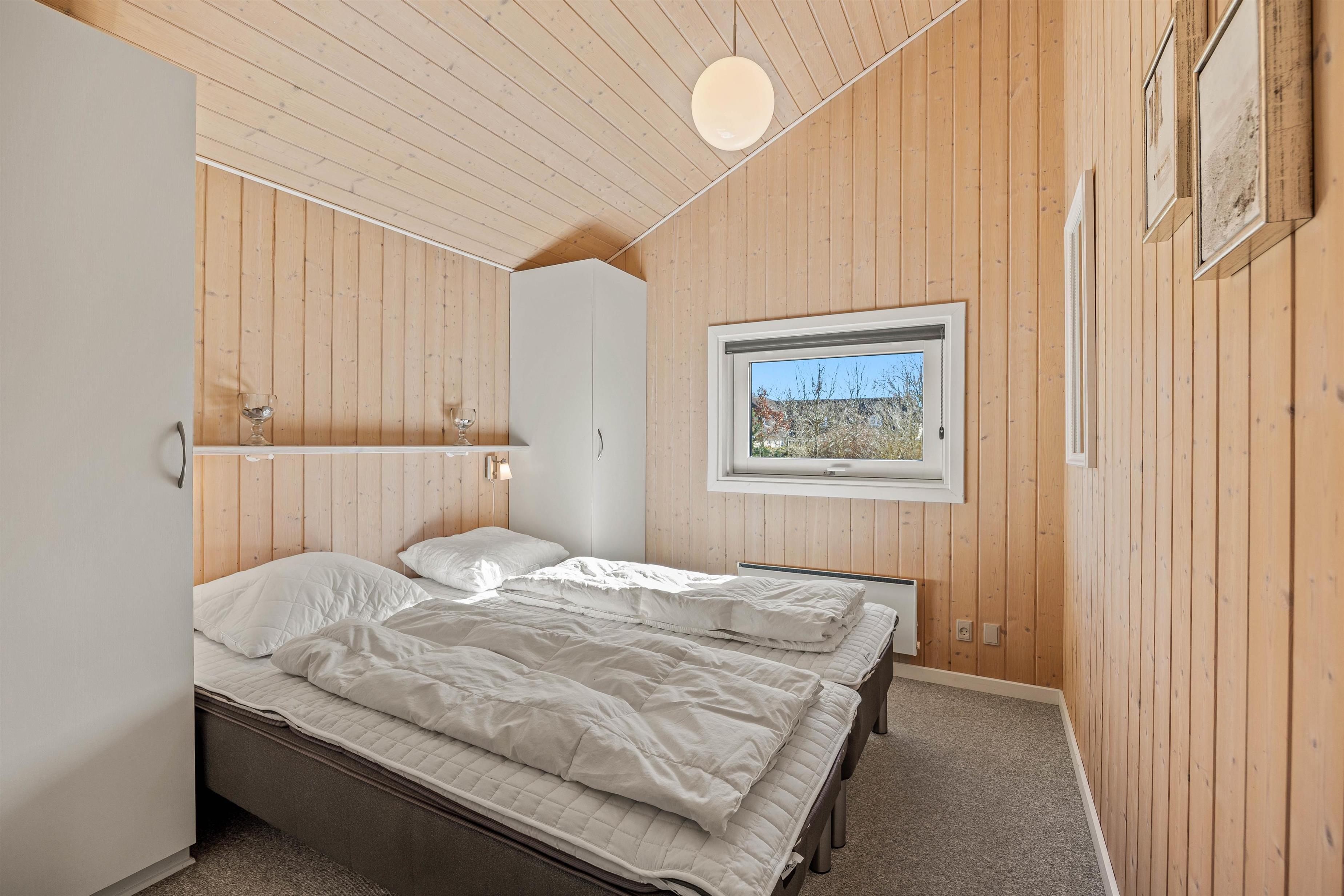 This holiday home in Henne Strand, Henneby features three bedrooms equipped with two double beds and two single beds, providing ample space for a large family or group of friends of up to 8 people.