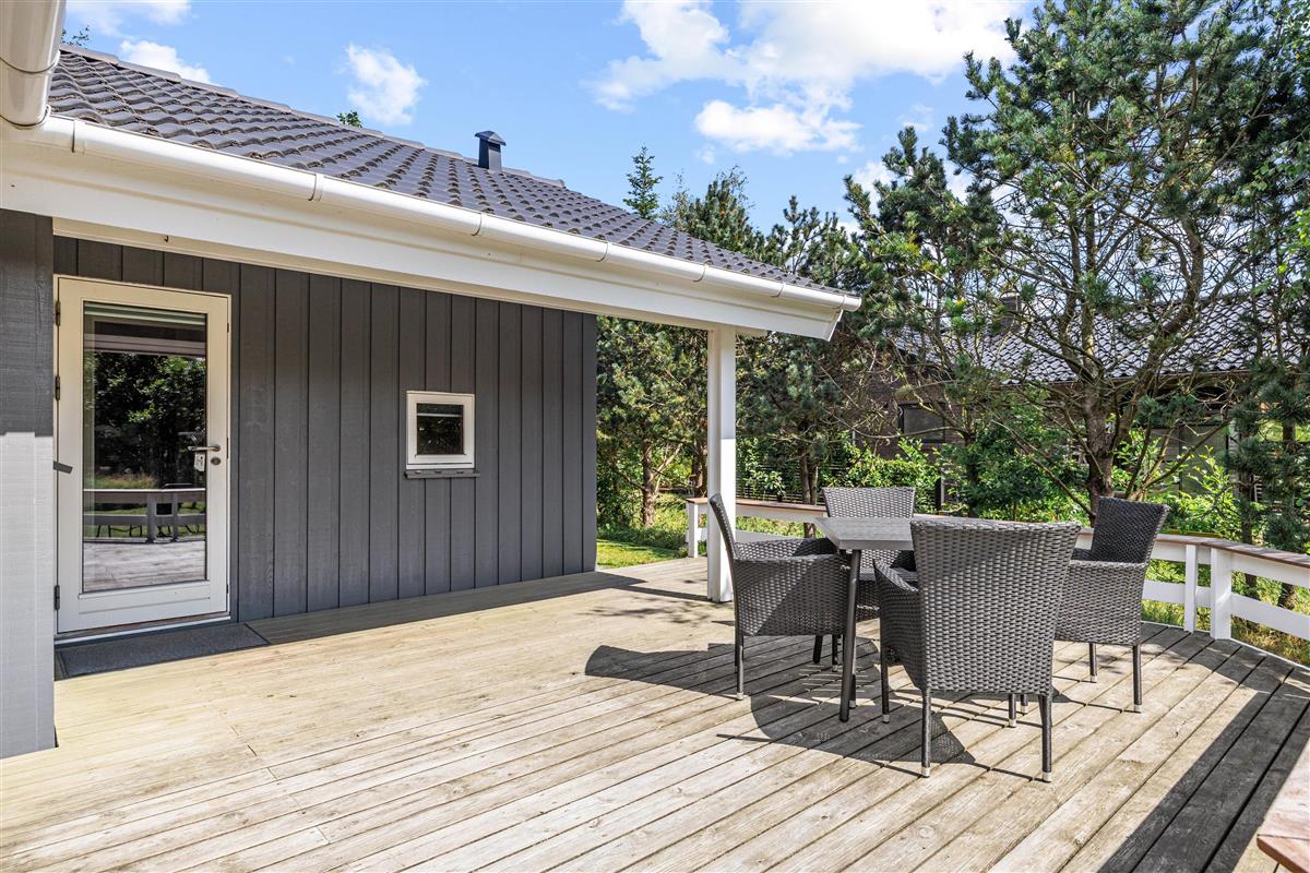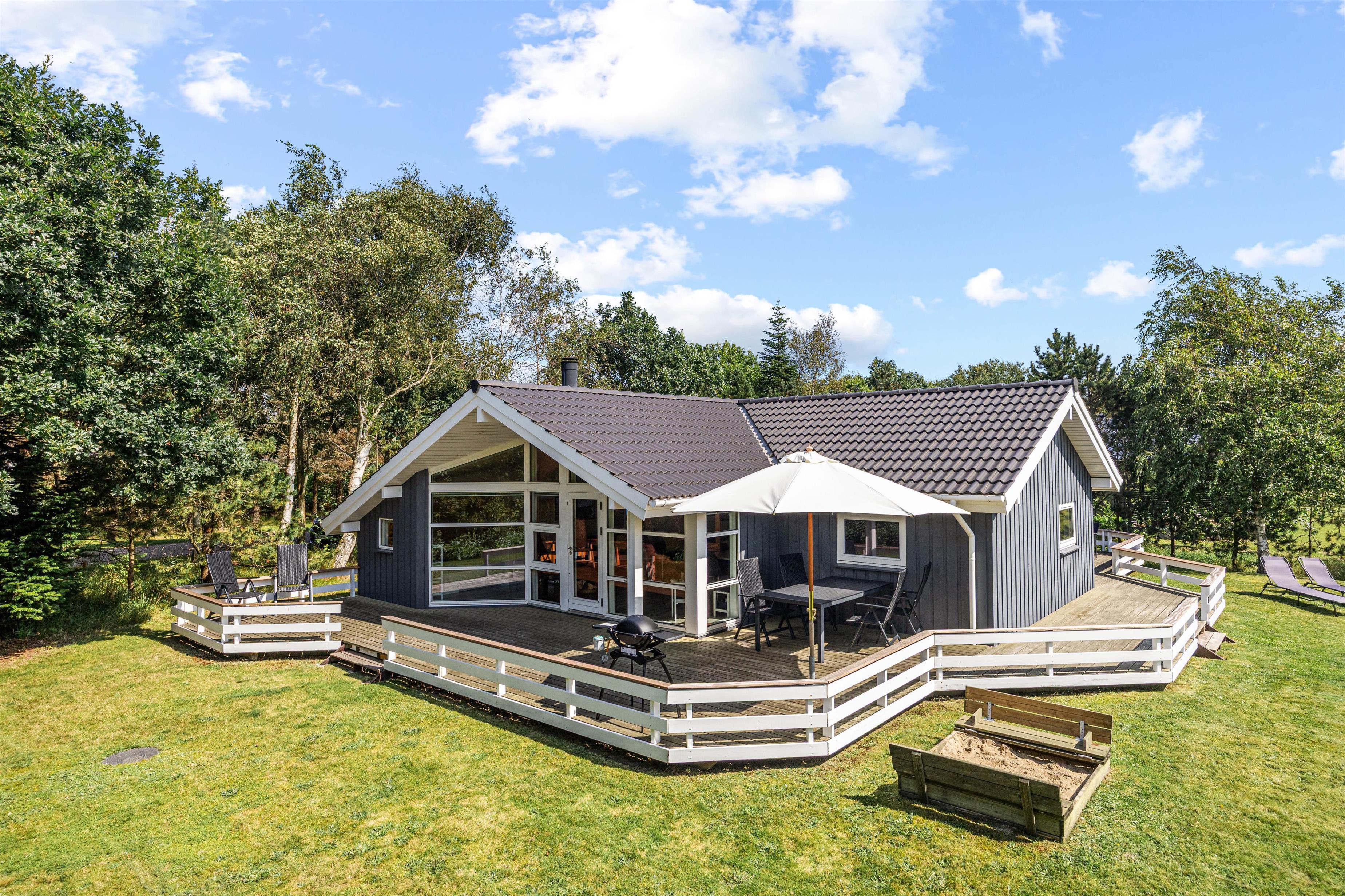 Your holiday retreat sits within natural grounds of 1,384 square metres, perfect for relaxation and unwinding. The sheltered and covered terrace offers ideal spots to enjoy the fresh air while your children play on the swing or in the sandpit. With the beautiful Henne Strand beach just 1.5 miles (2,500 metres) away, a day of seaside adventures is always within easy reach.