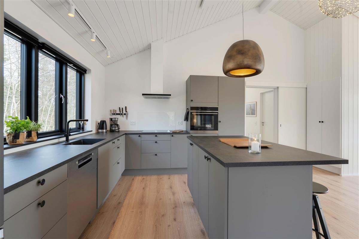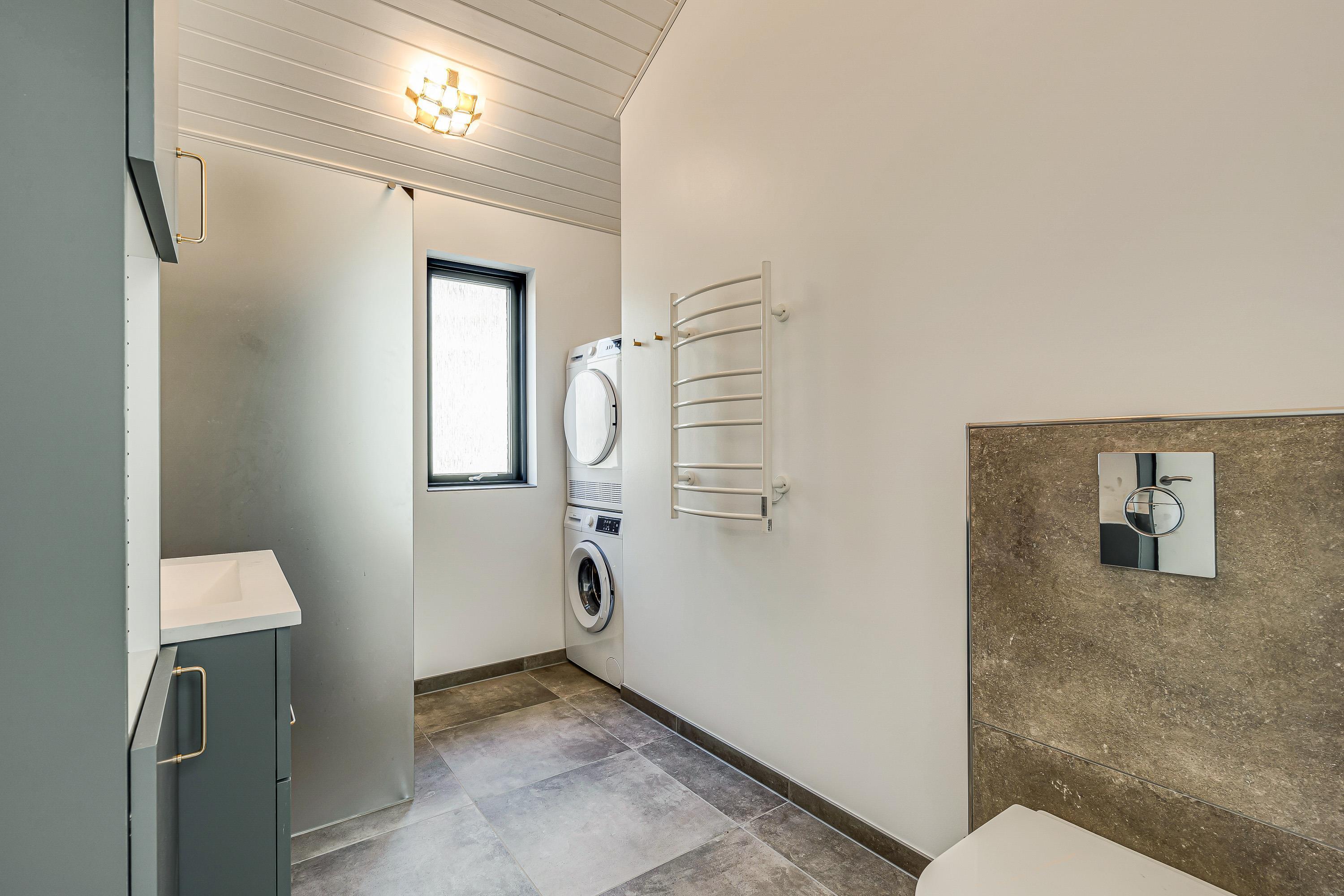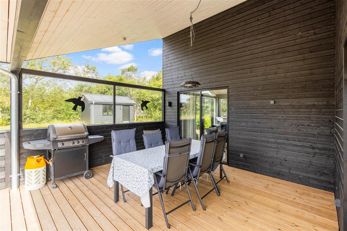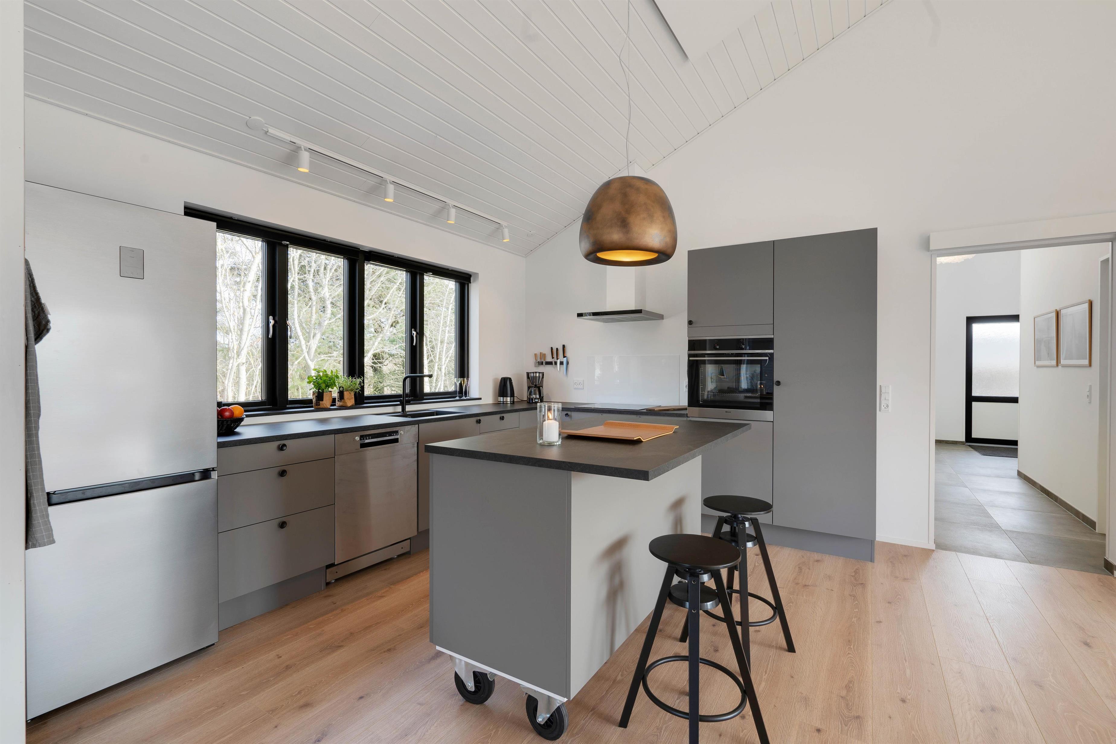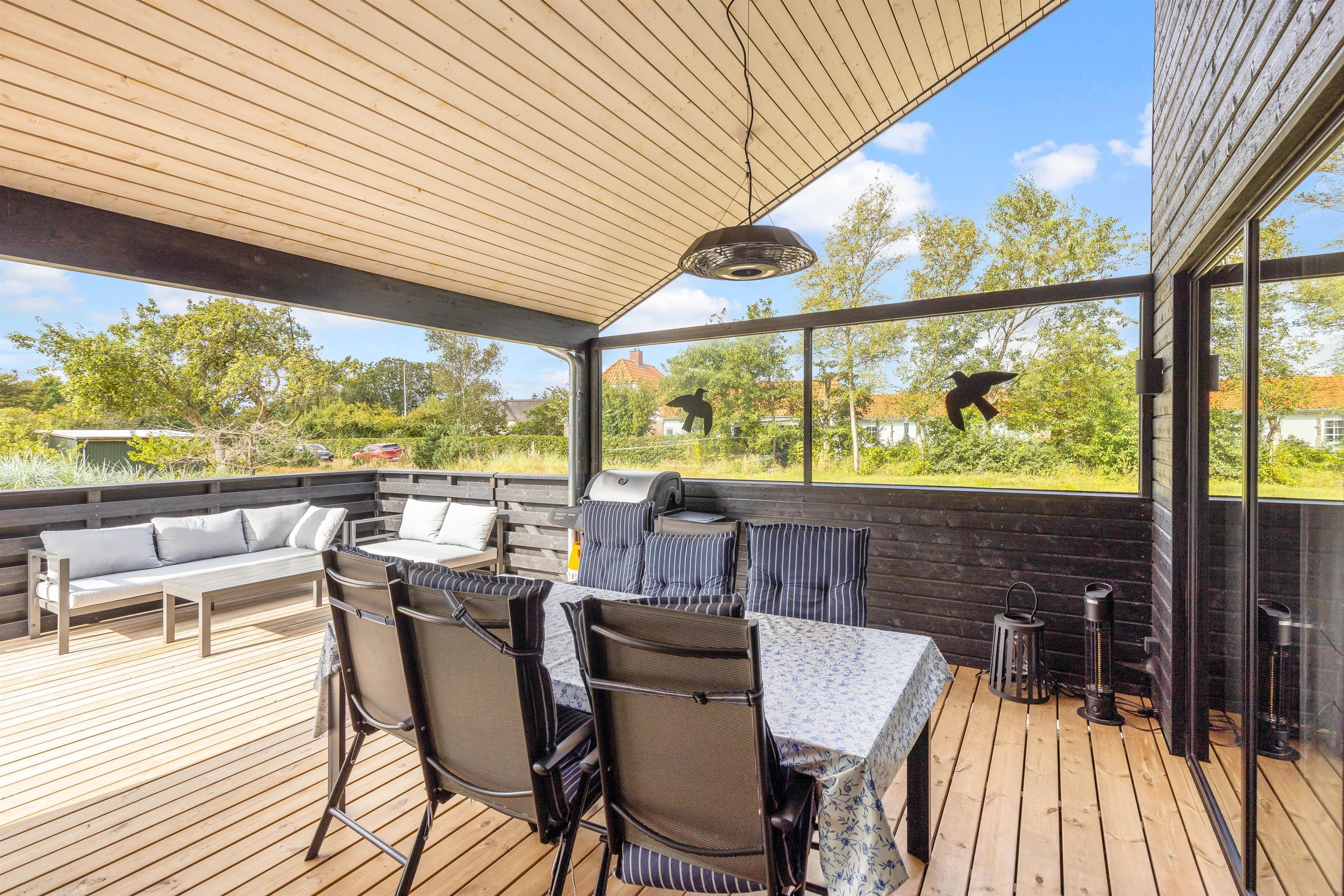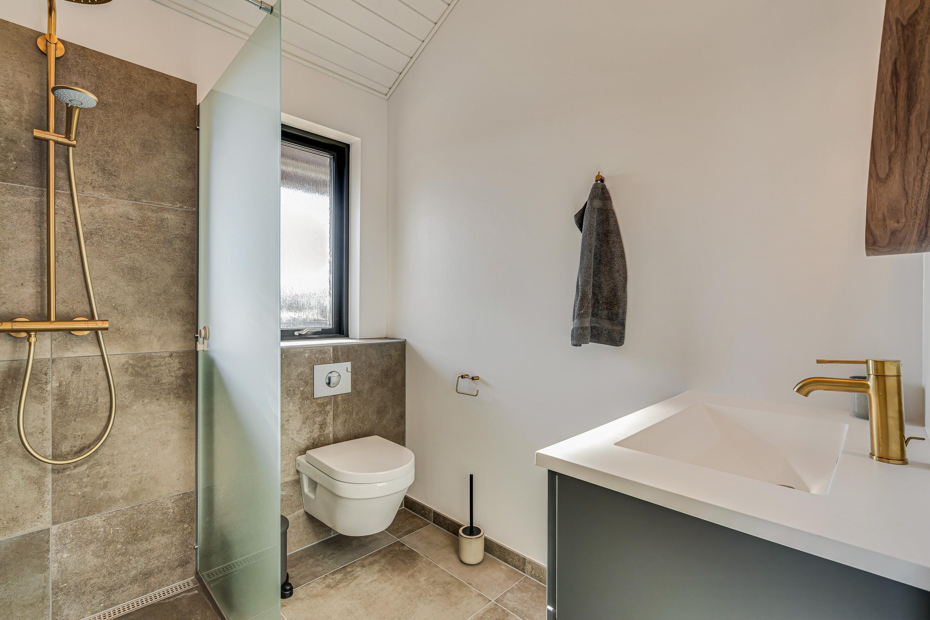Located in the second row on a spacious 1,800-square-metre plot near the beautiful Henne golf course, this holiday home built in spring 2022 accommodates up to 6 people and 2 dogs. The outdoor hot tub is undoubtedly the highlight, where you can relax in warm, bubbling water whilst stargazing, regardless of the season - an open-air bath is truly something special. Additionally, there's an outdoor shower and a Type 2 electric vehicle charging point installed at the holiday home.