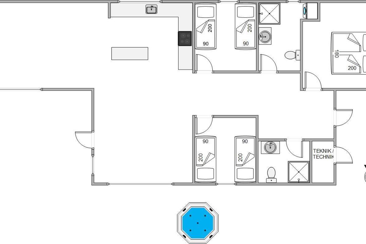 Located at Hennebysvej 8 in Henneby near Henne Strand, this 2022-built holiday home offers 116 square metres of living space for families of up to 6 people and 2 dogs. The accommodation comprises three bedrooms, two shower rooms, and an open-plan living area with integrated kitchen and dining space. This modern holiday home is efficiently heated through geothermal energy and a heat pump system, ensuring comfortable temperatures throughout.