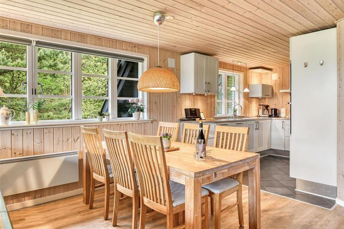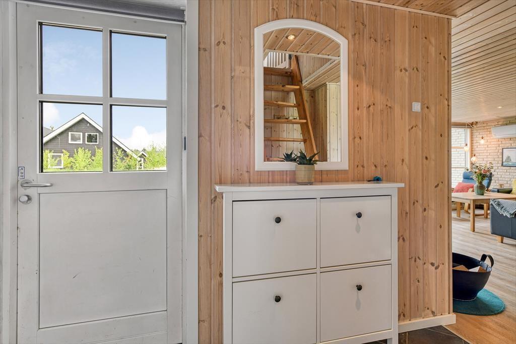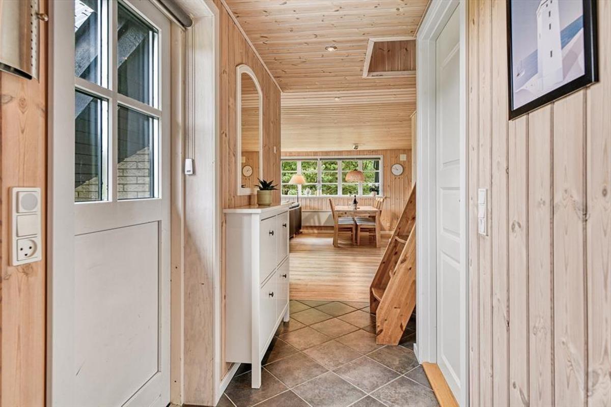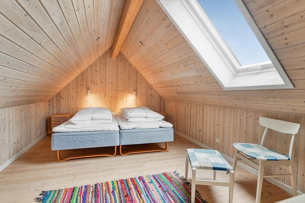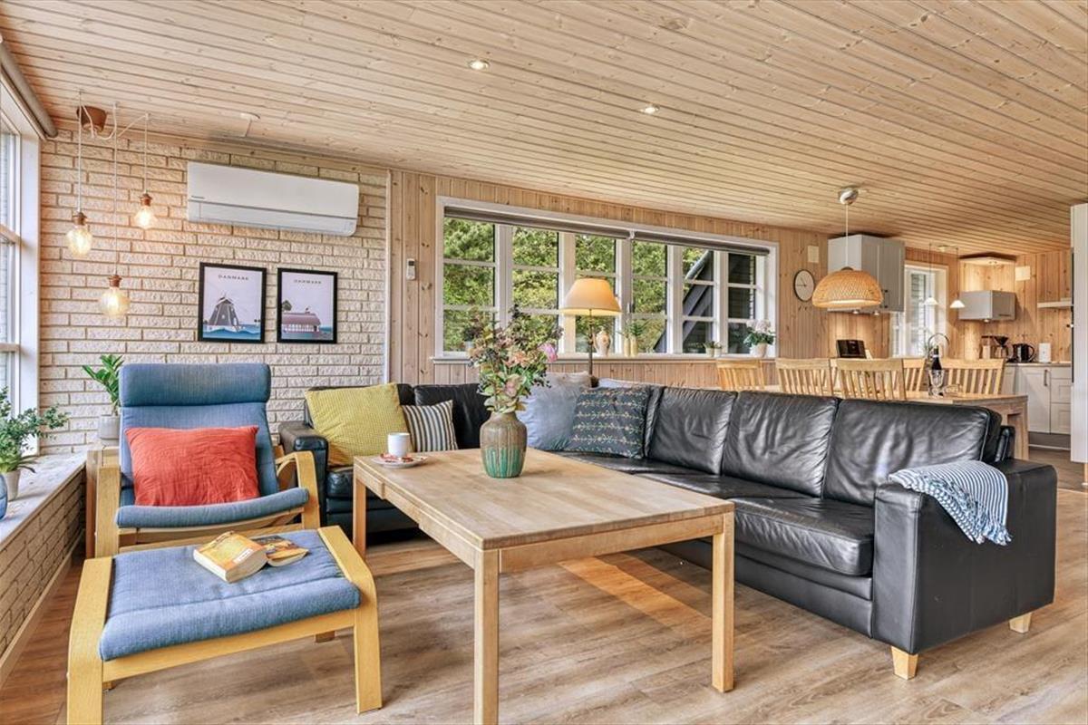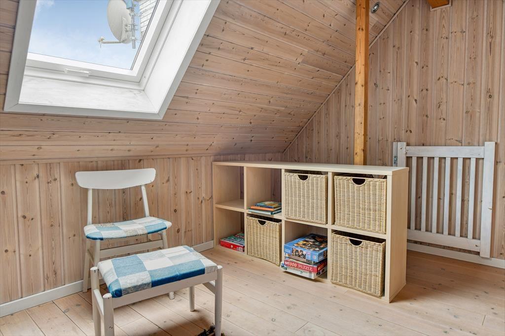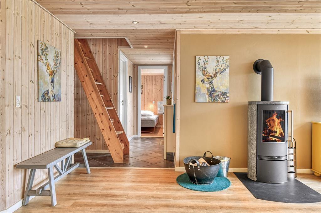Das gemütliche Ferienhaus in der Harevej 6 empfängt dich mit einer entspannten Atmosphäre, in der du sofort spürst, dass der Urlaub beginnen kann. Das Wohnzimmer und der offene Küchen-Essbereich bilden eine Einheit, sodass die ganze Familie viel Platz zum Zusammensein hat. Mach den Kamin an, während du den Tisch fürs Abendessen deckst, oder mach es dir mit einem guten Buch auf dem Sofa gemütlich, während die letzten Sonnenstrahlen des Tages durch die Fenster scheinen. Im Badezimmer findest du sowohl einen Whirlpool als auch eine Sauna – perfekt zur Entspannung nach einem langen Tag an der frischen Luft. Wenn dein Körper Wärme und Wohlbefinden braucht, kannst du die Blubberblasen die Verspannungen lösen lassen, bevor du in die Sauna gehst und die Stille genießt. Im Obergeschoss findest du ein gemütliches Schlafzimmer mit Doppelbett, in das du dich zurückziehen und mit Blick auf die Baumwipfel und den Sternenhimmel einschlafen kannst.