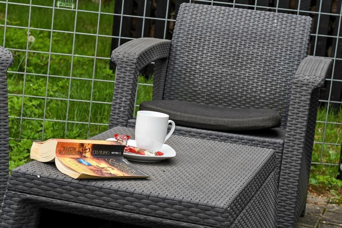 Draußen erwartet dich eine schöne, nach Süden ausgerichtete Terrasse mit mehreren gemütlichen Ecken, in denen du von morgens bis abends die Sonne genießen kannst. Das große, eingezäunte Grundstück macht es ideal, den Hund mit in den Urlaub zu nehmen – hier gibt es jede Menge Platz zum Herumtollen, ganz ohne Sorgen. Die Kinder werden den Garten lieben, in dem Schaukel, Trampolin und Sandkasten zum Spielen und Lachen von morgens bis abends einladen. Während die Kleinen Sandburgen bauen, kannst du dich in einem Liegestuhl entspannen und die Ruhe auf dich wirken lassen. Die Terrasse ist der perfekte Ort für den Morgenkaffee oder einen gemütlichen Abend – vielleicht mit einem Glas Wein, während der Grill warm wird und der Sonnenuntergang den Himmel in warme Farben taucht. Hier genießt ihr Privatsphäre und Frieden mitten in der Natur – begleitet vom Vogelgesang und dem Duft des Waldes.