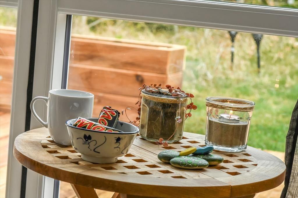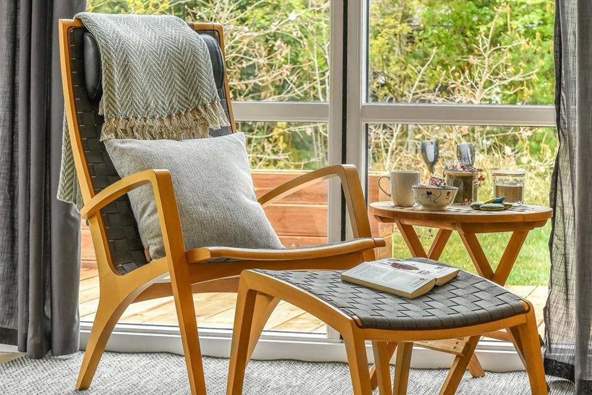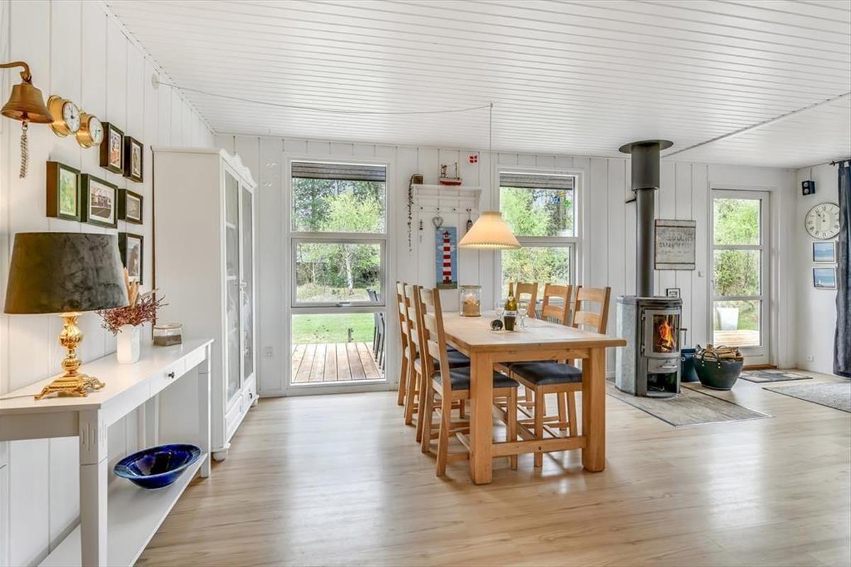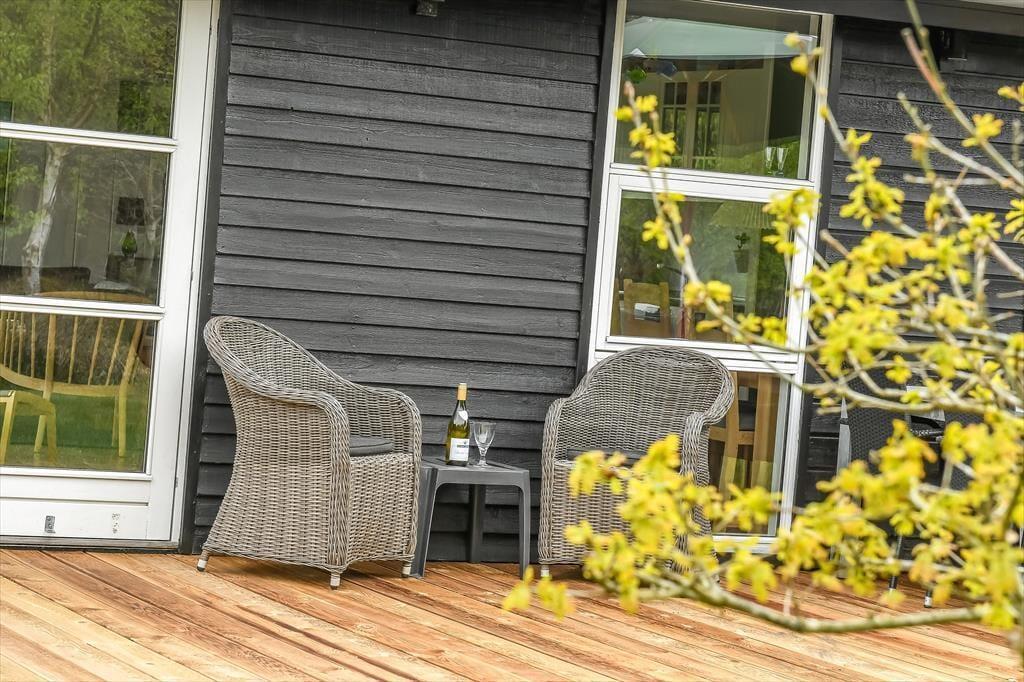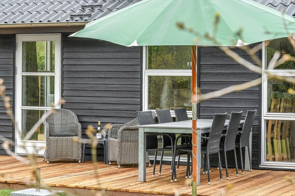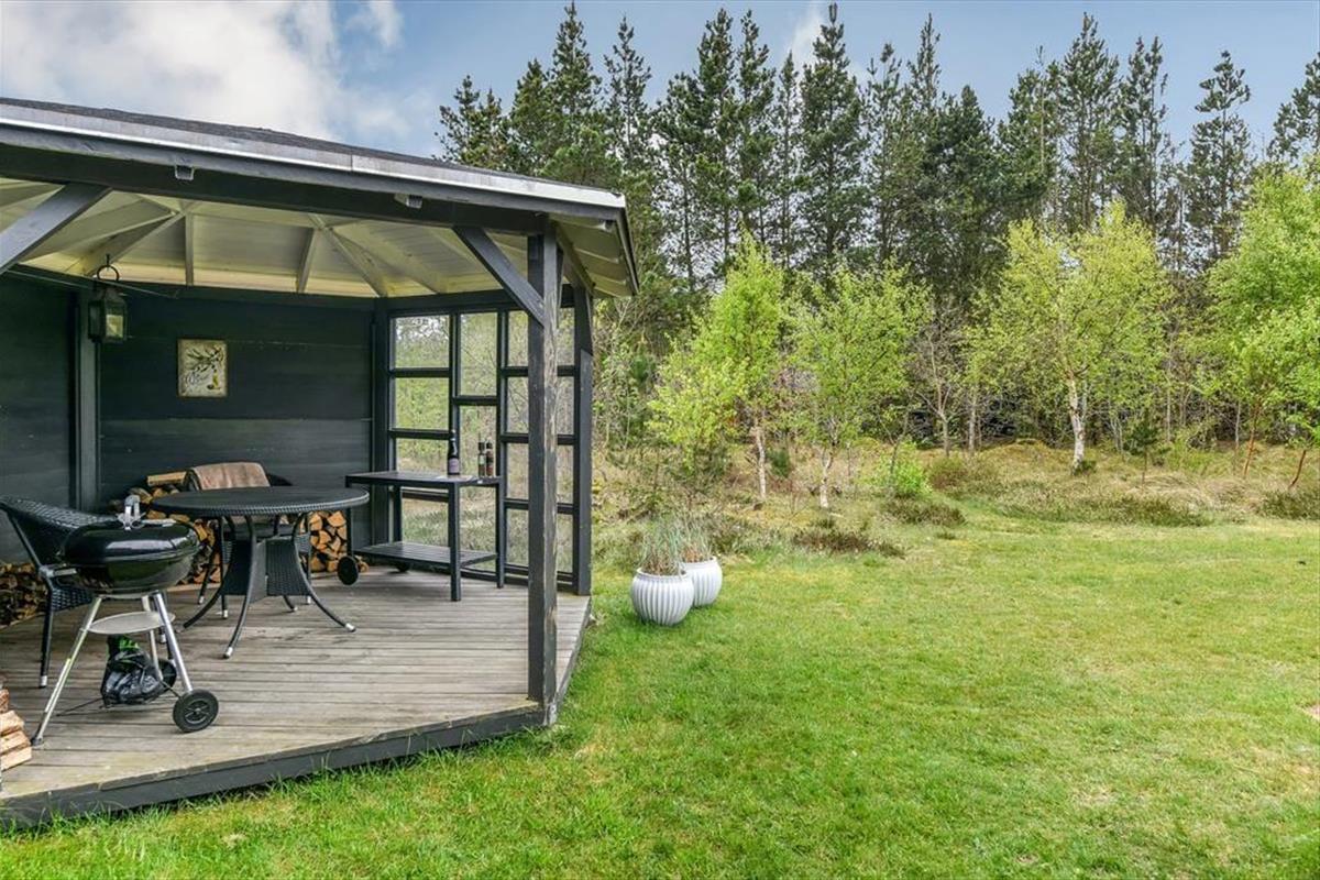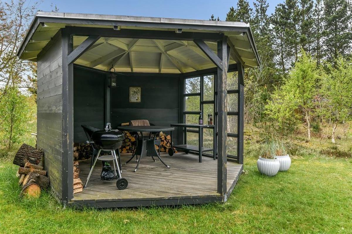 Draußen erwartet dich eine sonnige Terrasse, die den perfekten Rahmen für entspannte Urlaubstage an der frischen Luft bietet. Finde deinen Lieblingsplatz in der Sonne, lehn dich in den Liegestuhl zurück und genieße die Ruhe, die Henneby so besonders macht. Der gemütliche Pavillon verlängert die Outdoorsaison und lädt dazu ein, die Mahlzeiten auch bei kühleren Abenden im Freien zu genießen – geschützt vor Tau oder Wind, der durch die Baumwipfel rauscht. Vielleicht zündet ihr Kerzen an und lasst den Tag bei einem Glas Wein im Pavillon ausklingen, während die Sonne langsam hinter den Bäumen versinkt? Alles rund ums Haus lädt zu Ruhe, Nähe und langen, entspannten Ferientagen ein – Tage, an denen du nichts weiter tun musst, als den Moment zu genießen.