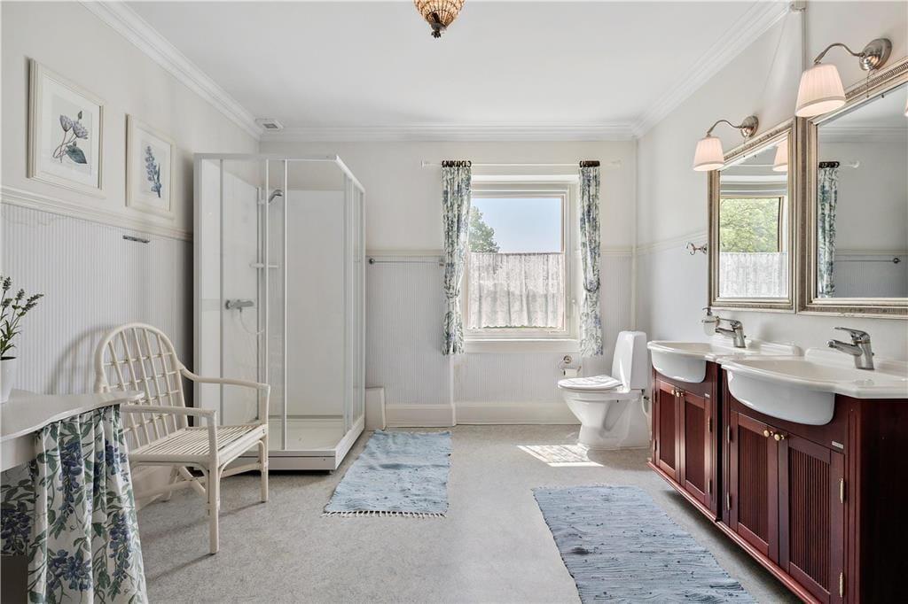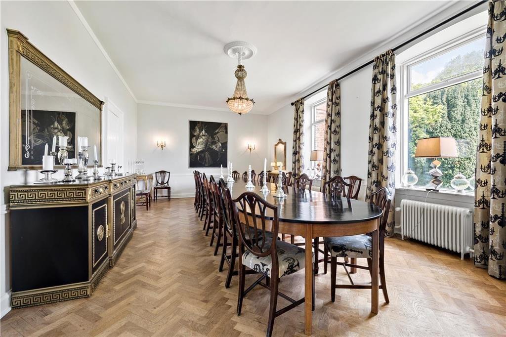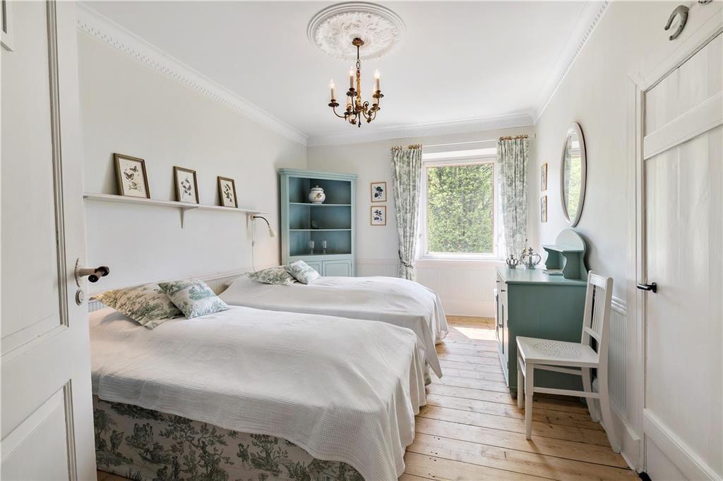 Frederiksberg liegt im Süden Langelands mit Blick auf den Großen Belt. Die Geschichte des Anwesens lässt sich bis ins Jahr 1810 zurückverfolgen, als mehrere Höfe von Tranekær zur Einheit Frederiksberg zusammengelegt wurden. Das Anwesen wurde benannt nach Graf Frederik von Ahlefeldt-Laurvig. Heute gehört Frederiksberg zu Hjortholm Guts. Das Hauptgebäude stammt von 1871 und wurde vom Architekten August Klein errichtet. Im Jahr 2012 wurde es umfangreich renoviert und erscheint jetzt sehr stilvoll. Das Haus verfügt über 11 Schlafzimmer sowie vier Badezimmer. Es besteht die Möglichkeit 22 extra Schlafplätze in 11 Doppelzimmern auf dem Nachbargrundstück auf Hjortholm Guts dazu zu mieten. Kontaktieren Sie uns bei Slotsferie Danmark auf +45 64 41 26 22.