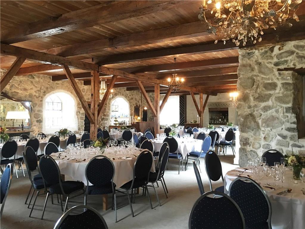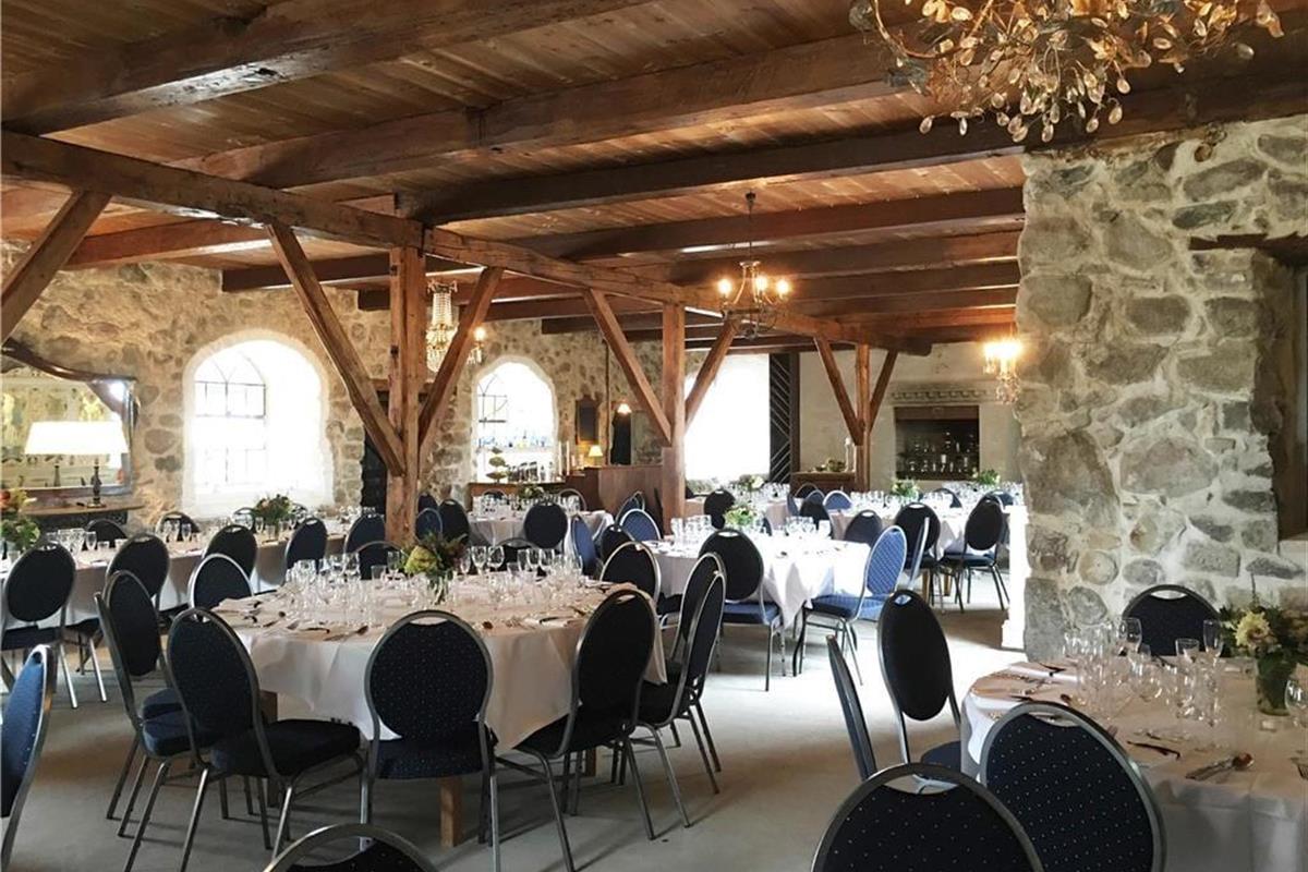 Das große Steingebäude beherbergt einen Raum mit Platz für 120 speisende Gäste. Der Raum verzaubert mit Wänden aus Fels- und Feldsteinen sowie mit offenliegenden Deckenbalken. Eine Bar mit Kühlschränken ist vorhanden. Es besteht die Möglichkeit, auf dem großen Kaminfeuer zu grillen. Eine Anrichteküche mit zwei Geschirrspülern steht zu Ihrer Verfügung.