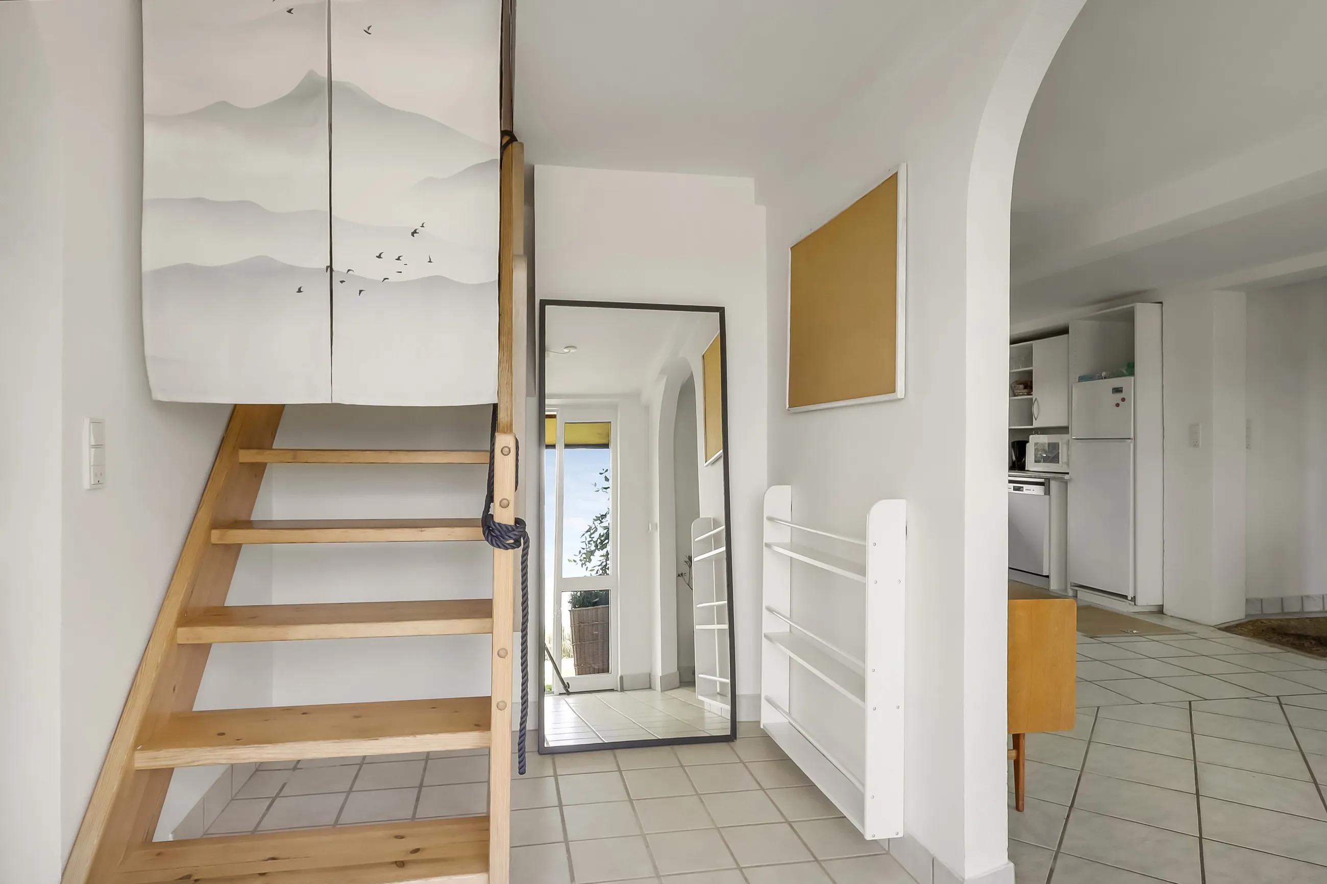 Das Haus hat vier Schlafzimmer. Zwei Schlafzimmer sind mit Doppelbetten ausgestattet, die anderen beiden jeweils mit zwei Einzelbetten. Es gibt zwei Badezimmer mit Toilette, Dusche und Fußbodenheizung. Auch eine Waschmaschine ist vorhanden.