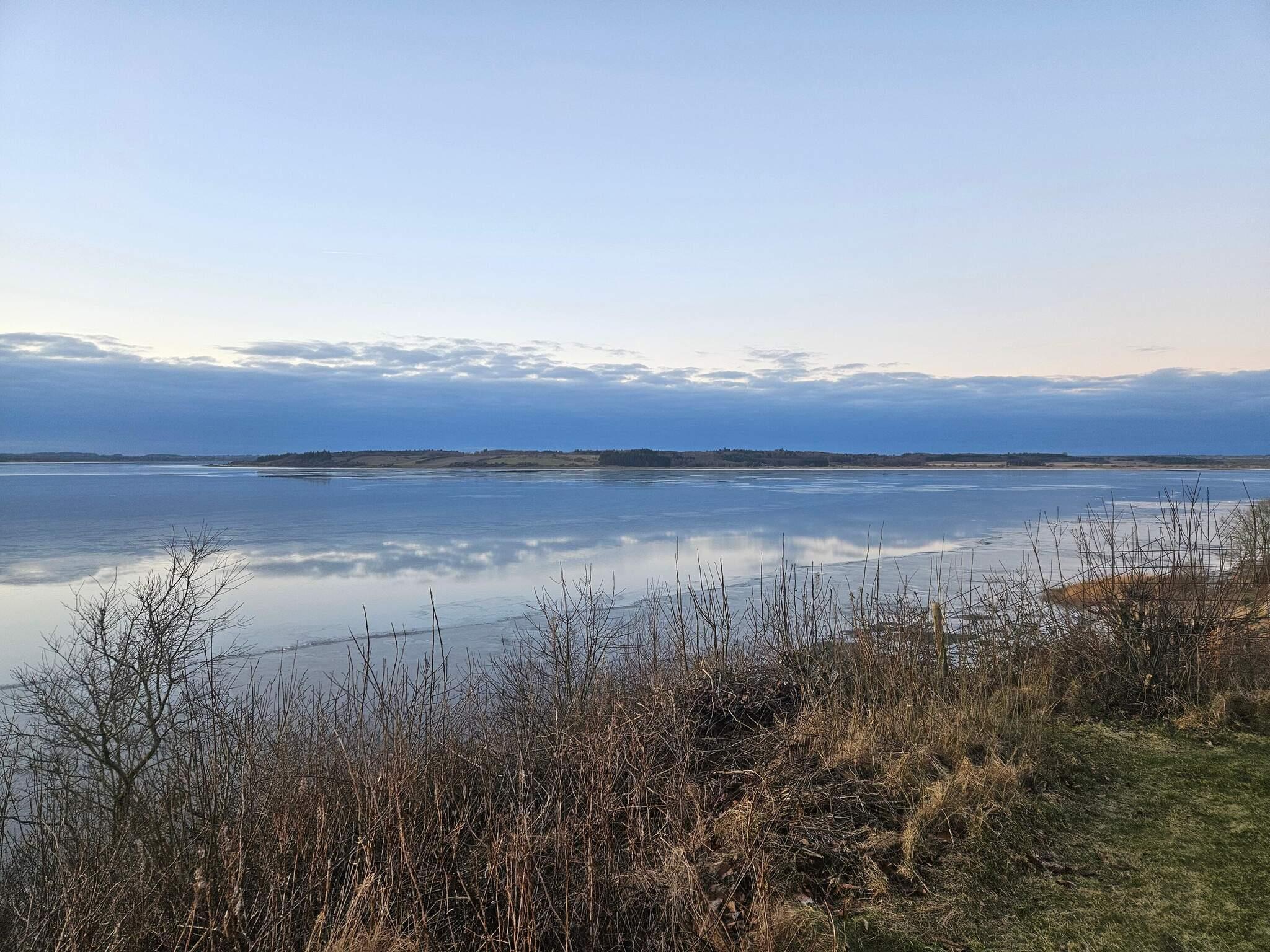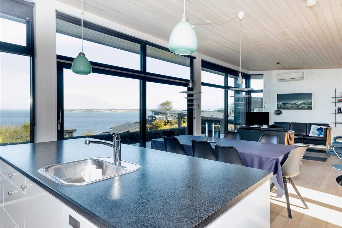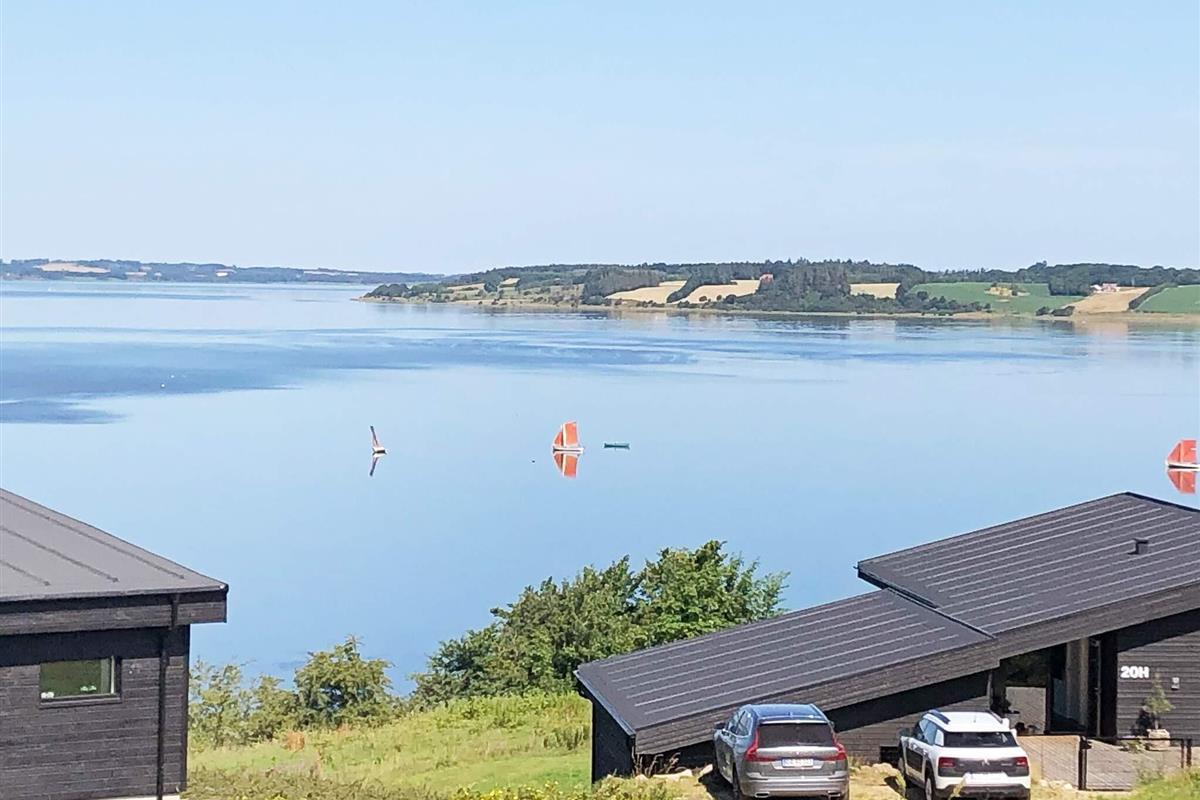 Ganz modern und individuell gestaltetes Ferienhaus in leicht erhöhter Lage und mit herrlicher Panoramaaussicht zum nur etwa 100 m entfernten Wasser am Hjarbæk Fjord!