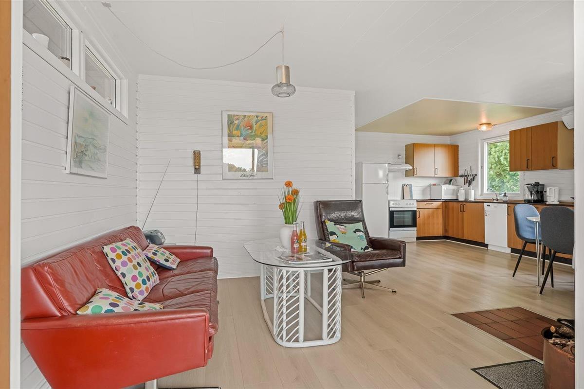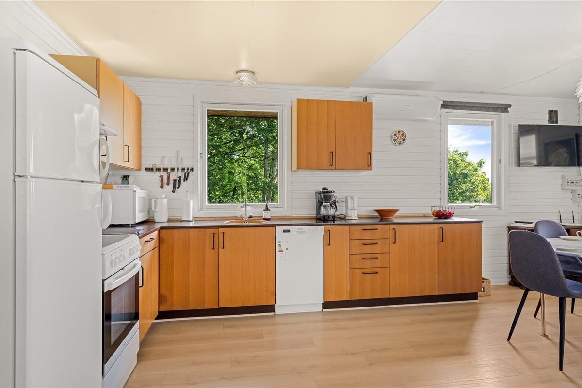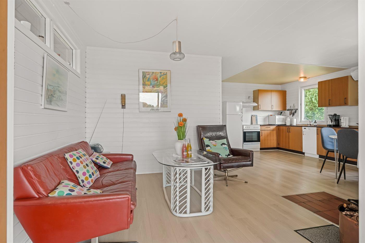 De vakantiewoning is gelegen op een 1800 m² groot grond in bos/park. Afstand tot de fjord 300 m. Dichtstbijzijnde winkel 3000 m. Bij de vakantiewoning hoort 38 m² terras. Tevens heeft u de beschikking over een serre. Parkeerplaats bij het huis.