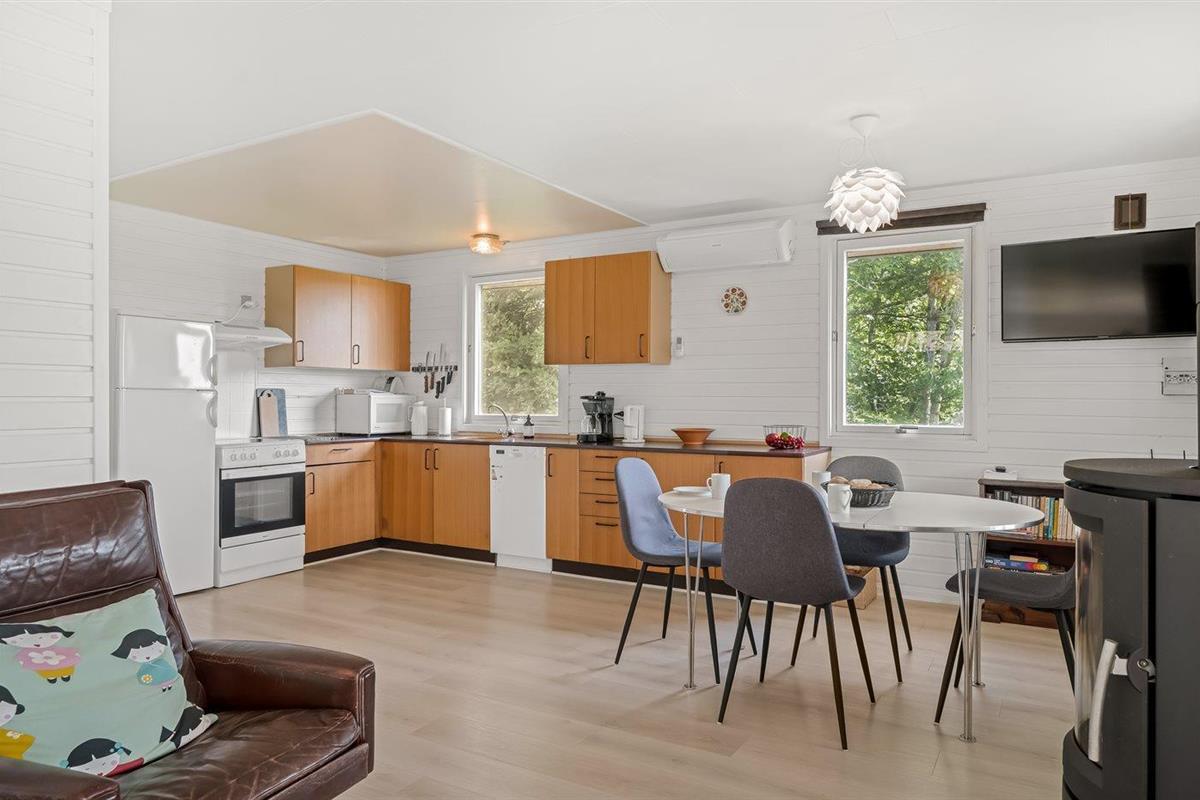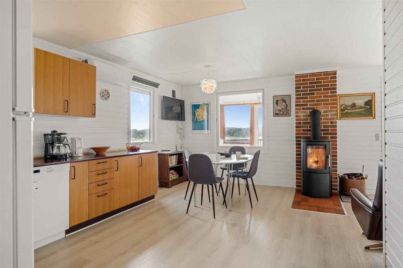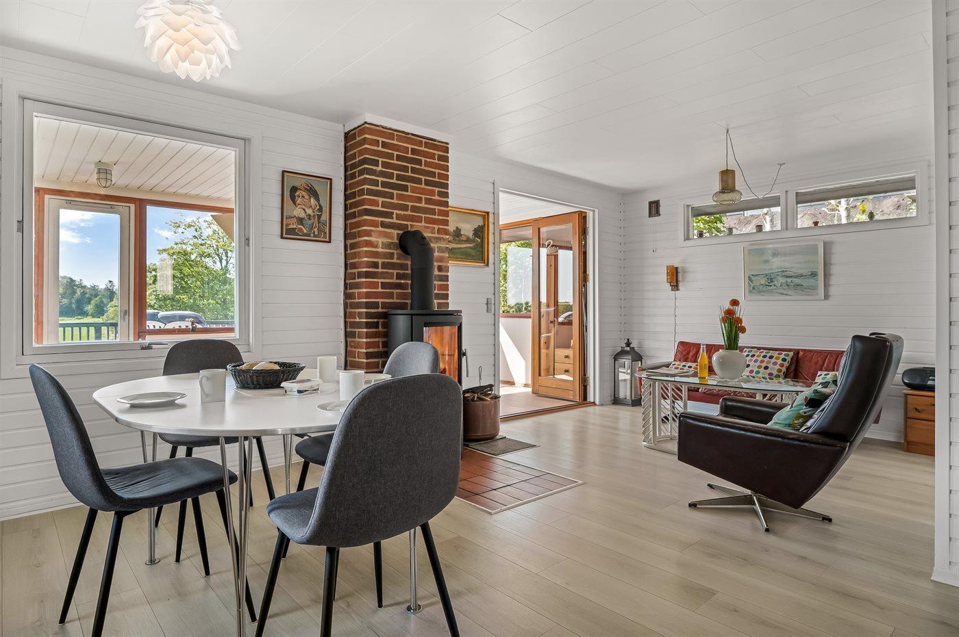 De vakantiewoning is gelegen op een 1800 m² groot grond in bos/park. Afstand tot de fjord 300 m. Dichtstbijzijnde winkel 3000 m. Bij de vakantiewoning hoort 38 m² terras. Tevens heeft u de beschikking over een serre. Parkeerplaats bij het huis.