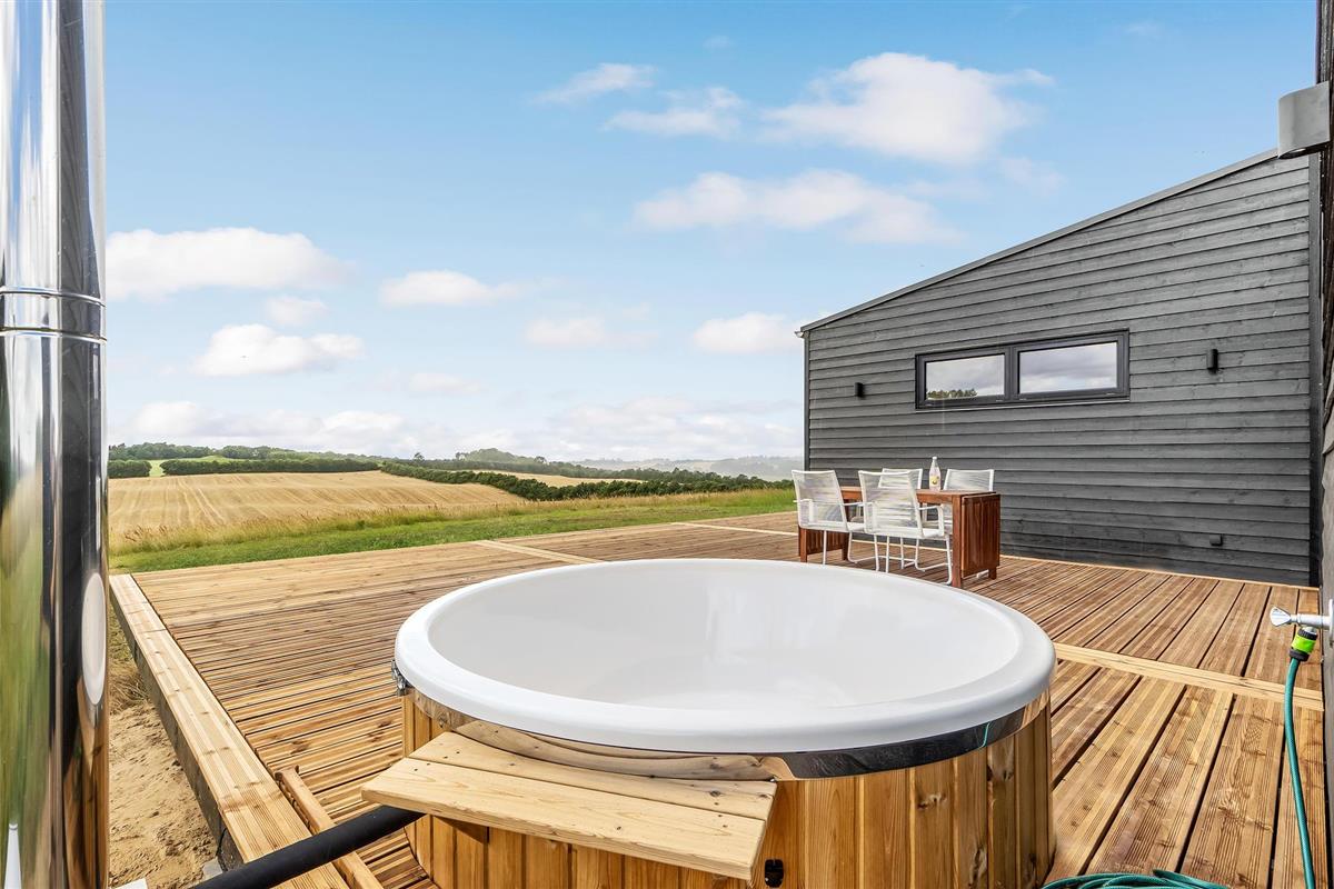 Vanuit de woonkamer stapt u op het terras, dat de perfecte plek is voor ontspannende leesuurtjes, zonnebaden of een koude verfrissing na een dagje uit. Sluit de dag af in het Finse houten bad terwijl u uitkijkt over de landschappen.