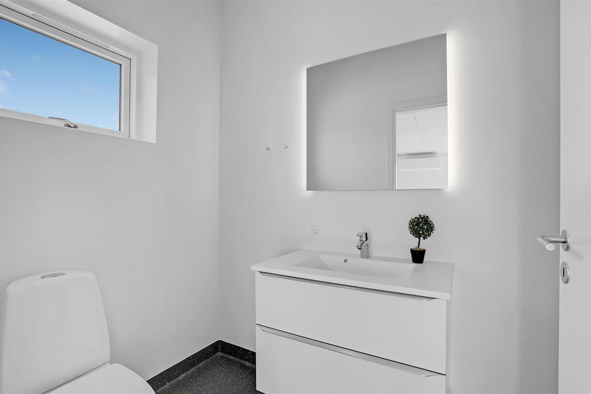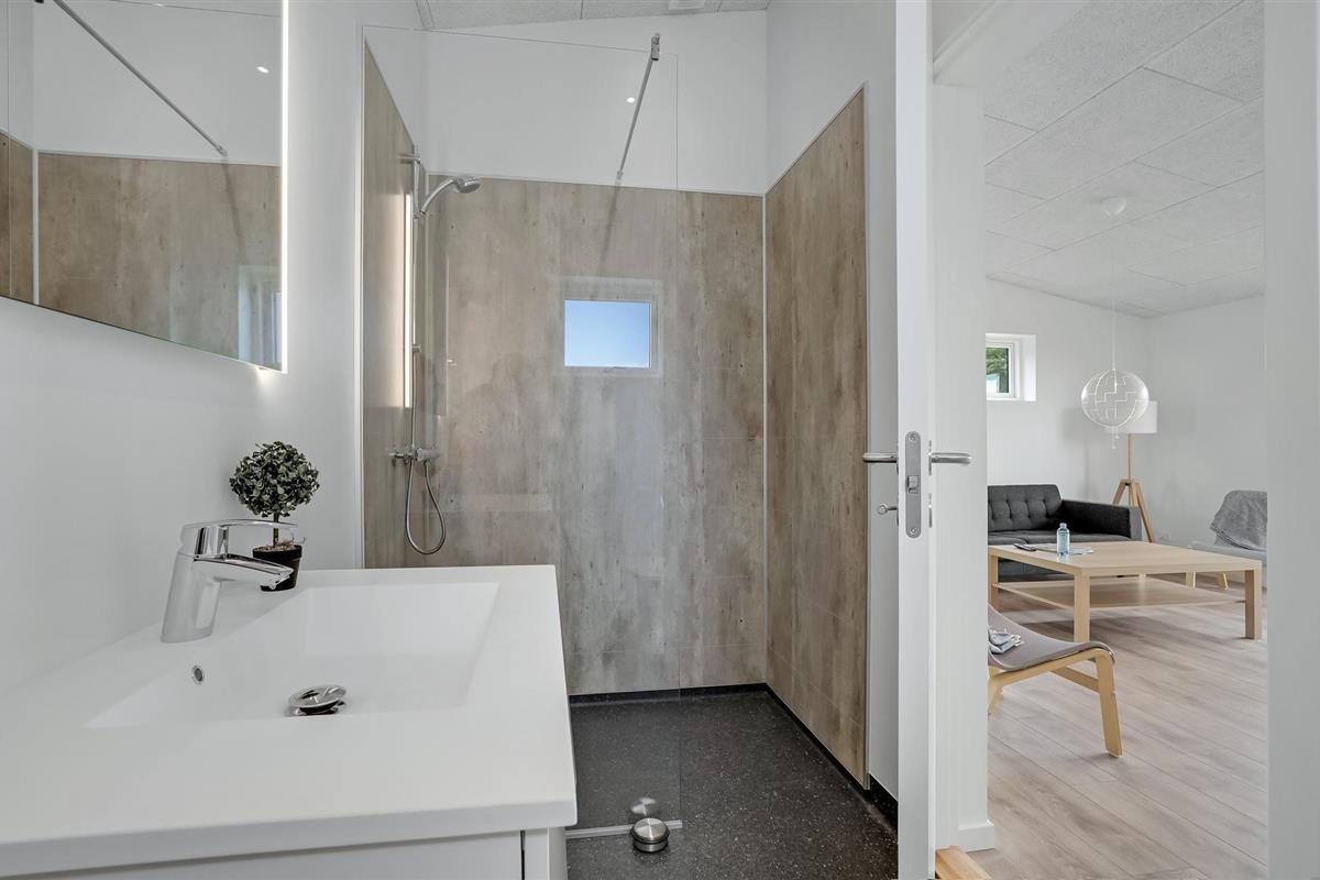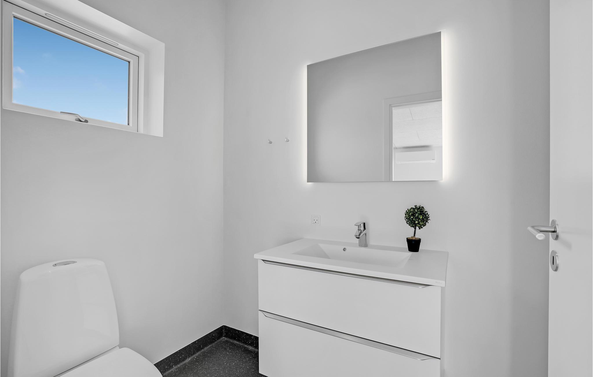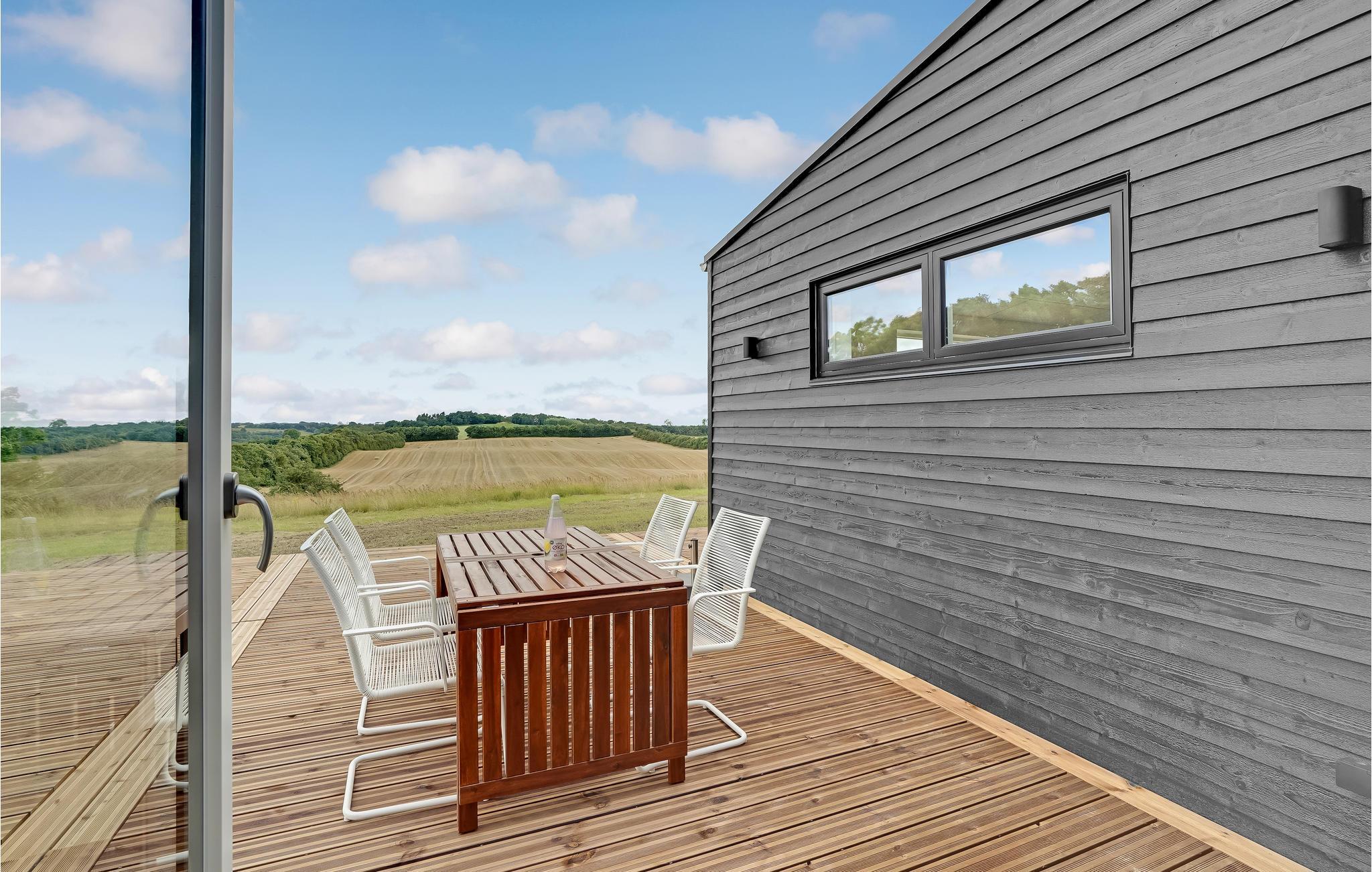 Modern vakantiehuis in Hjarbæk met Finse houten badkamer en terras voor ontspanning.