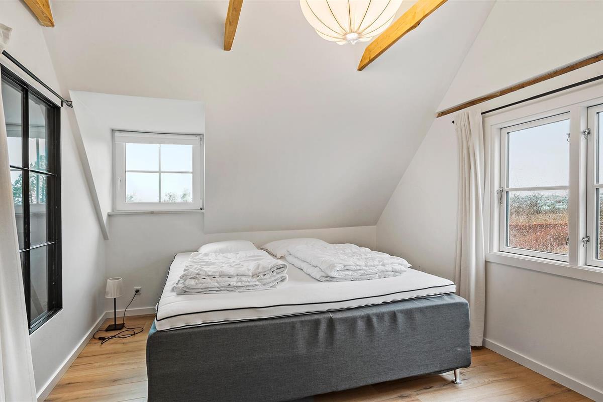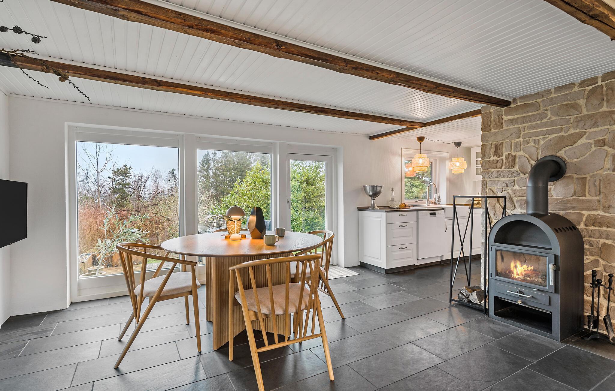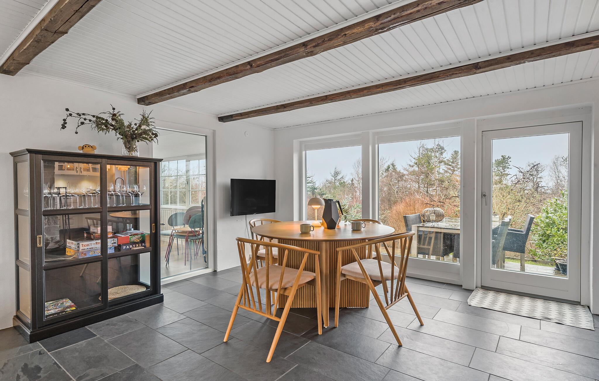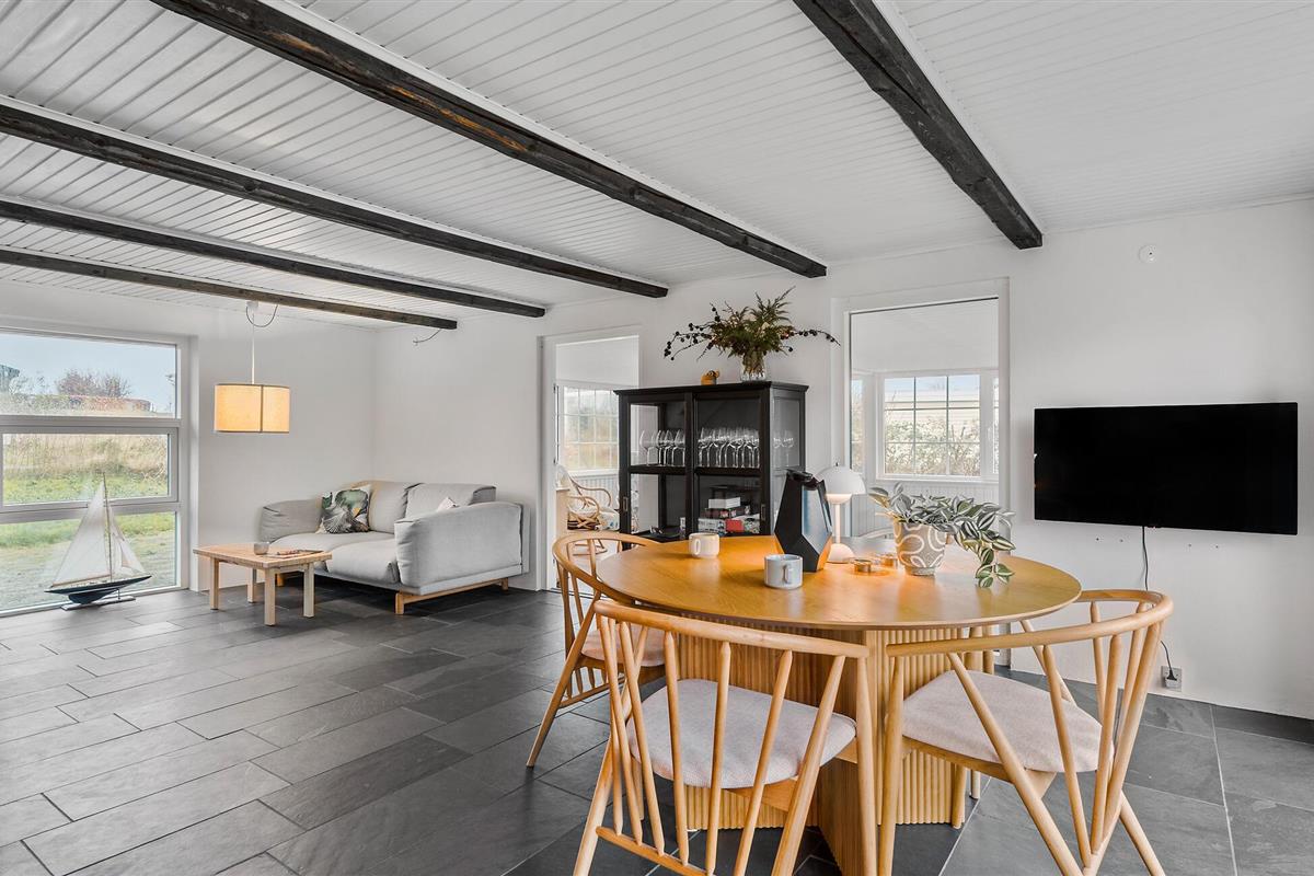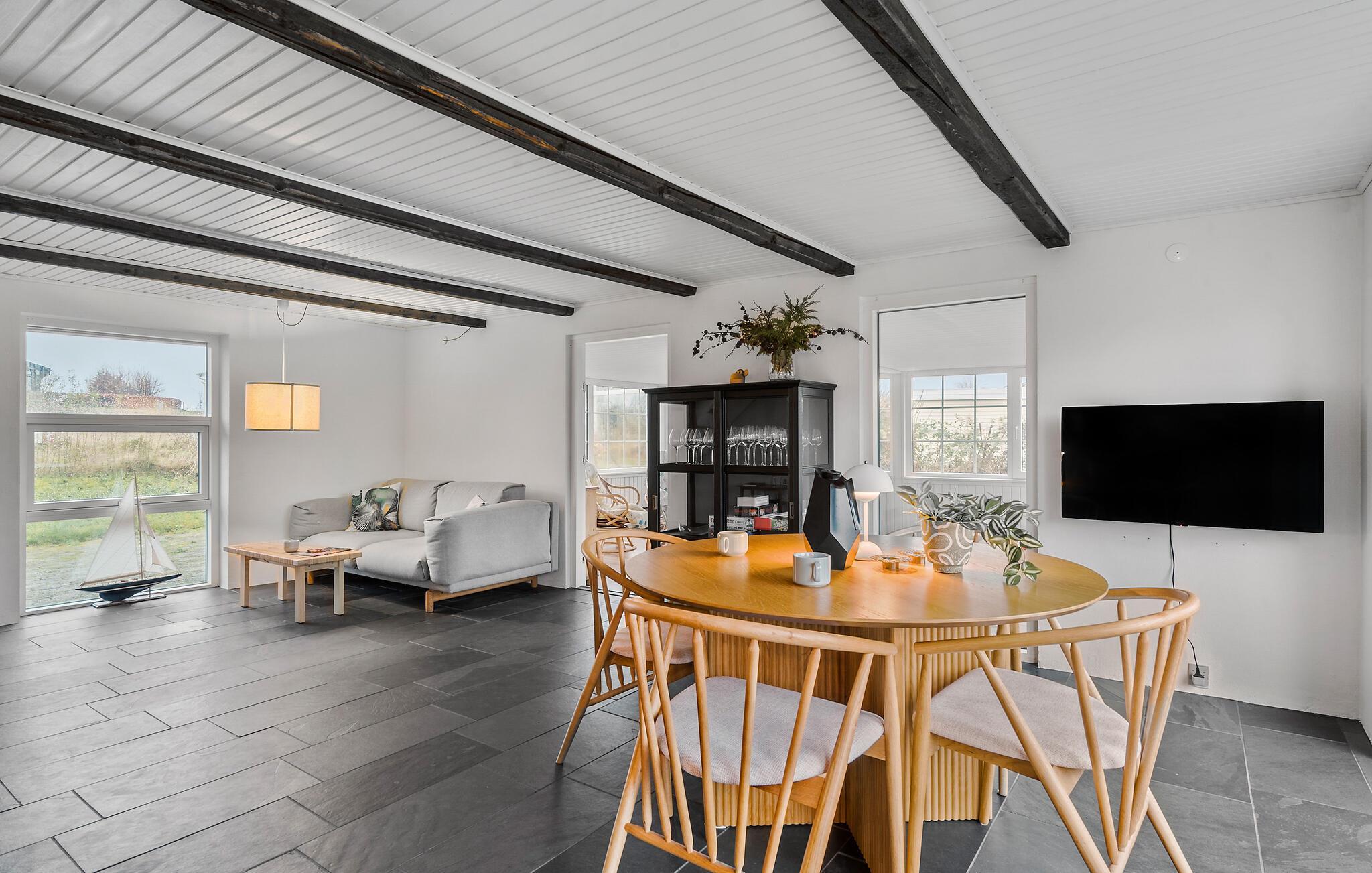 Laat je inspireren door de bijzondere sfeer van dit gezellige vakantiehuis en geniet van een ontspannen vakantie in de buurt van Hjarbæk Fjord. Zodra je binnenkomt, zul je onder de indruk zijn van het lichte en smaakvolle interieur. De open woonkamer met balkenplafond en grote ramen creëert een uitnodigende, vriendelijke sfeer. Doe alsof je thuis bent op de comfortabele banken en geniet van de gezellige warmte van de open haard op koelere avonden. De moderne keuken nodigt je uit om samen je favoriete gerechten te bereiden, terwijl de mooie houten eettafel de ideale setting biedt voor gezamenlijke maaltijden.