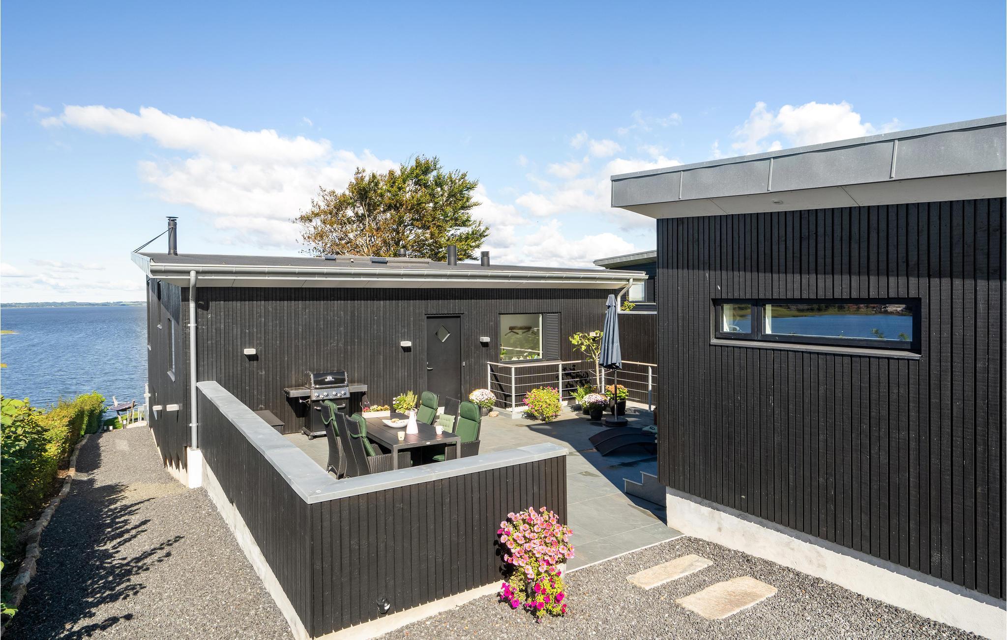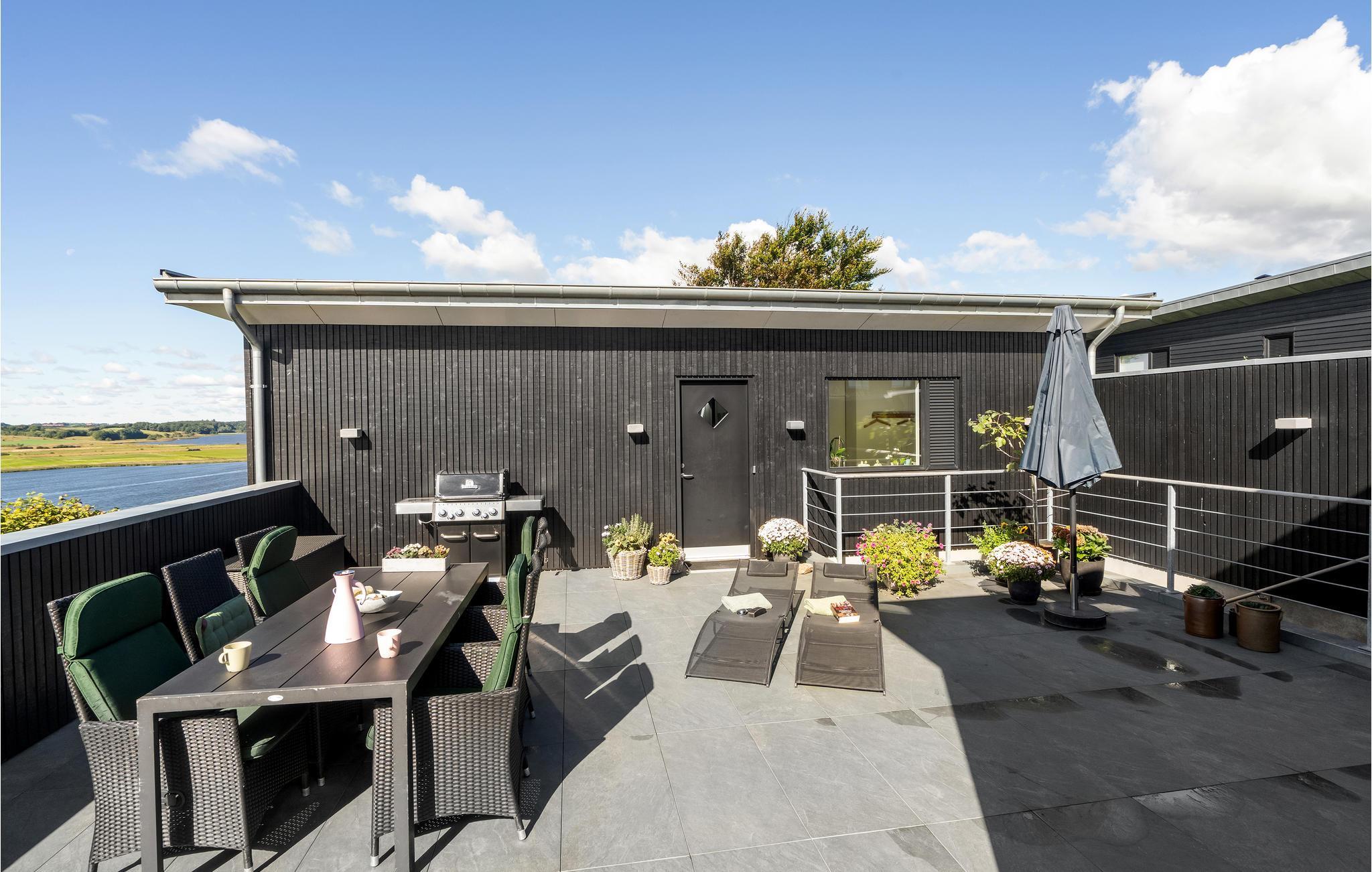 Ontspan in dit luxe vakantiehuis met panoramisch uitzicht, wellnessfaciliteiten en een activiteitenruimte aan het Hjarbæk Fjord.