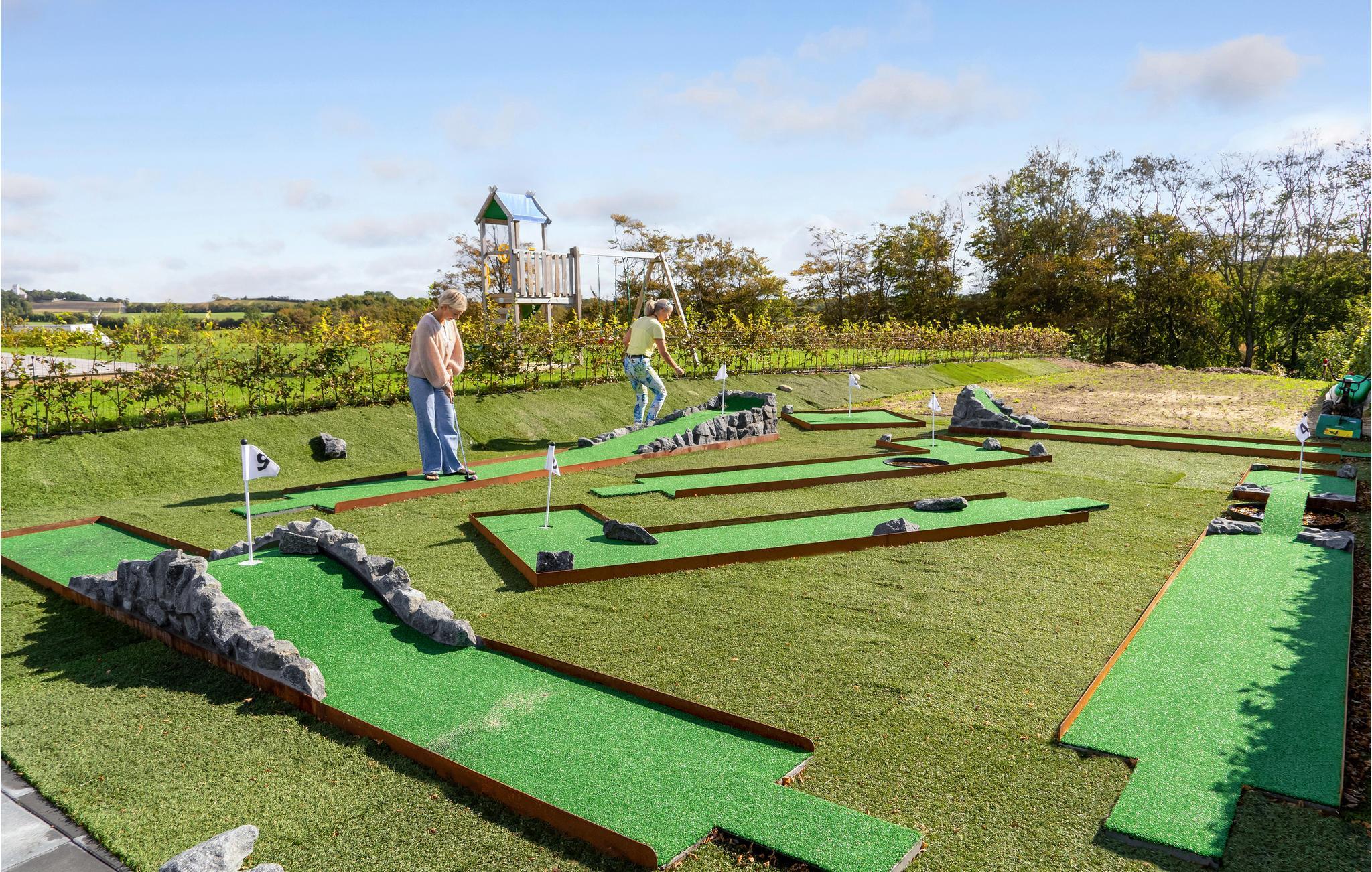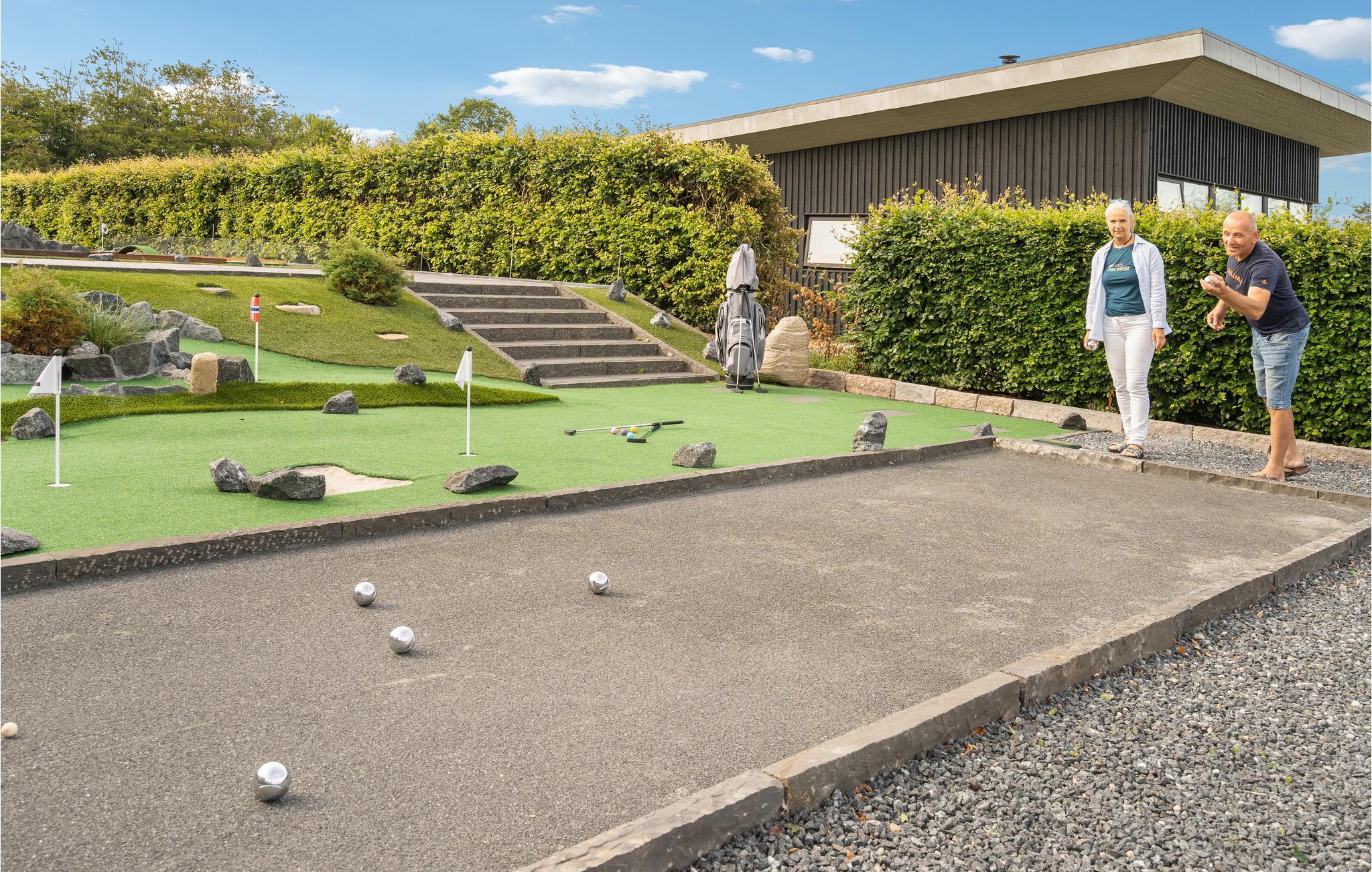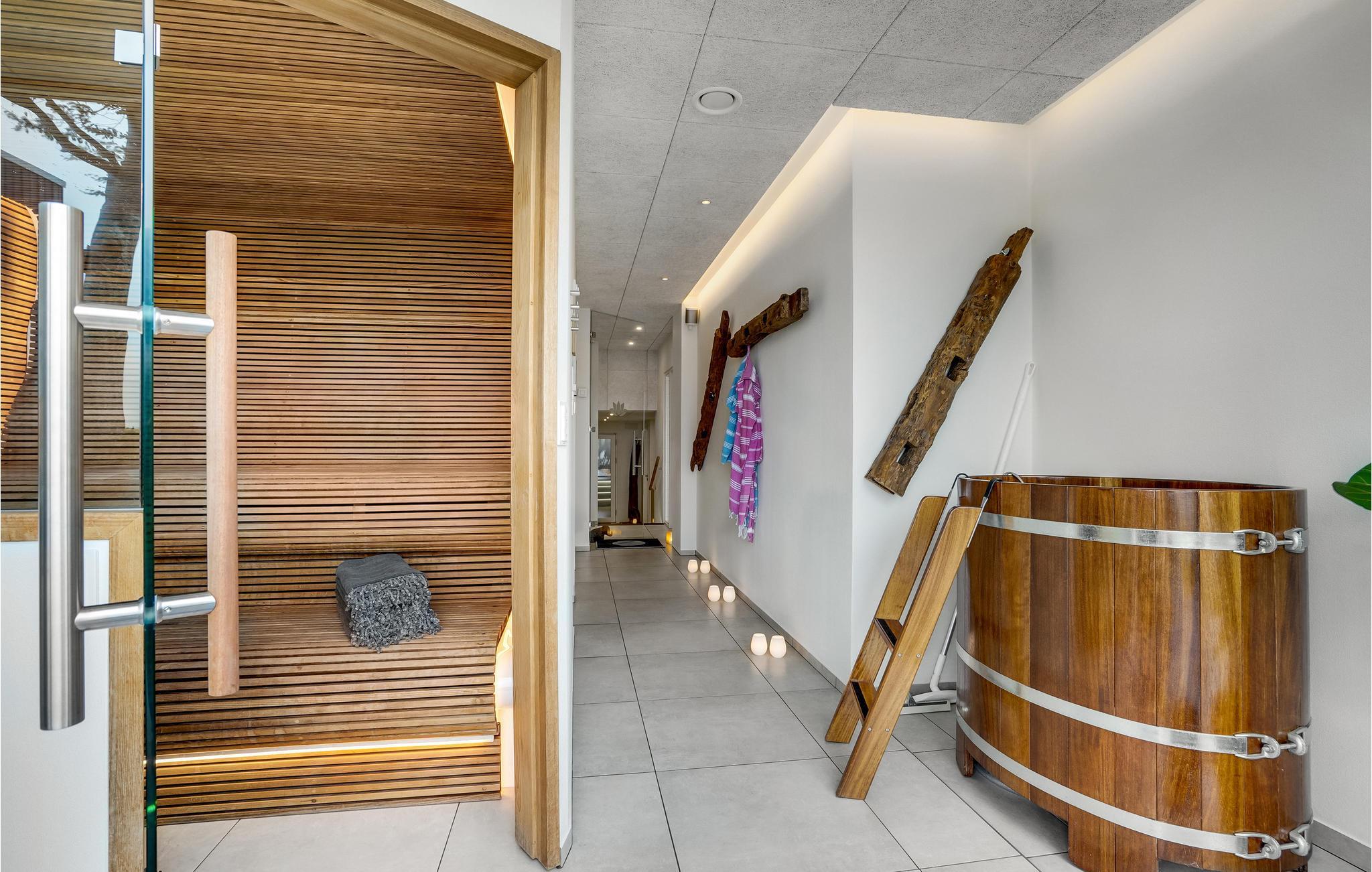 Het uitzicht komt helemaal tot zijn recht wanneer je ontspant in de grote whirlpool buiten of geniet van het uitzicht op het fjord, de natuur en de vele lokale vogels in de buitensauna. Koel daarna af onder de buitendouche of maak gebruik van het koude bad, dat zich recht tegenover de stoomcabine en de infraroodsauna bevindt. Vanuit de grote sauna heb je ook een mooi uitzicht op het fjord. Je kunt elkaar ook uitdagen voor een minigolftoernooi, gewoon in je eigen tuin. Clubs en ballen zijn beschikbaar. Tegen betaling kun je een handdoeken- en beddengoedpakket bestellen.