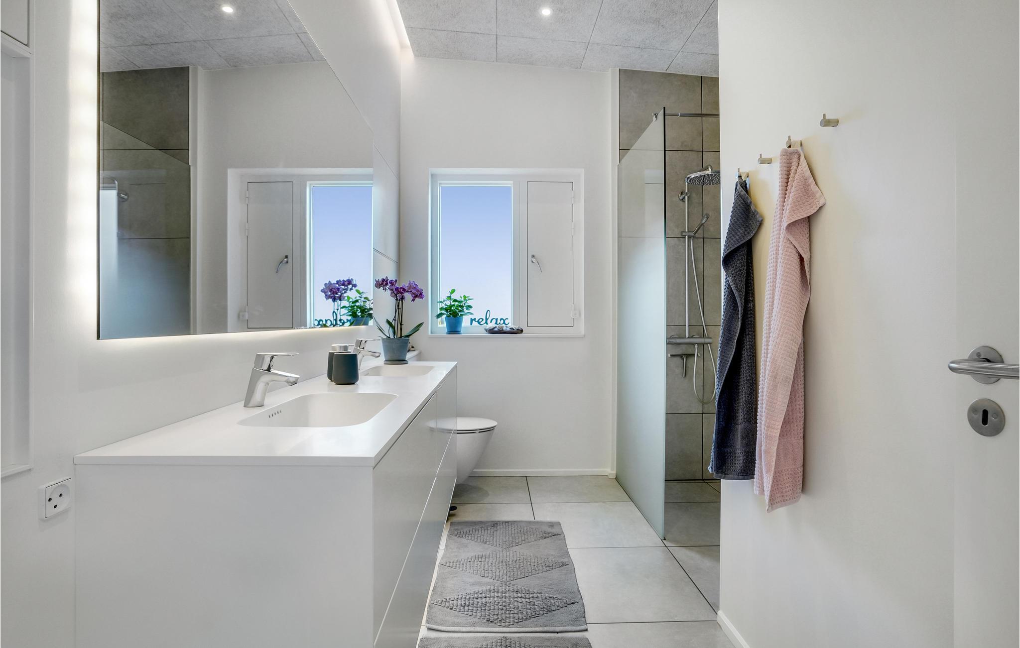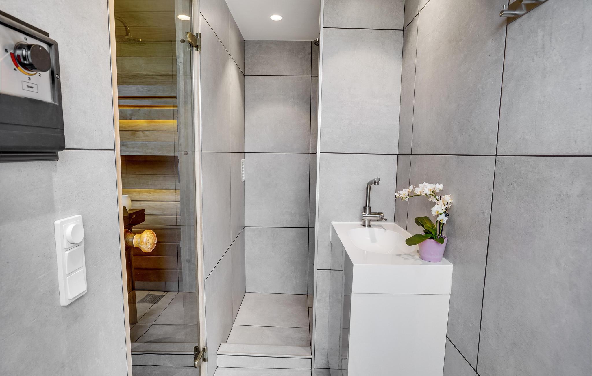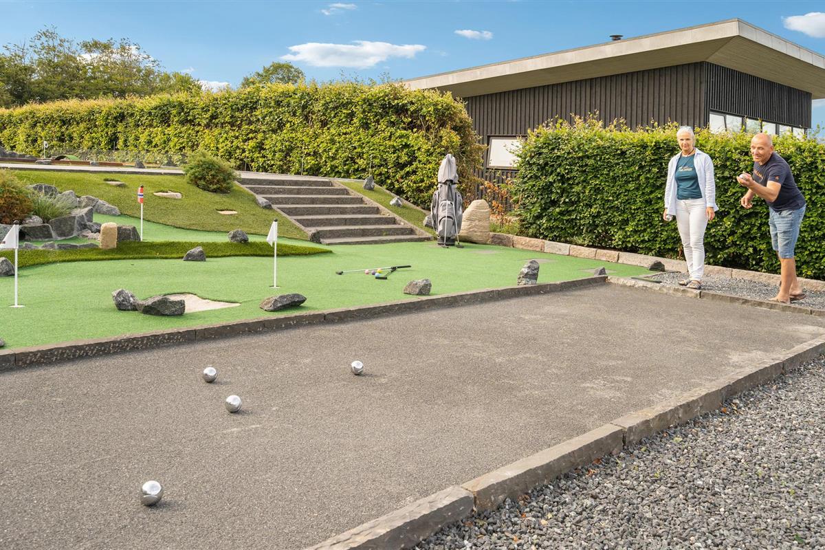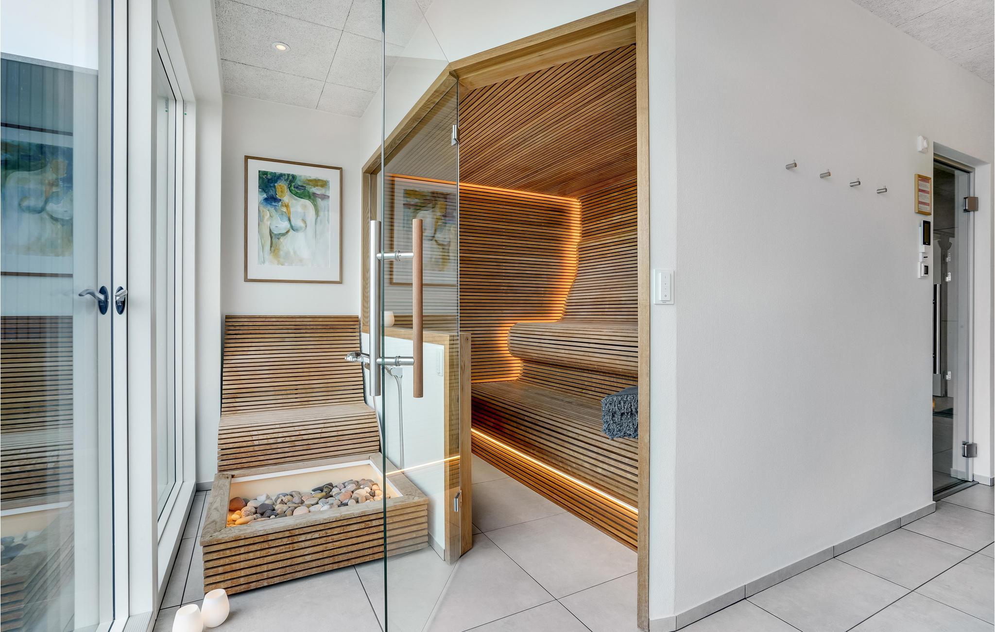 Het uitzicht komt helemaal tot zijn recht wanneer je ontspant in de grote whirlpool buiten of geniet van het uitzicht op het fjord, de natuur en de vele lokale vogels in de buitensauna. Koel daarna af onder de buitendouche of maak gebruik van het koude bad, dat zich recht tegenover de stoomcabine en de infraroodsauna bevindt. Vanuit de grote sauna heb je ook een mooi uitzicht op het fjord. Je kunt elkaar ook uitdagen voor een minigolftoernooi, gewoon in je eigen tuin. Clubs en ballen zijn beschikbaar. Tegen betaling kun je een handdoeken- en beddengoedpakket bestellen.