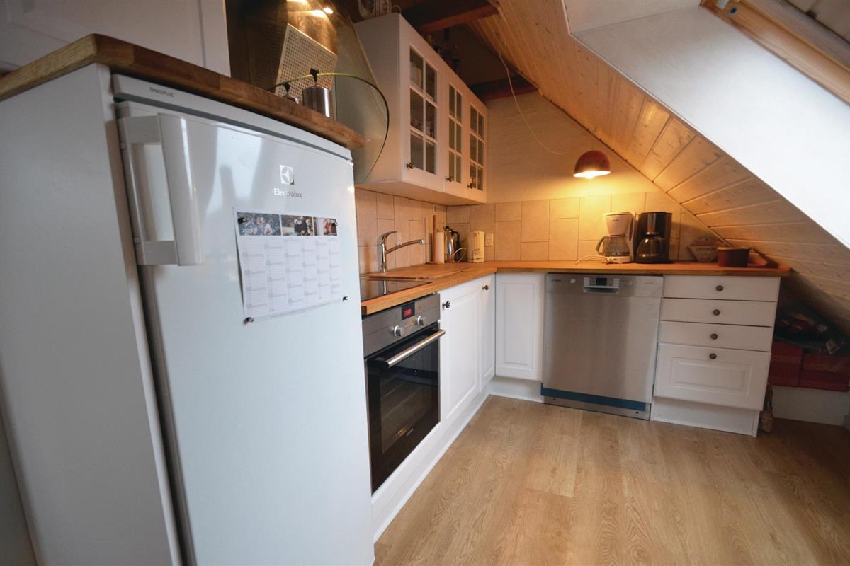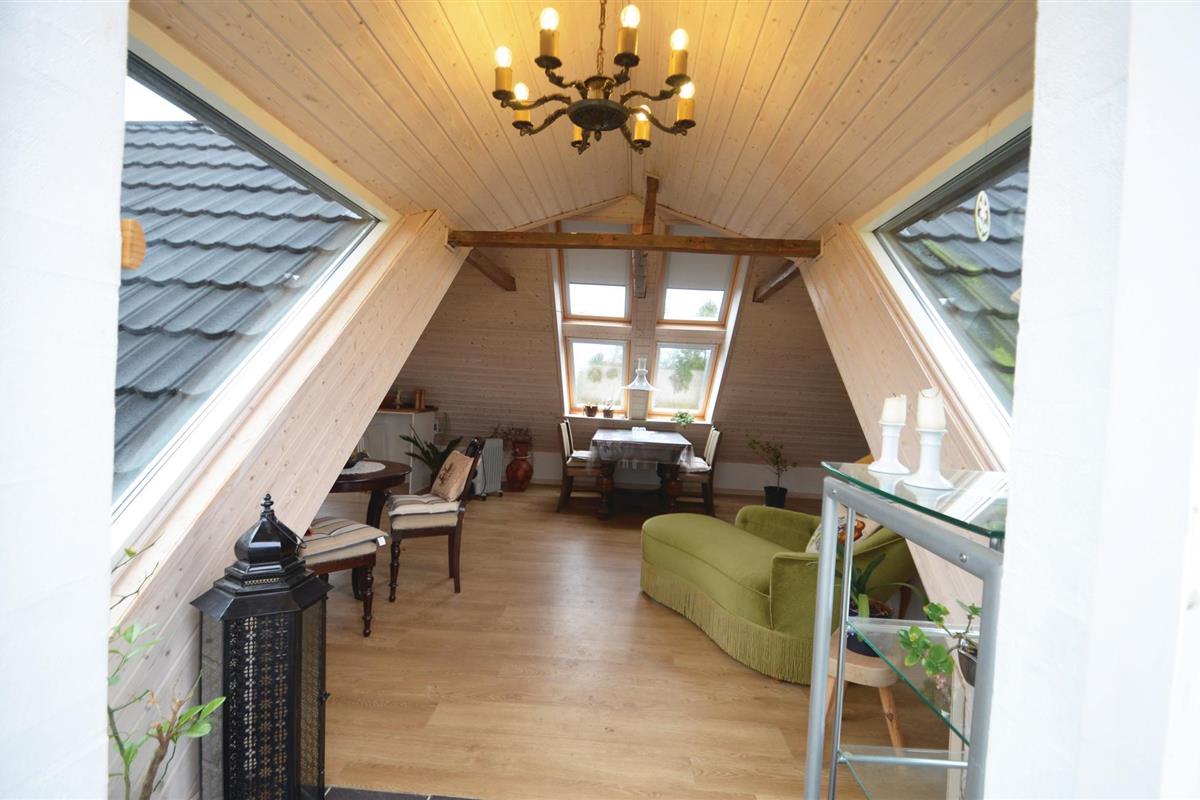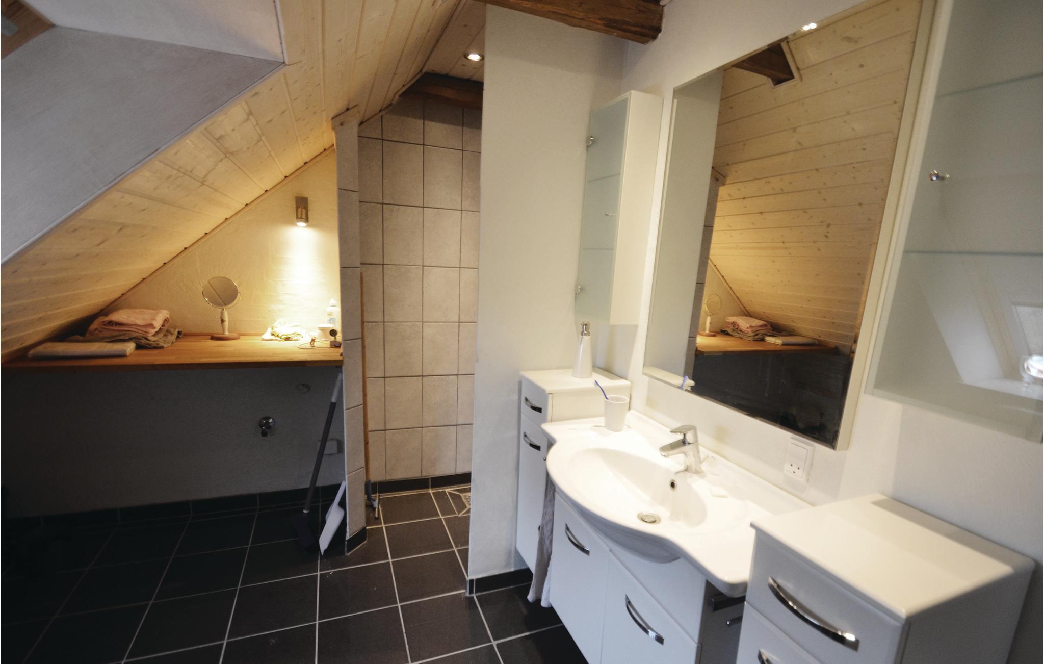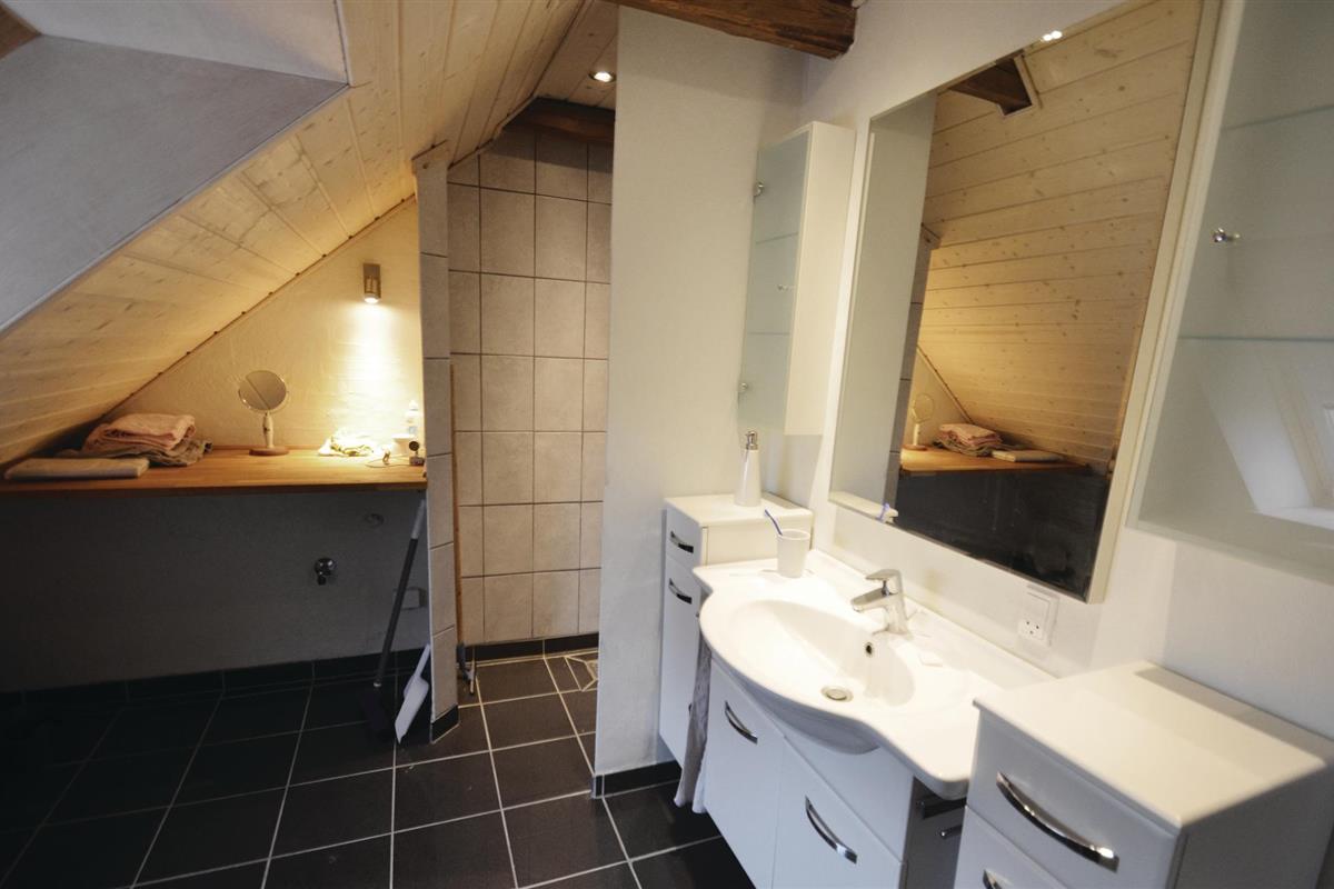 Kijk uit naar deze gezellige vakantiewoning op de 1e verdieping, wat de voormalige hooizolder van deze boerderij was. De flat heeft schuine plafonds, veel gezellige hoekjes die bijdragen aan een sfeer van privacy. Het meubilair bestaat uit verschillende stijlen en is wat ouder. De chaise longue is perfect voor een middagdutje. De badkamer is groot en modern. Als je hoog woont, ligt het landschap aan je voeten, als op een presenteerblaadje.