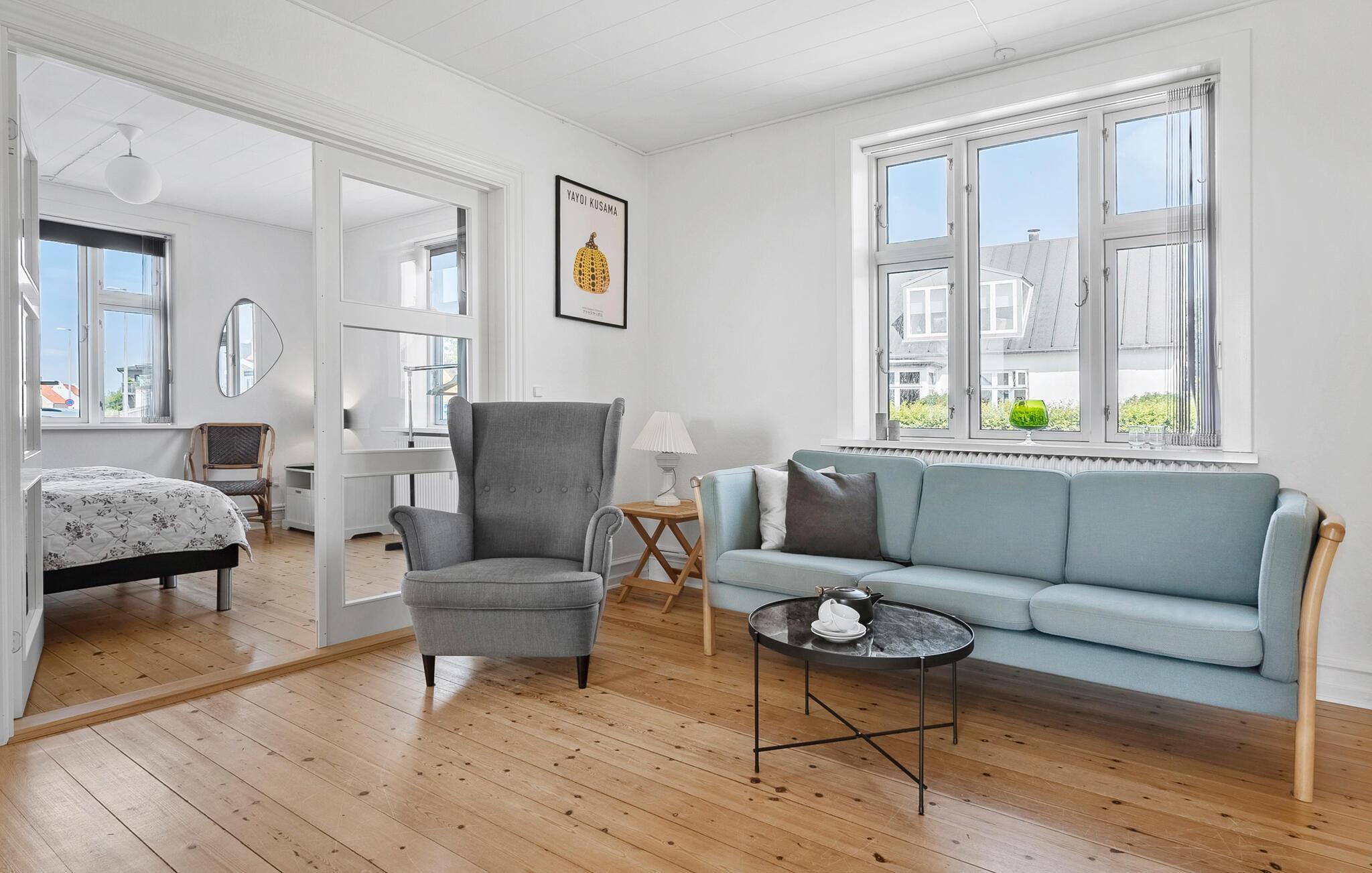 Dit ruime en comfortabele appartement op de begane grond ligt direct aan het strand van Hjerting - dichter bij het water kun je niet zijn. Stap binnen en laat je inspireren door het lichte en smaakvol ingerichte interieur van de zorgvuldig gerestaureerde kamers. Verheug je op harmonieuze maaltijden, rustige leesuurtjes en ontspan met een film op de gezellige bank na een lange dag in de rustgevende zeelucht.