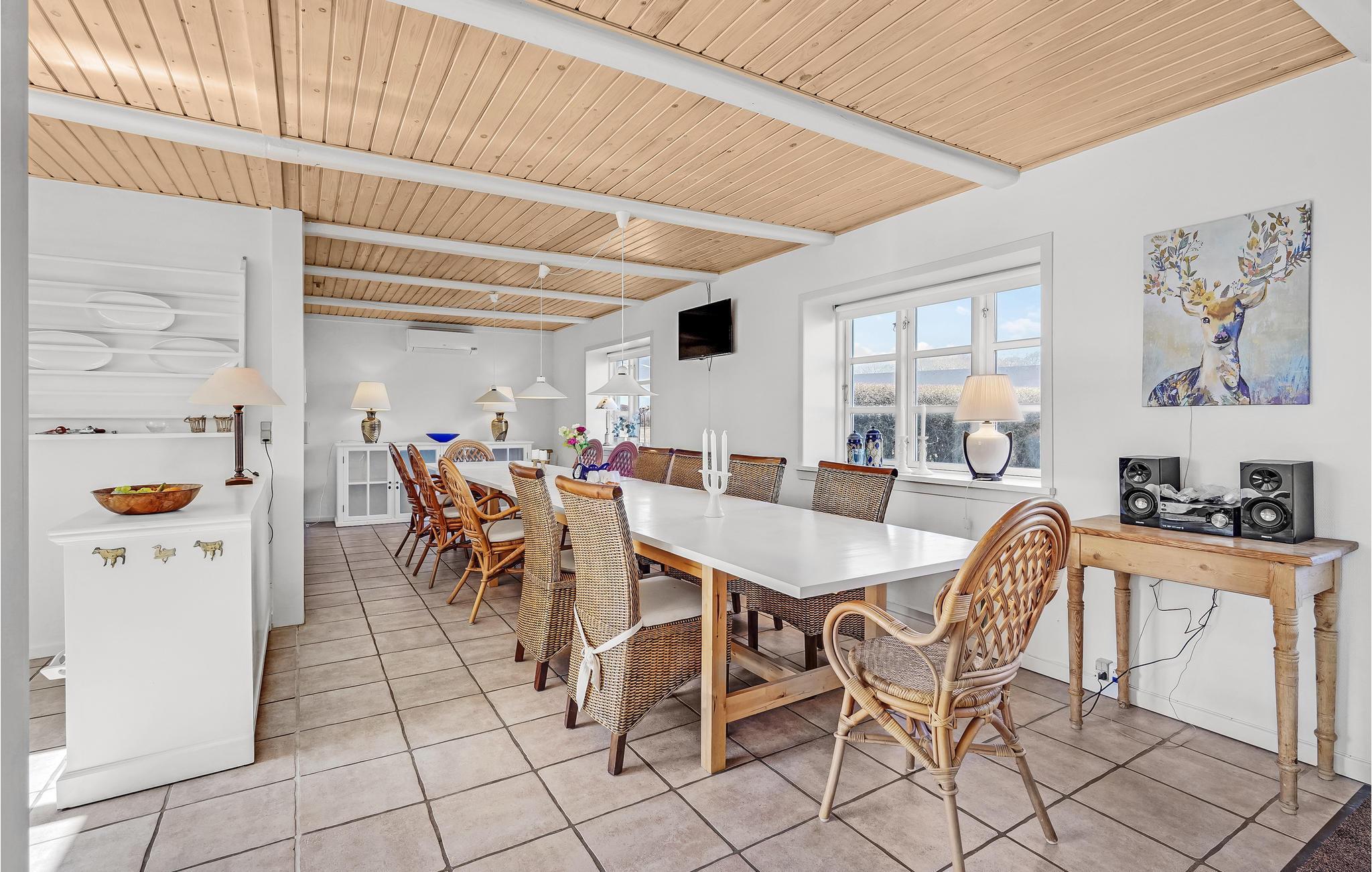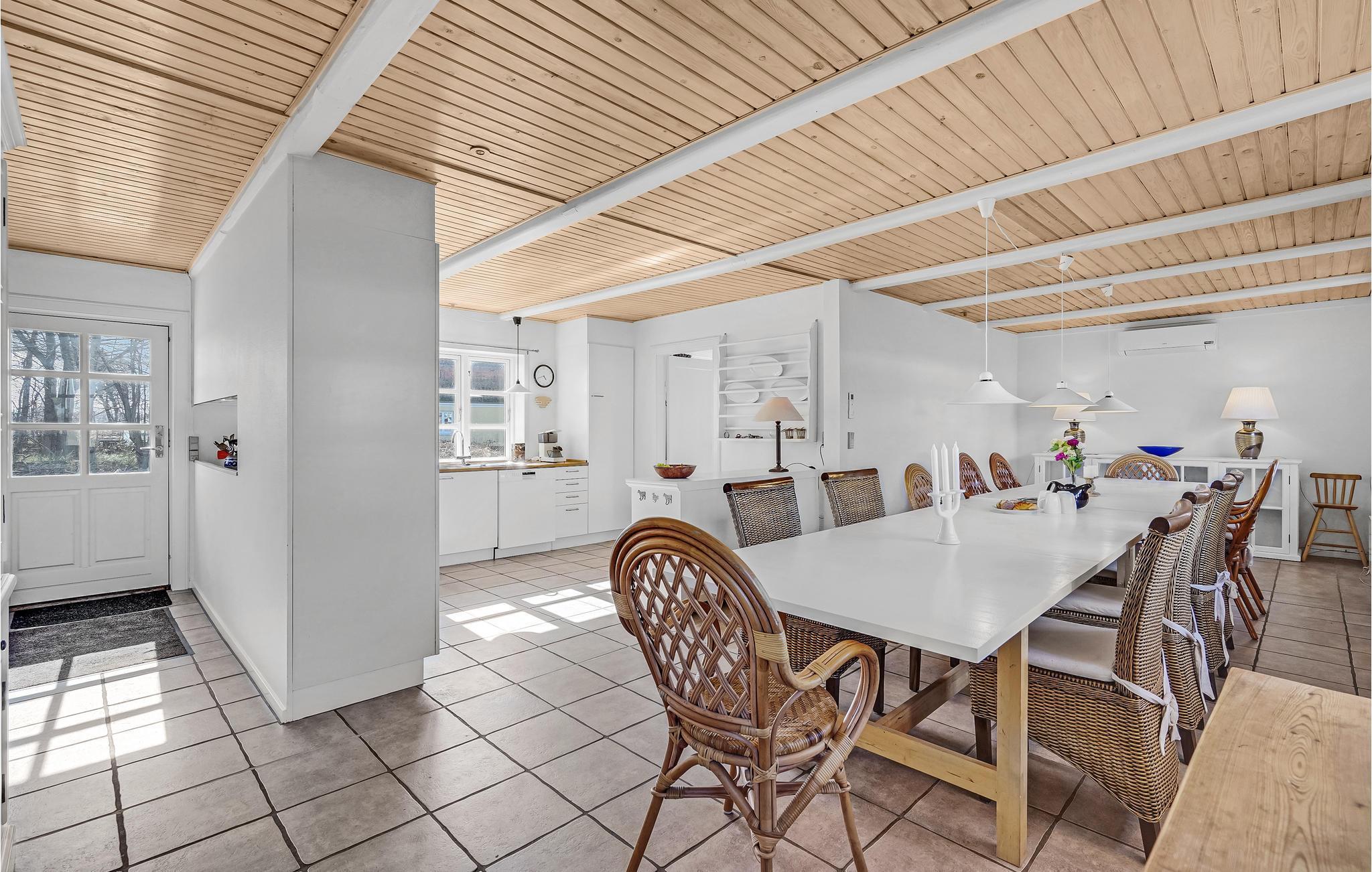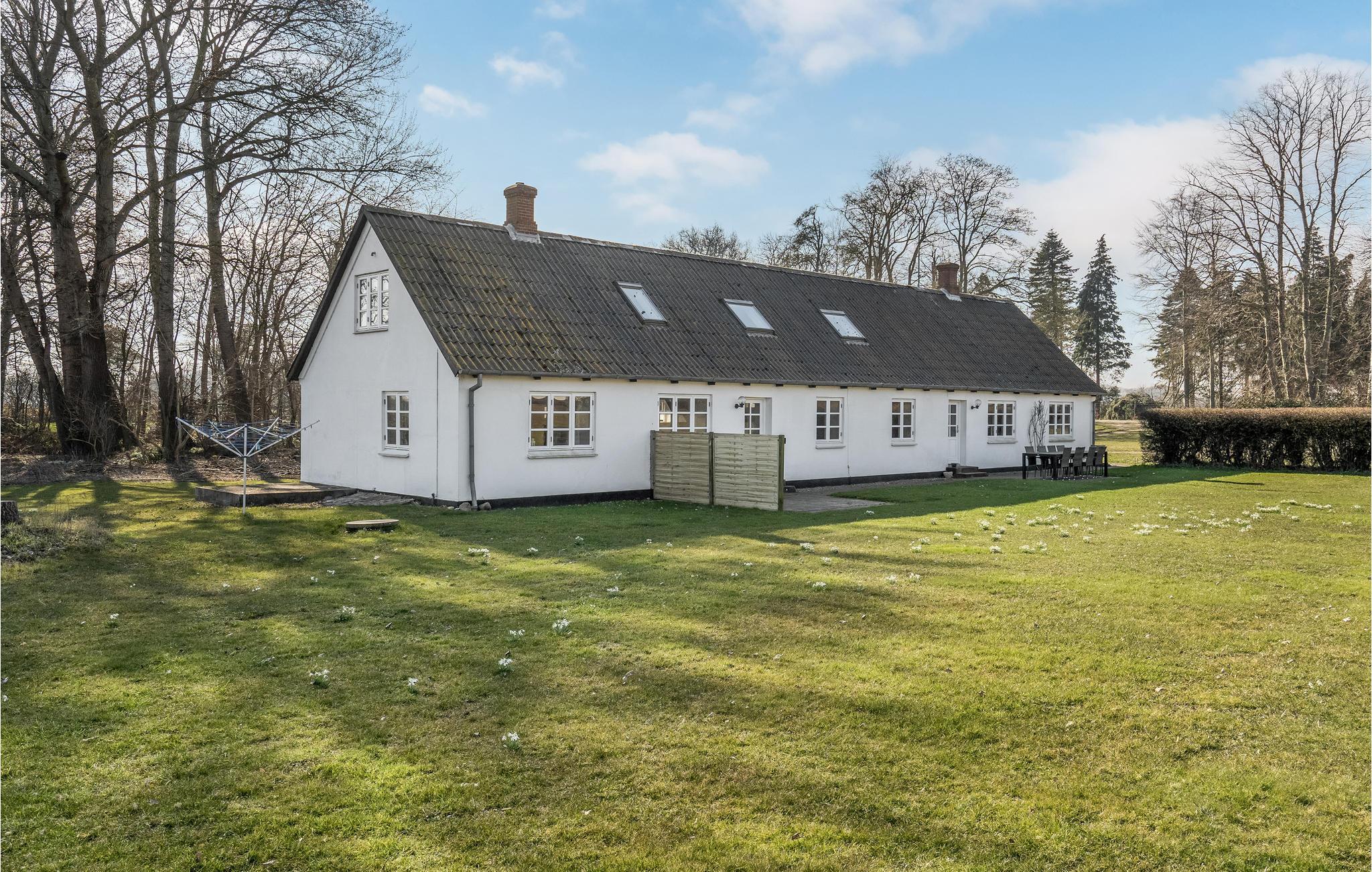 Dit grote en mooie vakantiehuis ligt op het landgoed Hjortholm, niet ver van een bos, ongerepte natuur en een niet omheind meer. Het huis is zeer geschikt voor meerdere gezinnen, omdat het is ingericht met een grote, mooie keuken die open is naar de woonkamer en twee badkamers. Een van de badkamers heeft een dubbele douchecabine. Het huis heeft een open terras waar de hele familie kan genieten van de zon en de prachtige natuur. Het is 7 km naar Langeland Golf Club met 18 holes in het zuiden van het eiland. Een prachtig huis voor uw vakantie in elk seizoen.