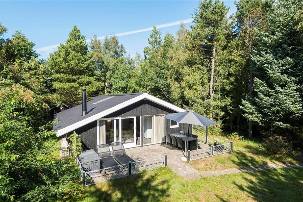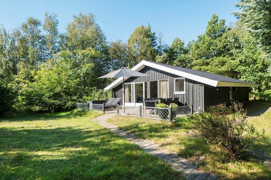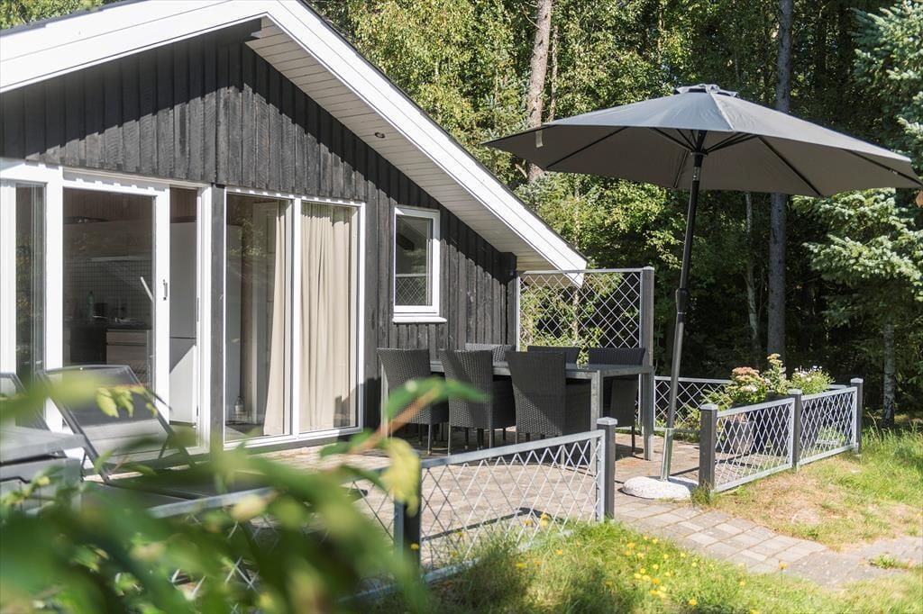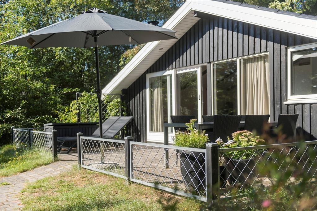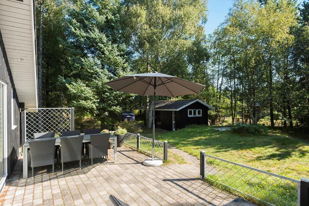 Das Ferienhaus liegt auf einem großen Naturgrundstück, das durch Bäume und Randbepflanzung gut abgeschirmt ist. Hier kannst du deine Ferien in ruhiger und ungestörter Umgebung genießen. Die Kinder können sich auf der Schaukel vergnügen, während die Erwachsenen auf der südöstlich ausgerichteten Terrasse entspannen. Starte den Tag mit einer Tasse Kaffee in der Morgensonne und genieße die hellen Sommerabende mit Grillgerichten und gemütlichen Stunden unter freiem Himmel.