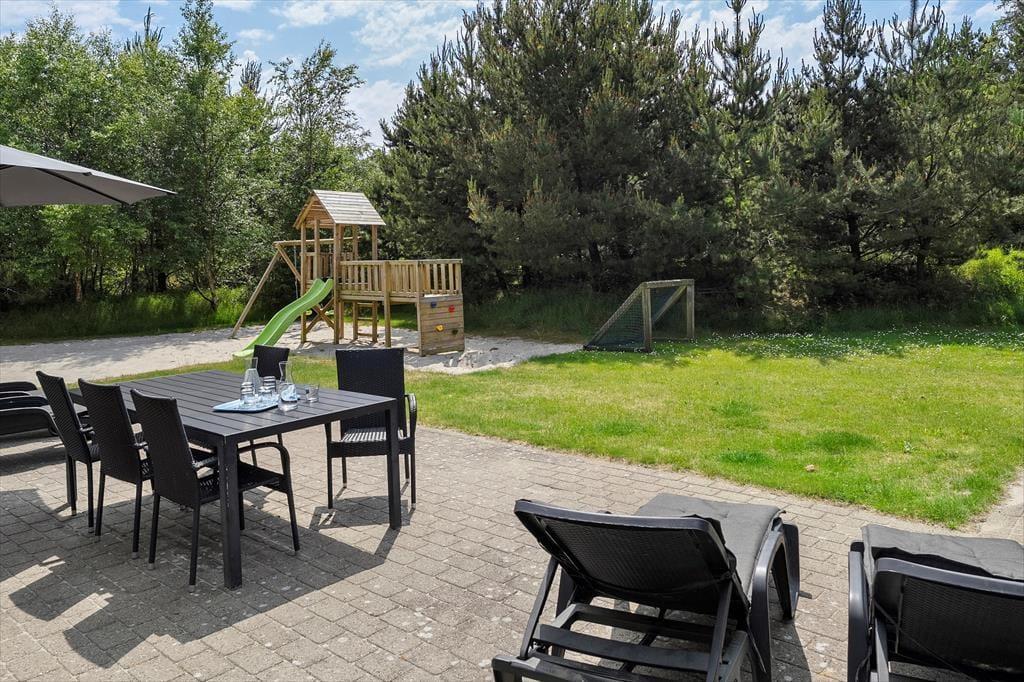 Das 1.500 m² große Naturgrundstück bietet Ihnen zahlreiche Entfaltungsmöglichkeiten. Die jüngsten Urlauber spielen in der Sandkiste und schaukeln, während die etwas älteren sich auf dem Beachvolleyballfeld verausgaben. Groß und Klein vergnügen sich beim gemeinsamen Fußballspiel auf der Grasfläche, auf der ein Tor bereit steht. Ruhige Momente verleben Sie auf der Terrasse, auf der Sie mehrere schöne Aufenthaltsplätze erwarten. Sie haben dabei die Wahl zwischen sonnigen Bereichen und dem kühlen Schatten unter der Terrassenüberdachung. Nach einem gemütlichen Abendessen vom Grill lassen Sie den Urlaubstag am besten mit einem entspannten Bad im Outdoor-Whirlpool ausklingen.
