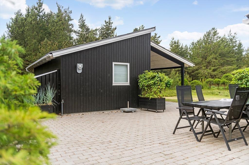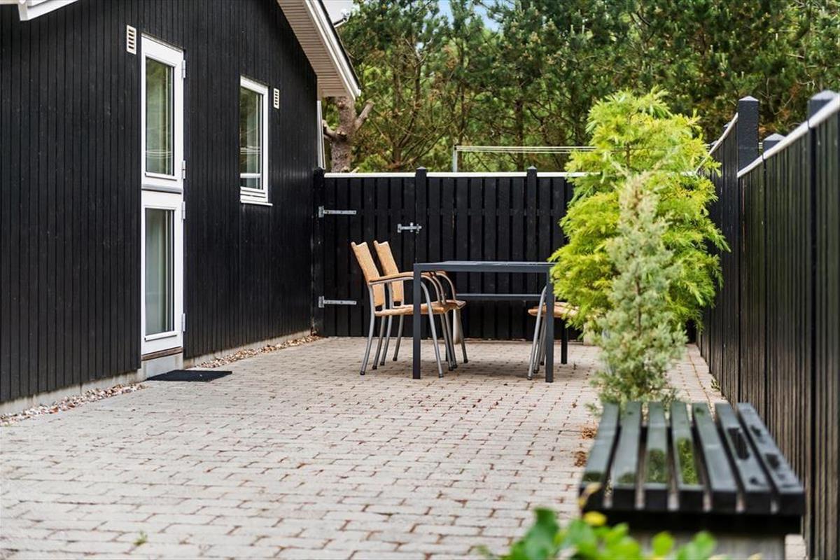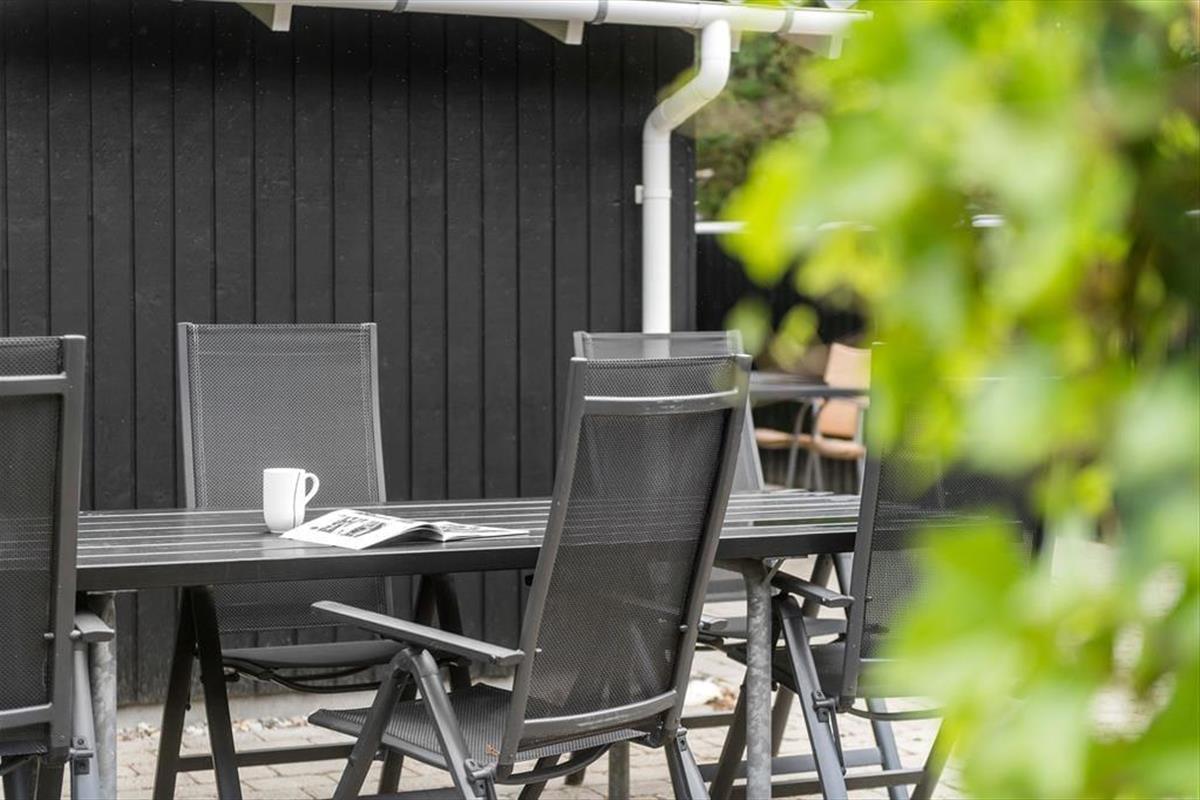 Während helle Farbtöne das Innere deine Ferienhauses prägen, besticht dein friedvoll gelegenes Naturgrundstück mit allen erdenklichen Grüntönen. In der Sommersaison erfreust du dich zusätzlich an der lila blühenden Heide. In Kombination mit dem hohen, blauen Himmel kann ein Grundstück kaum schöner sein. Das gepflasterte, angenehm ungestörte Terrassenareal besticht mit Sonne und Windschutz. Bei Bedarf findest du stets ein Plätzchen im Schatten, an dem du es dir in deinem komfortablen Gartenstuhl so richtig gemütlich machen kannst.