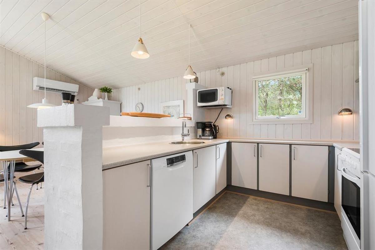 In diesem schönen Ferienhaus, das angenehm zurückgezogen im Tværvænget 8 in Ho liegt, wirst du dich vom ersten Moment an heimisch fühlen. Das große Naturgrundstück heißt dich mit schön in Form gebrachten Bäumen und einem im Sommer lila blühenden Heideteppich willkommen. Im Haus selber sorgt die helle, stimmungsvolle Atmosphäre dafür, dass du dich sofort entspannst und den Stress und die Hektik des Alltags hinter dir lässt.