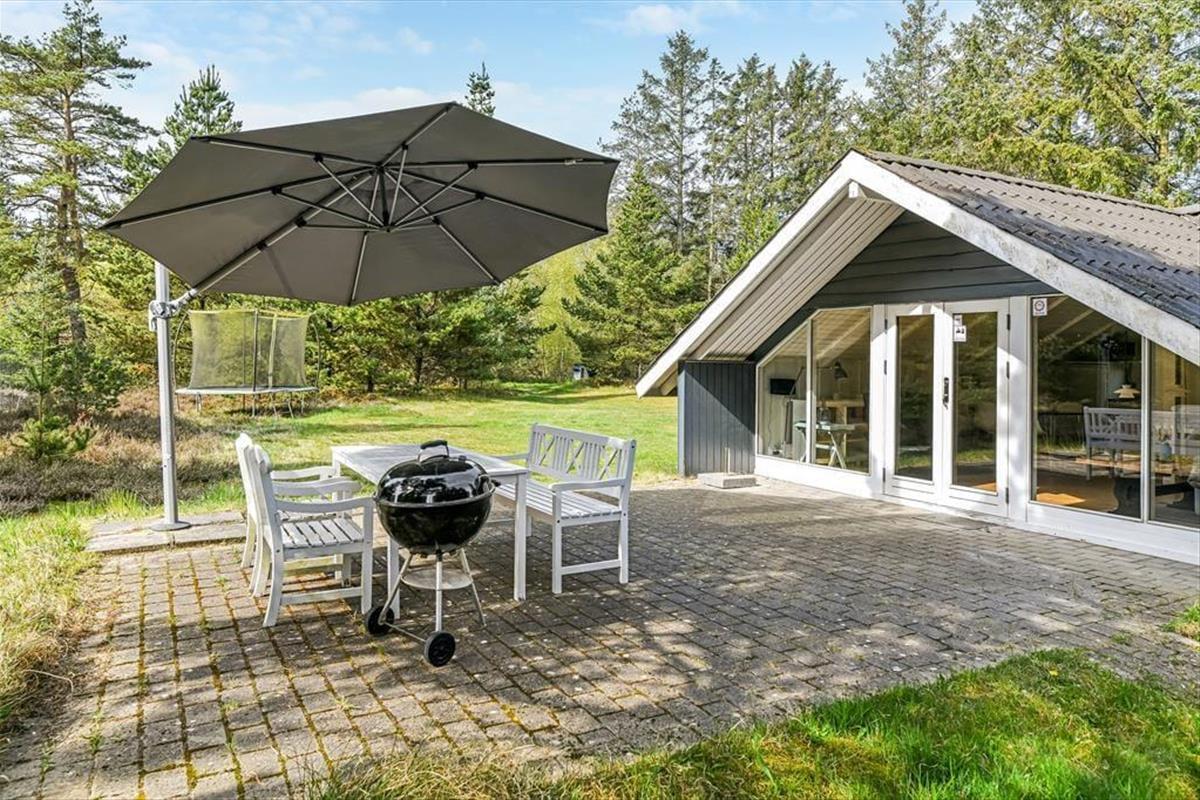 Das Beste an diesem Ferienhaus ist fast all das, was dich draußen erwartet. Die Terrasse führt direkt hinaus auf ein großes, privates Naturgrundstück, wo du den Wind im Haar spürst und dem morgendlichen Vogelgesang ganz ungestört lauschen kannst. Hier findest du leicht zur Ruhe – im Liegestuhl, mit dem Morgenkaffee in der Sonne oder beim gemeinsamen Grillabend in der Dämmerung. Für Kinder gibt es viel Platz zum Spielen, während die Erwachsenen das Geschehen von der sonnigen Terrasse aus entspannt verfolgen können. Das Grundstück ist von hohen Bäumen und wilden Büschen umgeben, die einen natürlichen Sichtschutz bieten und das Gefühl vermitteln, ganz für sich allein in der Natur zu sein – wie eine kleine grüne Oase nur für euch.