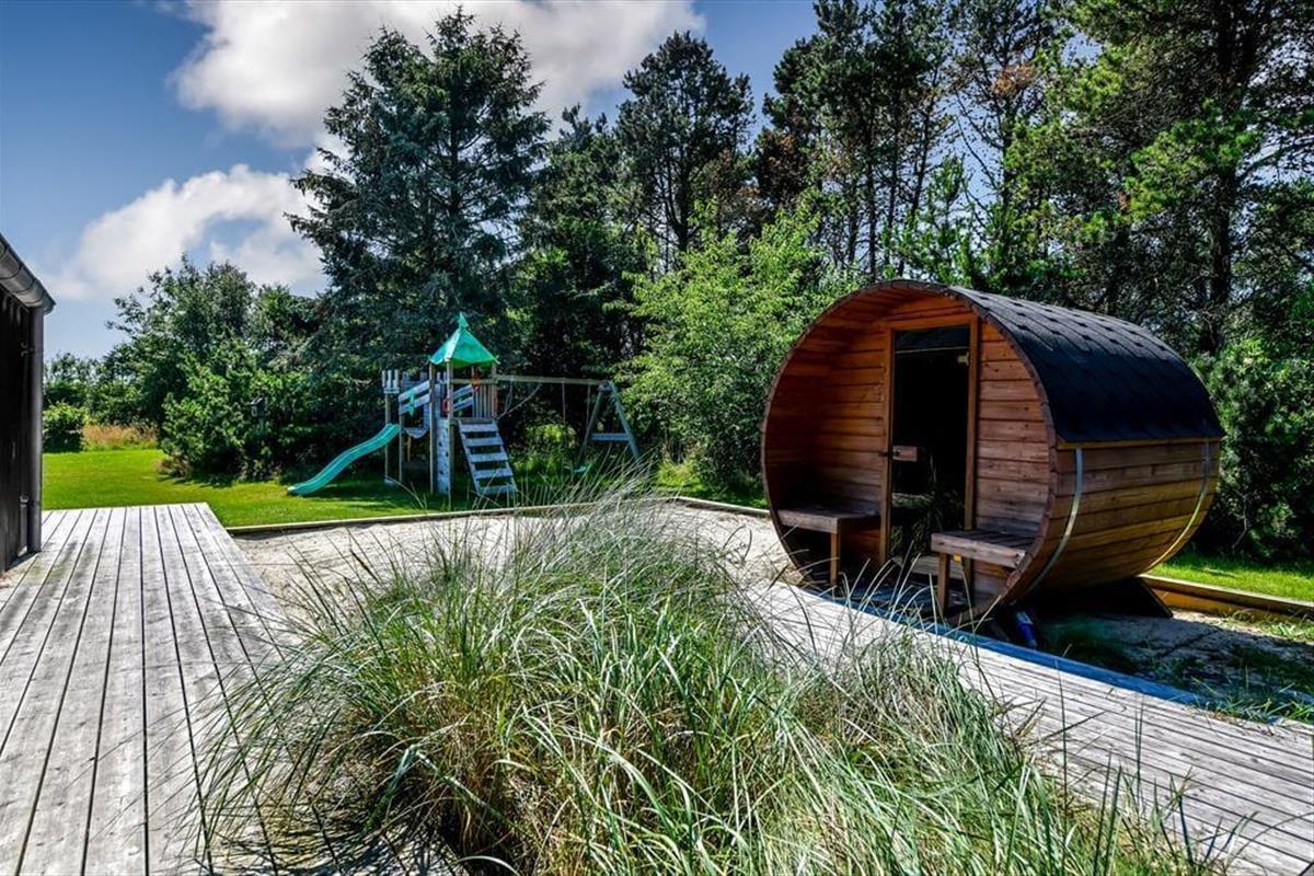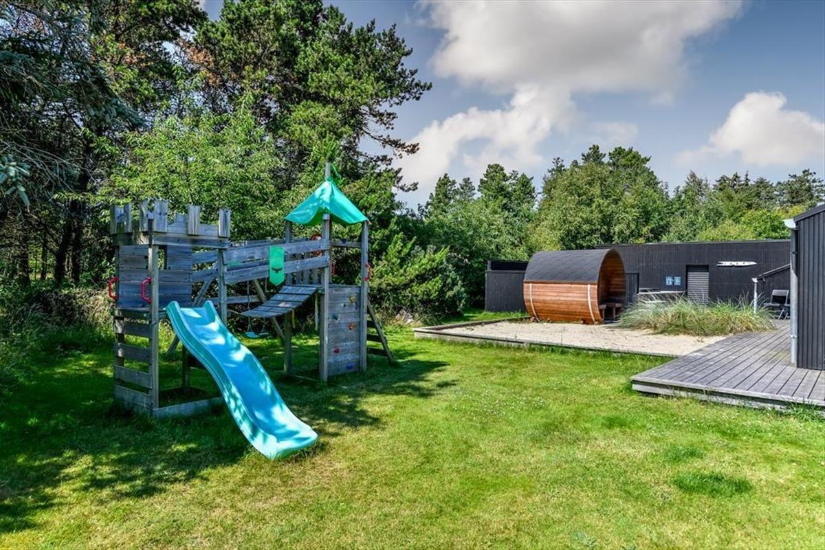 Das abgeschlossene Grundstück rund um das Ferienhaus schafft eine private Oase, in der du das Leben im Freien in vollen Zügen genießen kannst. Der Außen-Wellnessbereich ist ein echtes Highlight, in dem du dich im warmen Außen-Whirlpool verwöhnen lassen und eine entspannende Sauna-Erfahrung genießen kannst, während du den Blick auf die umliegende Natur genießt. Die große Terrasse ist ideal für lange, sonnige Tage, an denen du dich in den Loungemöbeln entspannen, köstliche Mahlzeiten grillen oder einfach die Urlaubsruhe auf dich wirken lassen kannst. Die Kinder können frei im Kletterturm spielen oder auf dem gepflegten Rasen, der sowohl zum Spielen als auch zum Entspannen perfekt geeignet ist.