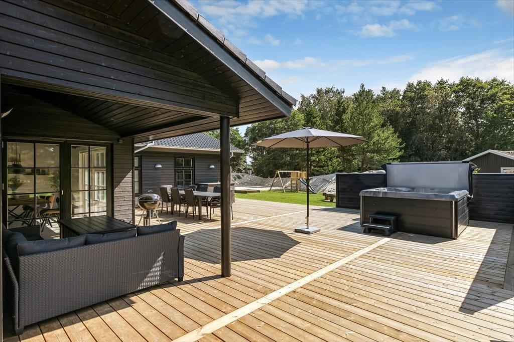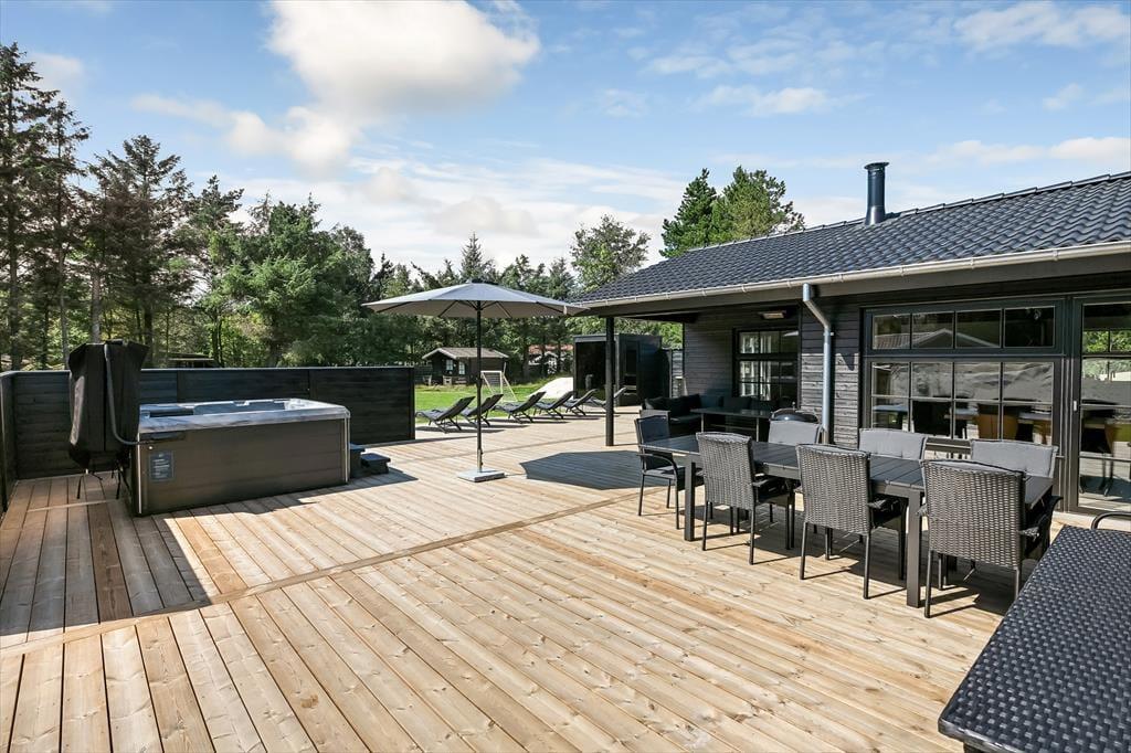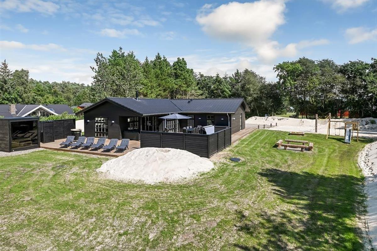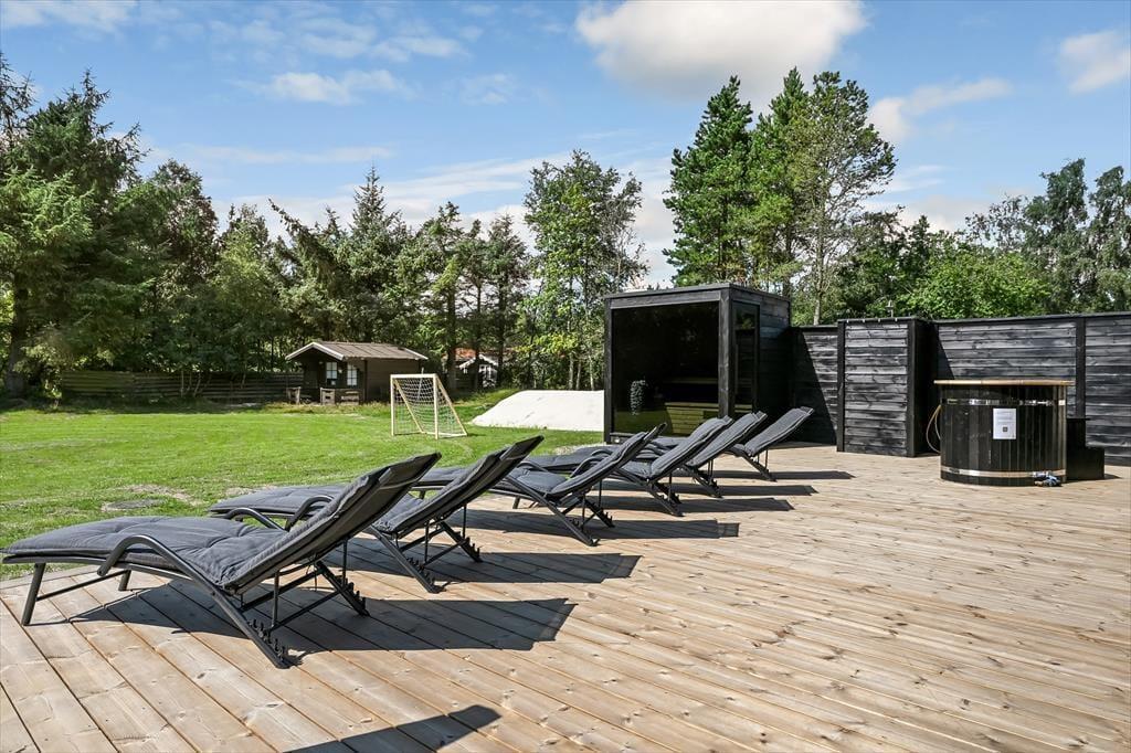 Träumst du von einem Urlaub mit Wellness, Naturerlebnissen und viel Platz für die ganze Familie? Dieses wunderschöne Ferienhaus auf Fyrrevænget 37 in Ho bietet modernen Komfort, eine fantastische Außenanlage und unterhaltsame Aktivitäten für Groß und Klein.