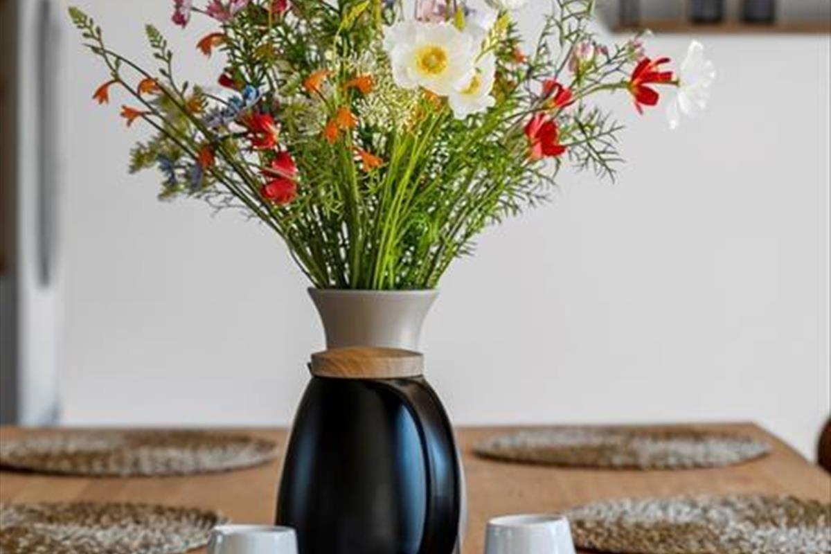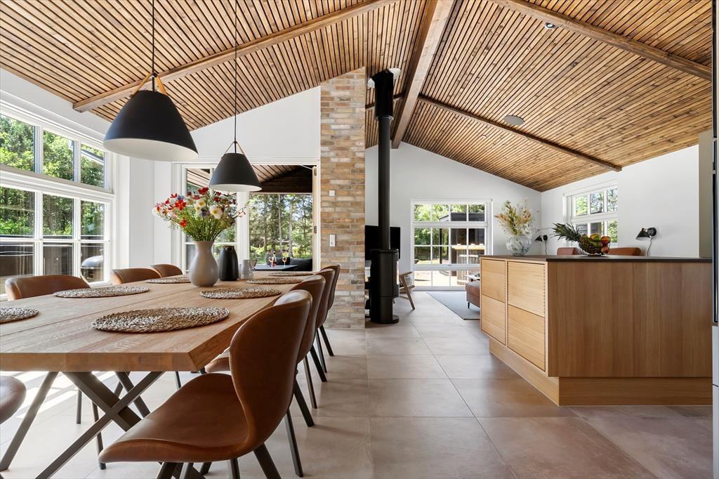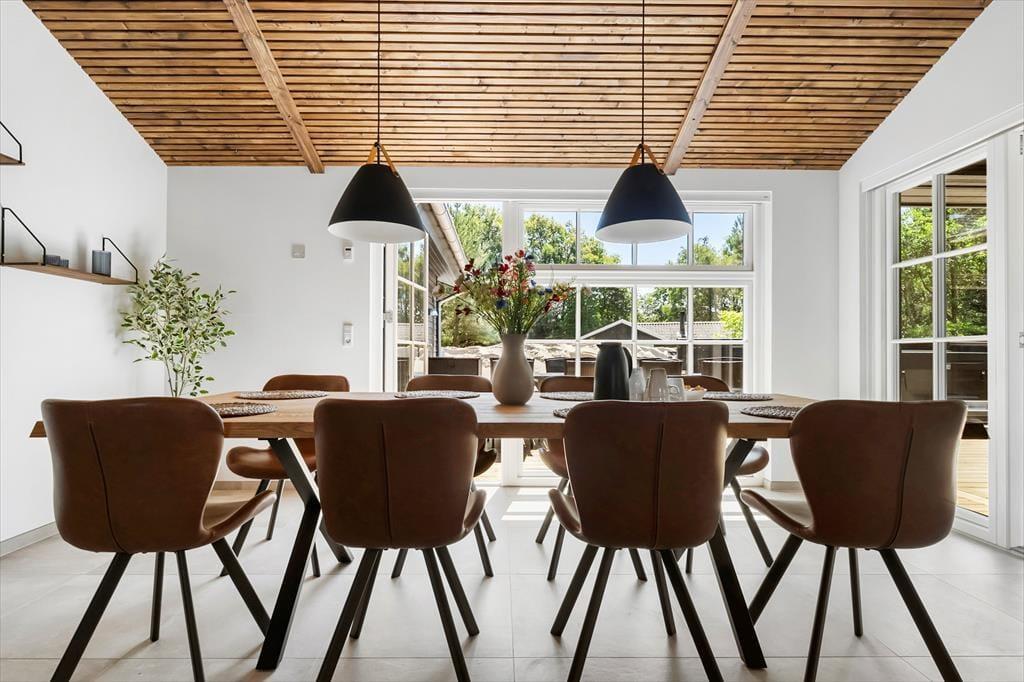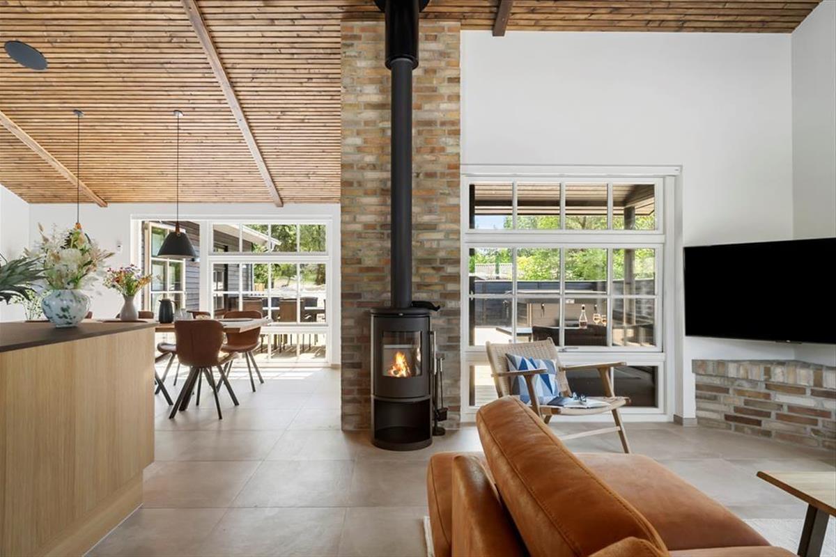 Im Inneren erwartet dich ein modernes und stilvolles Ferienhaus, dessen Einrichtung von Qualität und Wohlbefinden geprägt ist. Große Fensterfronten lassen viel Licht herein, und der offene Wohn- und Essbereich schafft eine einladende Atmosphäre, in der das Beisammensein im Mittelpunkt steht. Mit drei Badezimmern gibt es ausreichend Platz für alle, sodass die morgendliche Routine entspannt verläuft und jeder sich jederzeit zurückziehen und die Ferien in Ruhe genießen kann.