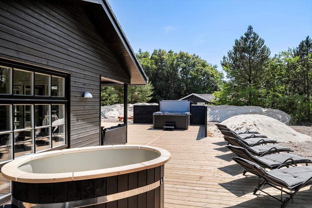 Die Lage in Ho bietet das Beste aus zwei Welten: eine ruhige, naturnahe Umgebung und die kurze Entfernung zum lebendigen Ferienleben in Blåvand. Die Ho Plantage und Skallingen locken mit wunderschönen Wanderwegen, während der Leuchtturm Blåvandshuk Fyr und die Nordsee nur eine kurze Autofahrt entfernt sind. Wenn du gerne Golf spielst, liegt der Blåvandshuk Golfklub ganz in der Nähe, und für Geschichtsinteressierte ist ein Besuch im Tirpitz-Museum ein erstklassiges Erlebnis.