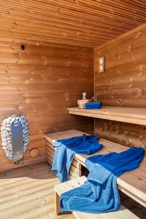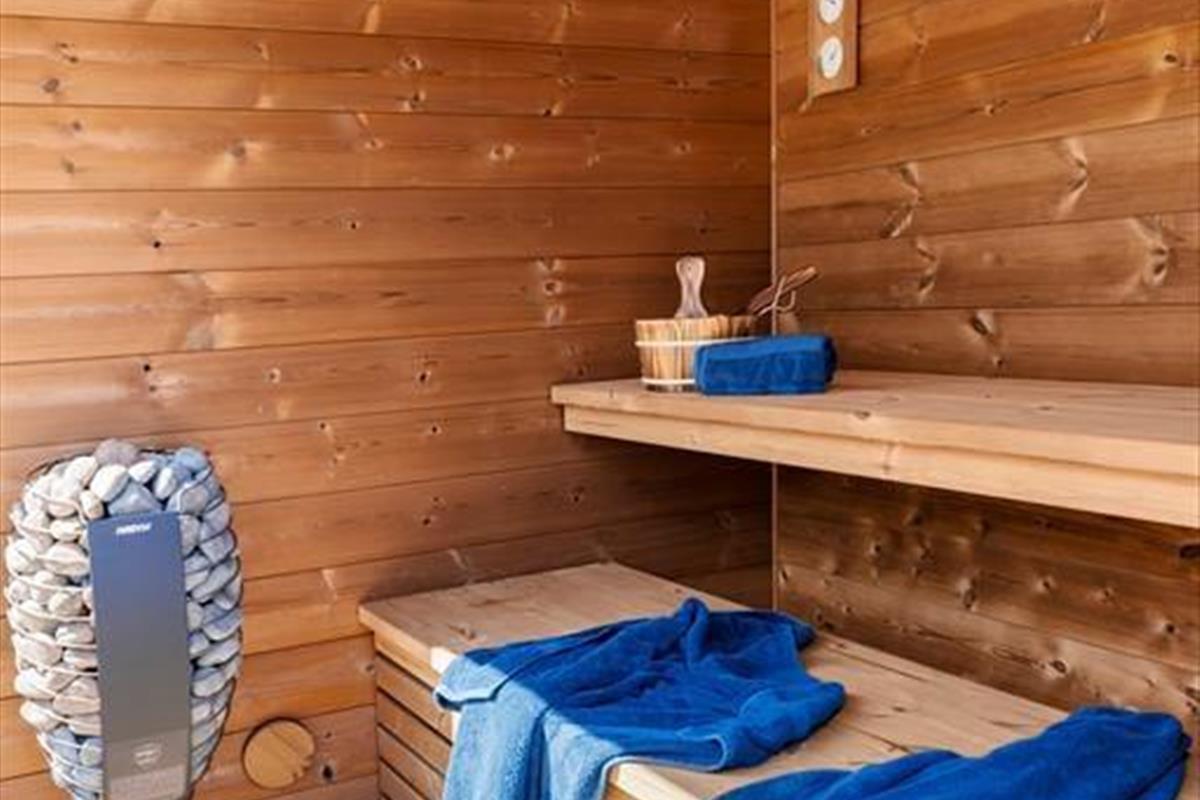 Das große Naturgrundstück des Ferienhauses ist ein wahres Paradies für Naturliebhaber und Genießer. Hier kannst du im luxuriösen Außen-Whirlpool entspannen, dich in der Sauna aufwärmen oder eine erfrischende Abkühlung im Kaltwasserbecken nehmen. Wenn du Lust auf einen aktiven Urlaub hast, kannst du deine Familie auf dem hauseigenen Volleyballfeld herausfordern oder die Kinder in der Sandkiste und dem Spielturm mit Rutsche spielen lassen. Die verschiedenen Terrassen laden zu langen Grillabenden und gemütlichen Momenten unter freiem Himmel ein.