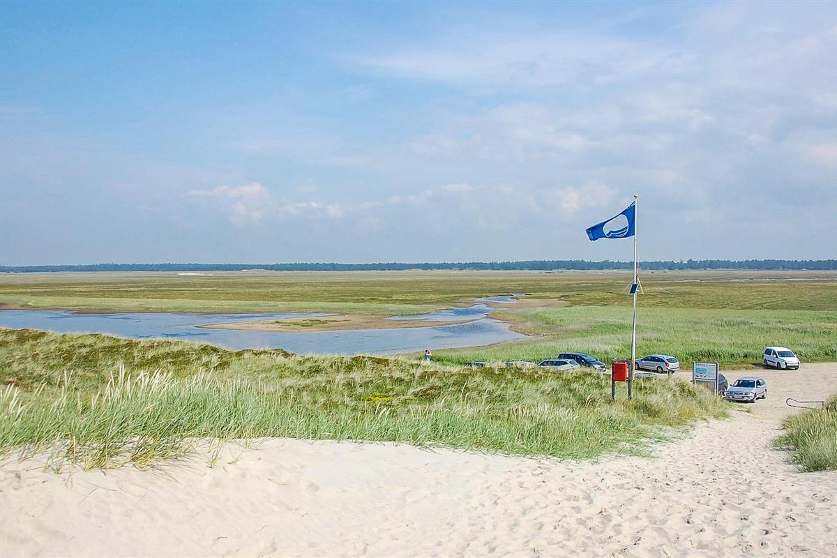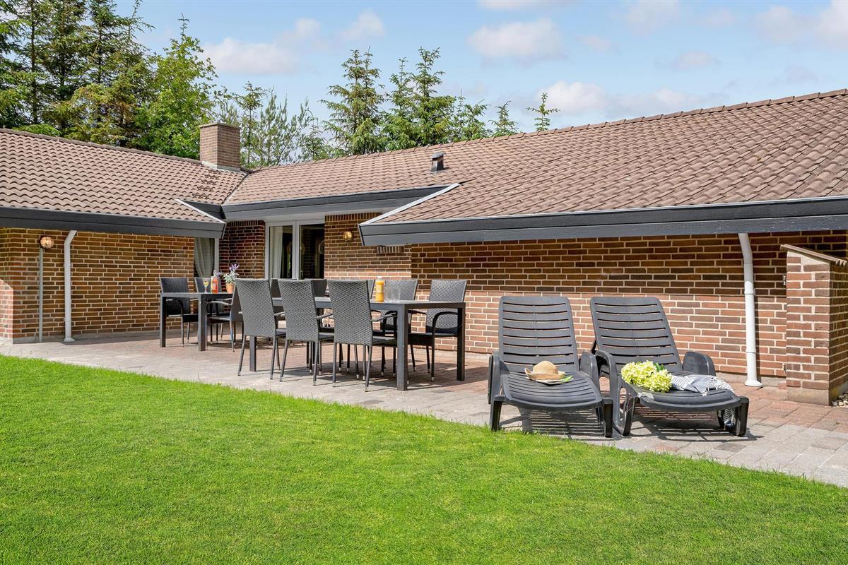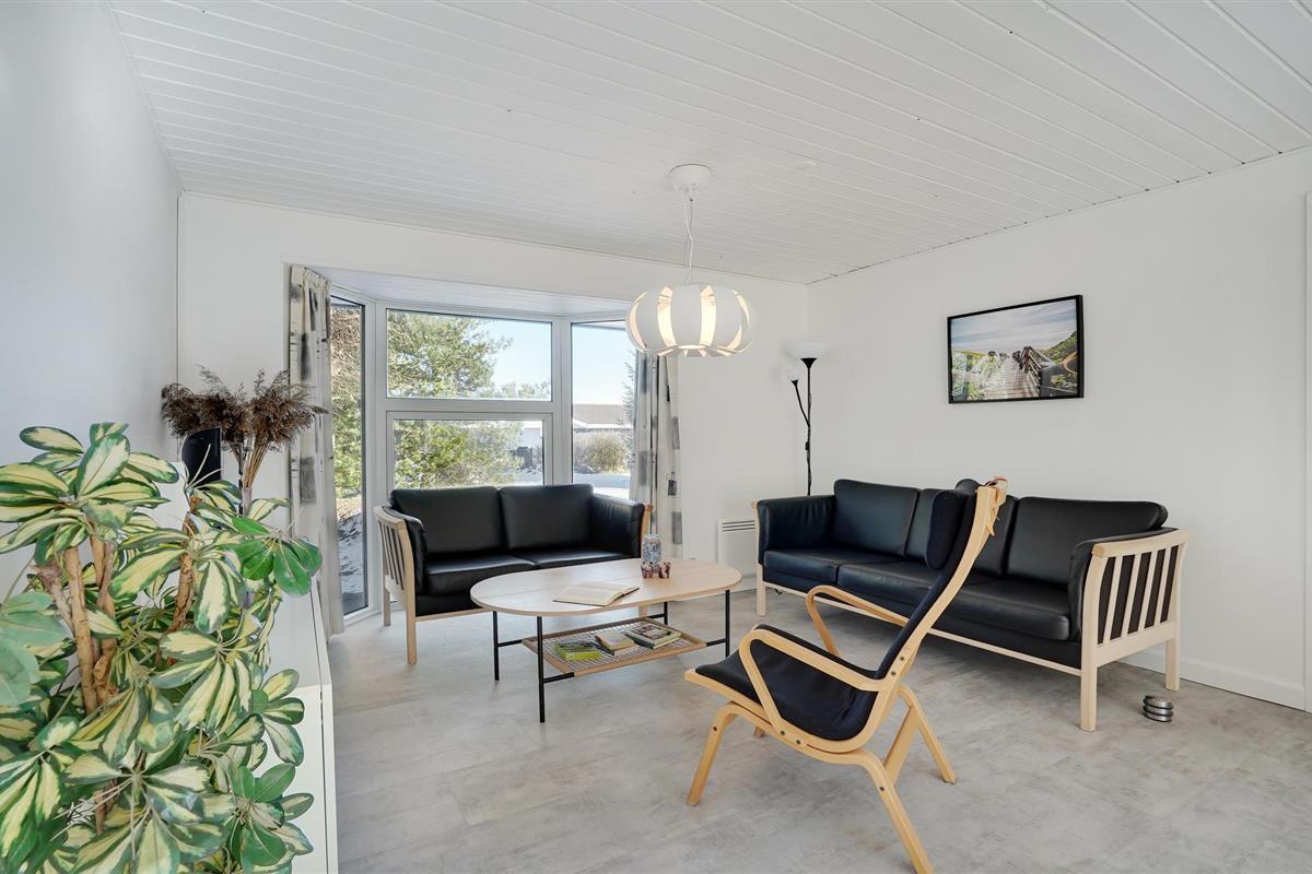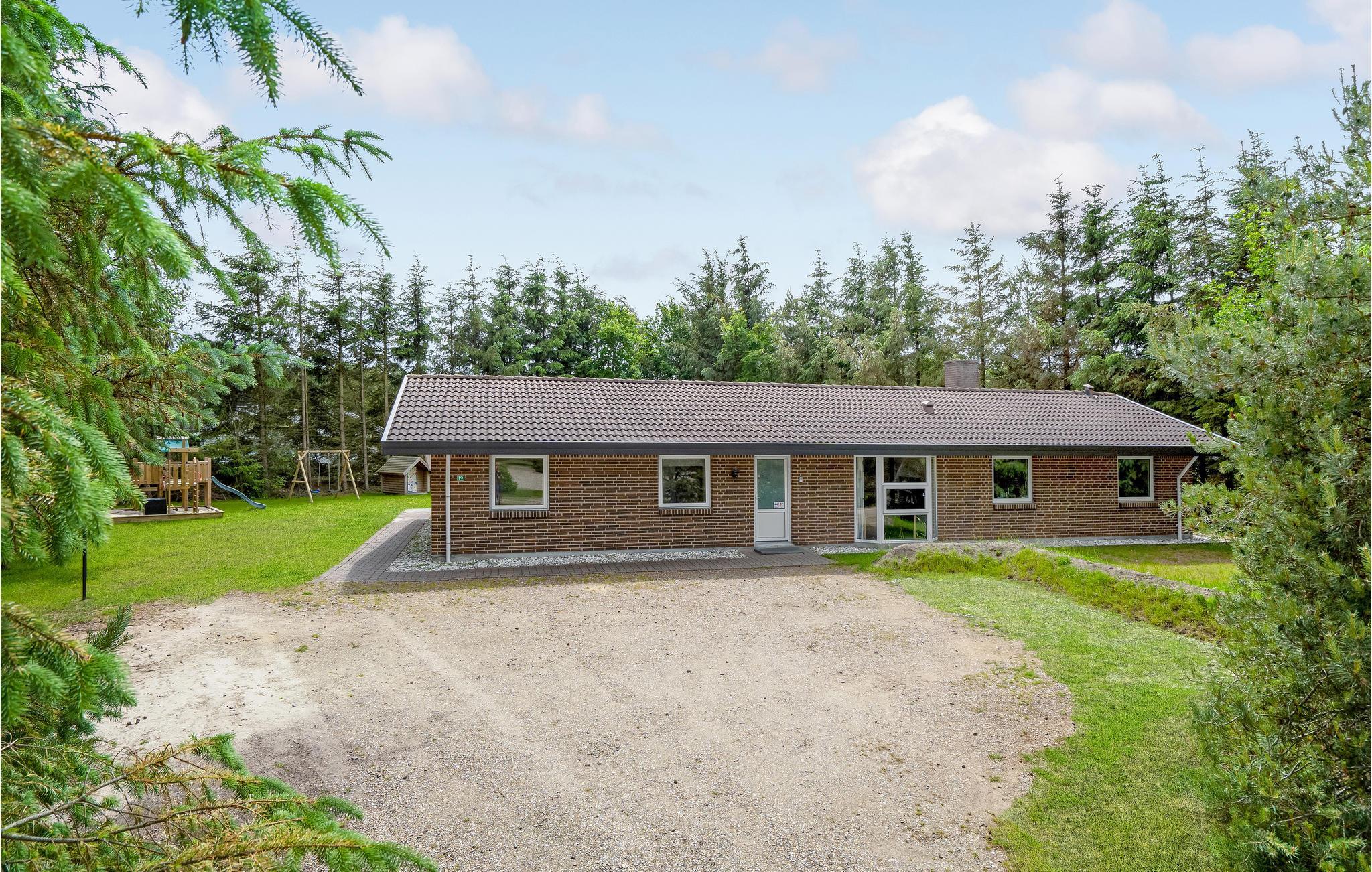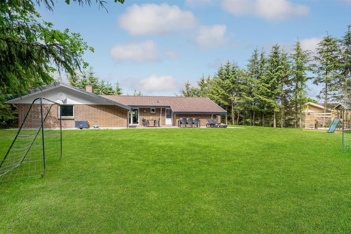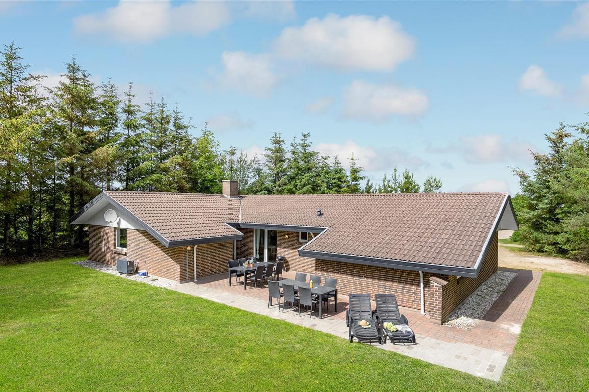 Een vakantiehuis voorzien van praktische functionaliteit op een gedeeltelijk beschut perceel in het mooie Ho, dat dicht bij Blåvand ligt.