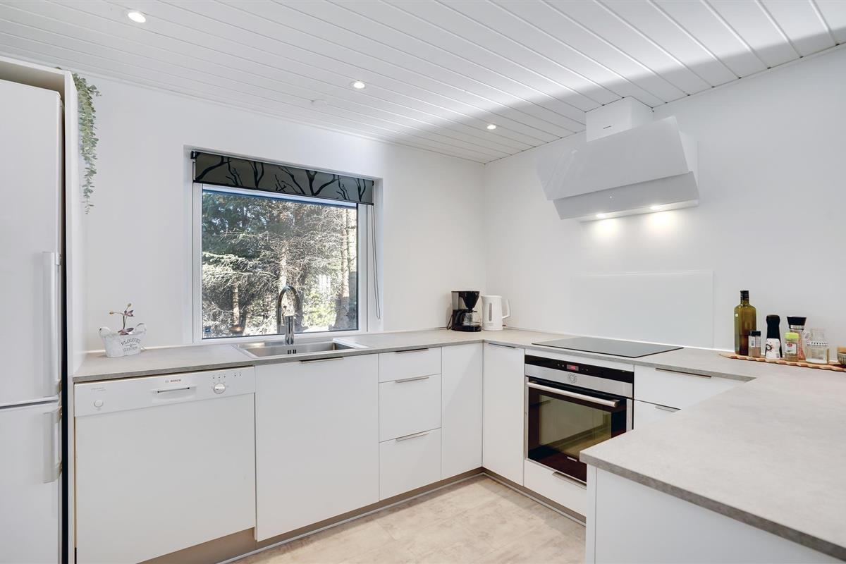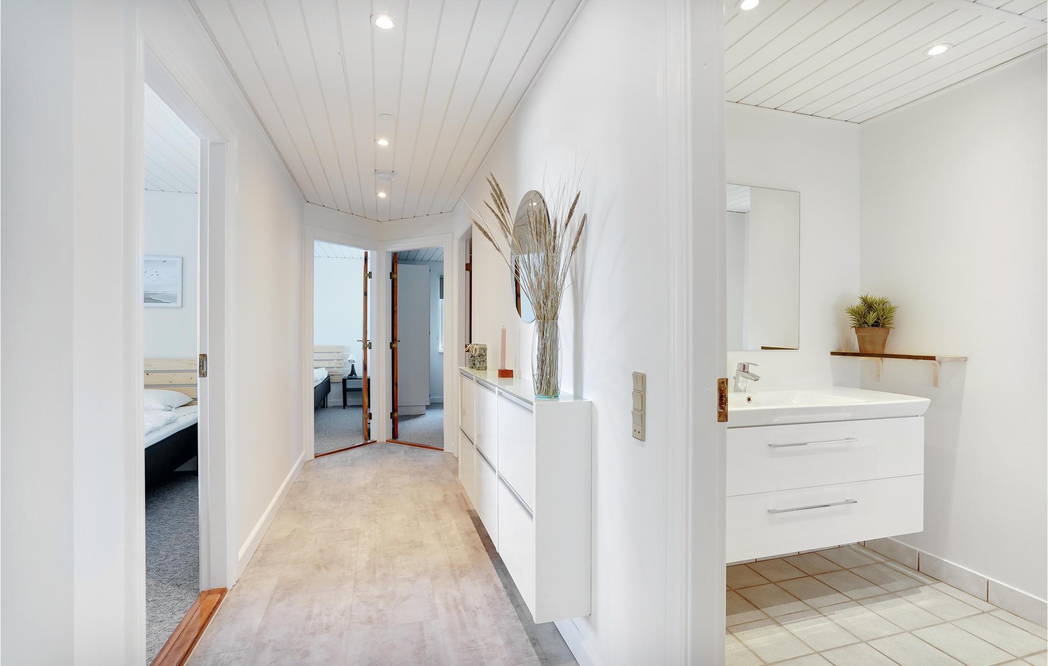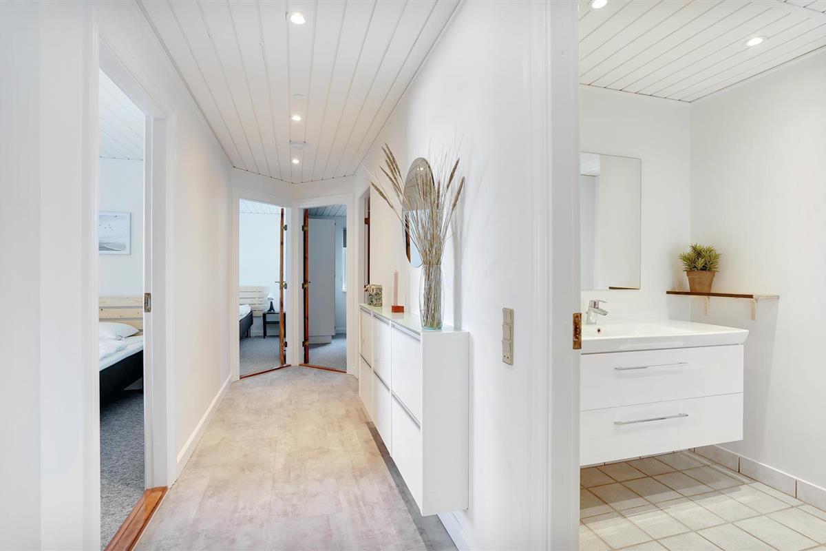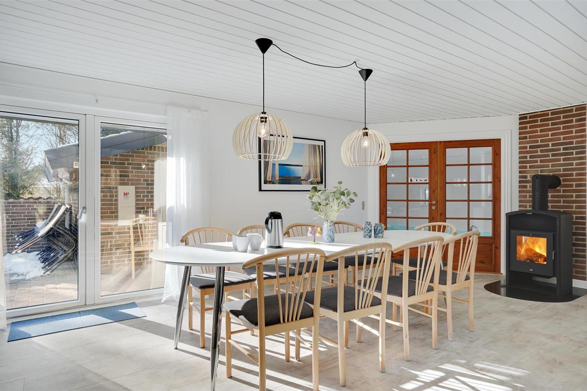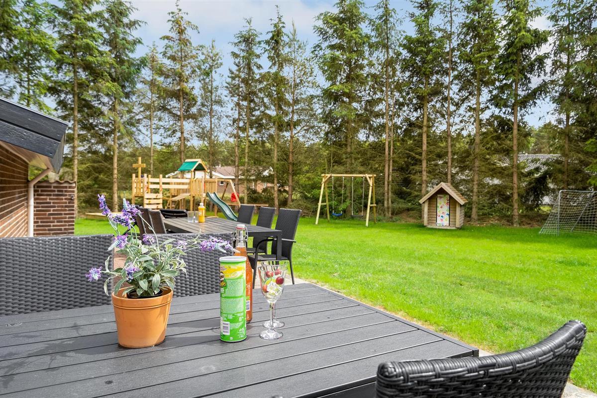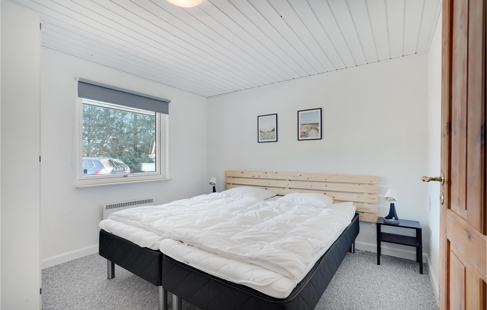 Een vakantiehuis voorzien van praktische functionaliteit op een gedeeltelijk beschut perceel in het mooie Ho, dat dicht bij Blåvand ligt.