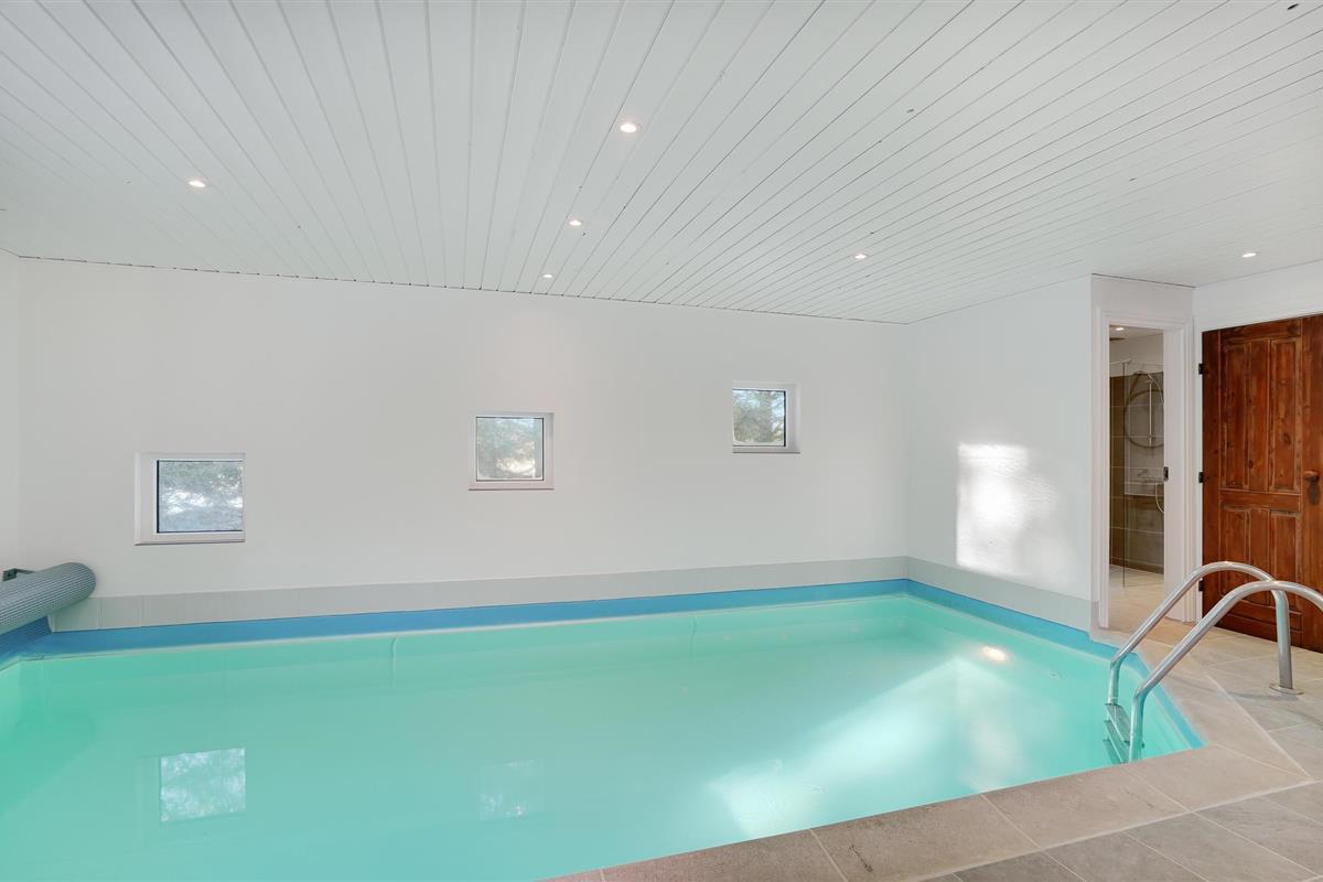 Het hart van het huis is de woonkamer, die open is naar de keuken. Vanaf de eettafel en de keuken heb je uitzicht op het zwembad. In de gezellige woonkamer kun je genieten van films op de tv. Naast het zwembad is er ook een massagebad en een sauna, die je zullen verwennen na lange wandelingen langs de zee of in het bos. Het bos ligt bij wijze van spreken voor de deur. De vijf slaapkamers, de entree van het huis en de bijkeuken bieden voldoende ruimte. Je vakantie zal hier geslaagd zijn. Gemakkelijk bereikbaar vanuit de woonkamer is een mooi terras met winderige gedeeltes. Hier kun je genieten van mooie uren buiten. Vanuit het huis heb je uitzicht op de golfbaan.