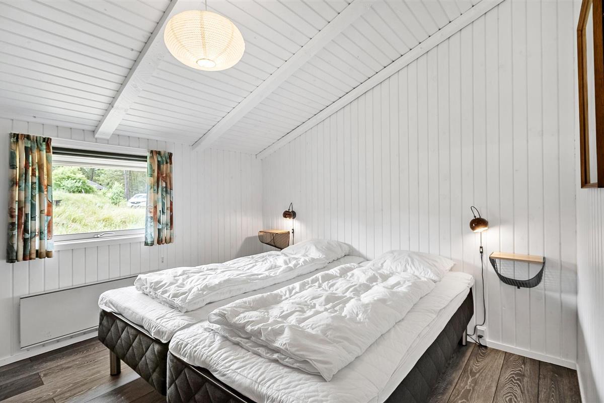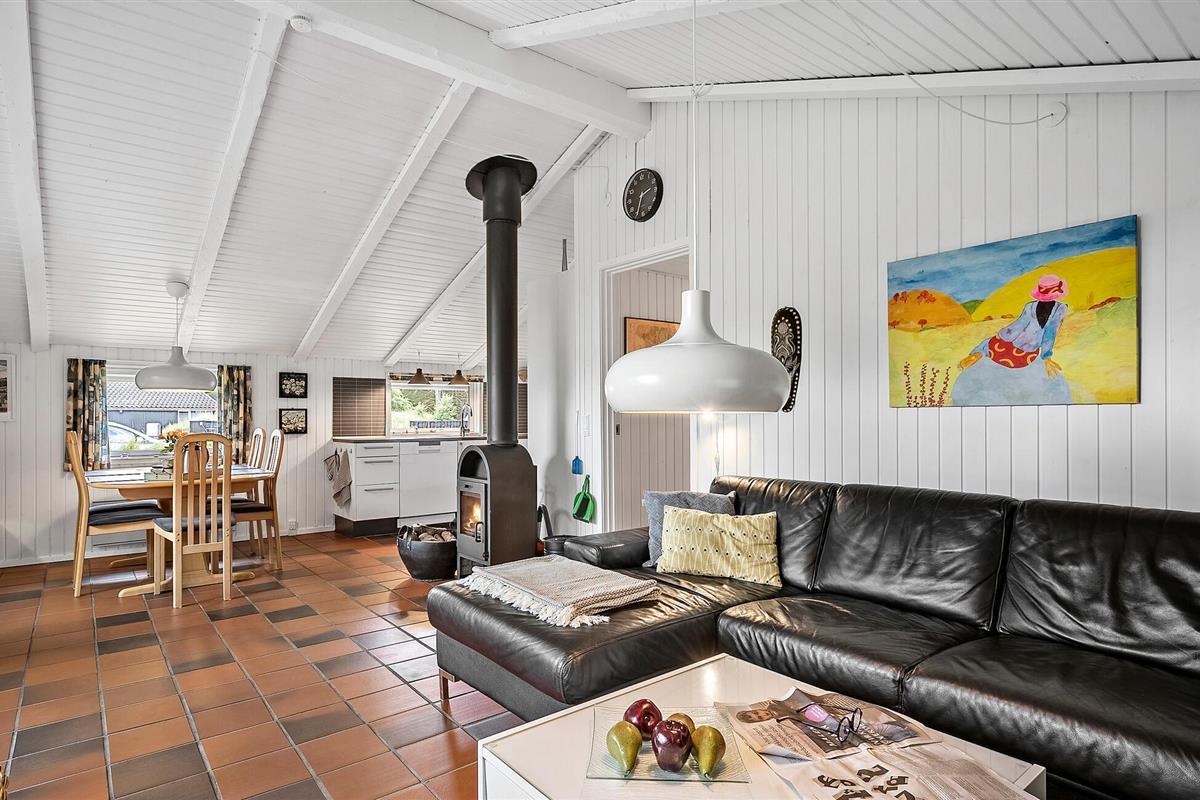 Dit leuke vakantiehuis in Ho ligt op een afgeschermd terrein. Overal houten muren en plafonds en tegelvloeren in de woonkamer en keuken. De keuken en eetkamer staan in open verbinding, en in het verlengde van de eetkamer ligt de woonkamer met een geweldige hoekbank voor een gezellig samenzijn. Het middelpunt is de houtkachel, die met zijn geknetter een heerlijke sfeer creëert. Het hele jaar door kunt u vanaf het omheinde terras genieten van de stilte en de natuur. Met een visvergunning kunt u profiteren van de overvloedige visgronden aan de kust.