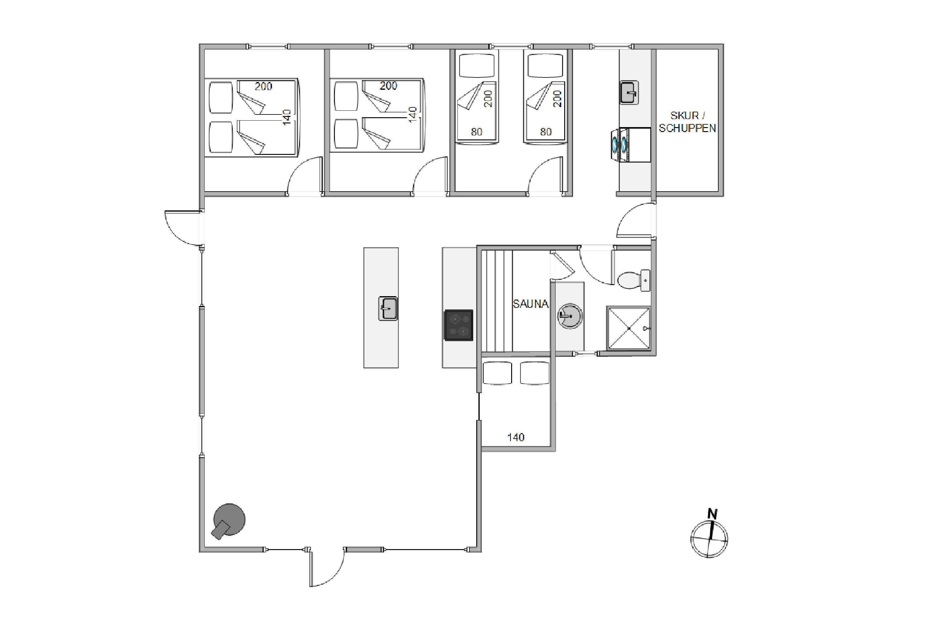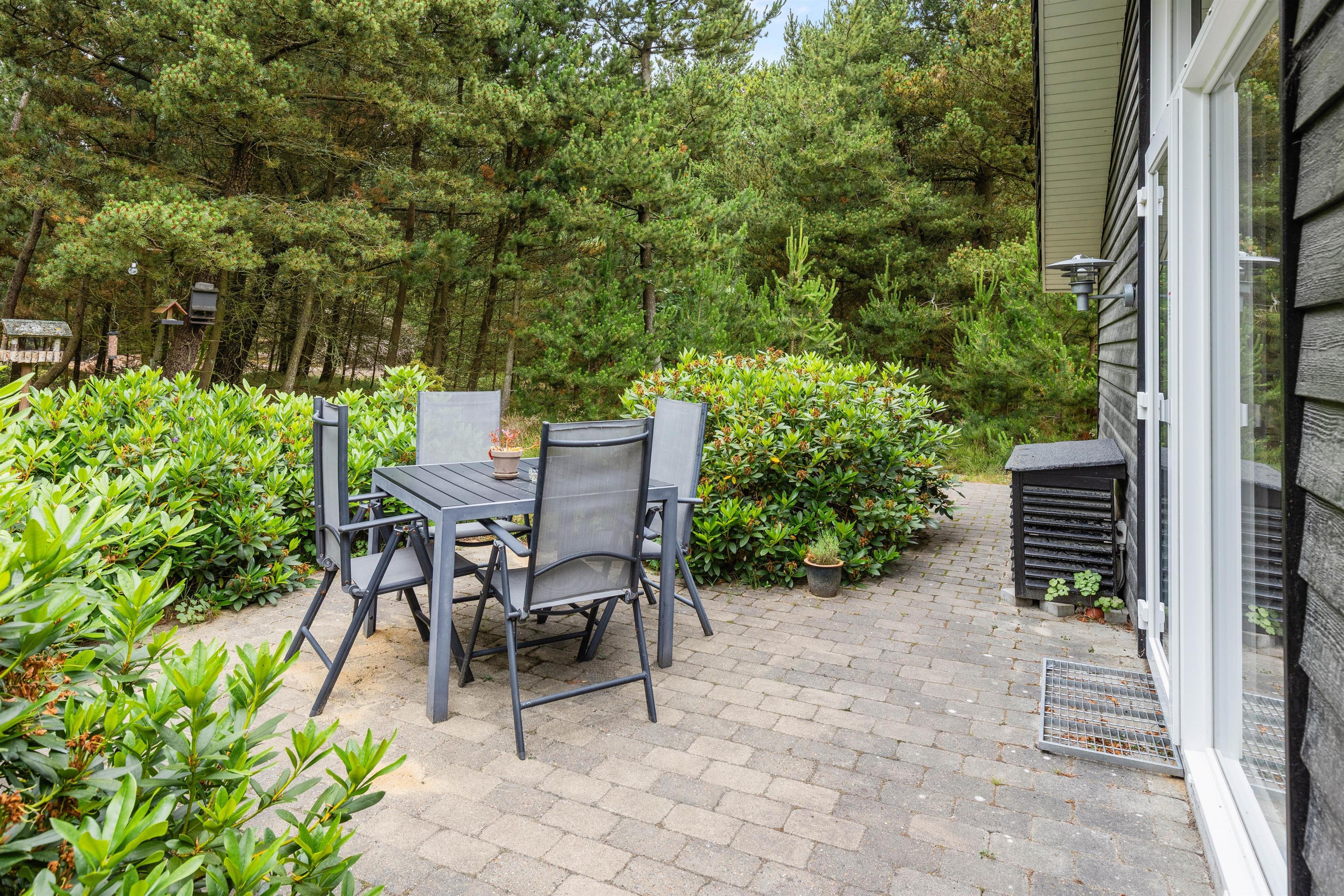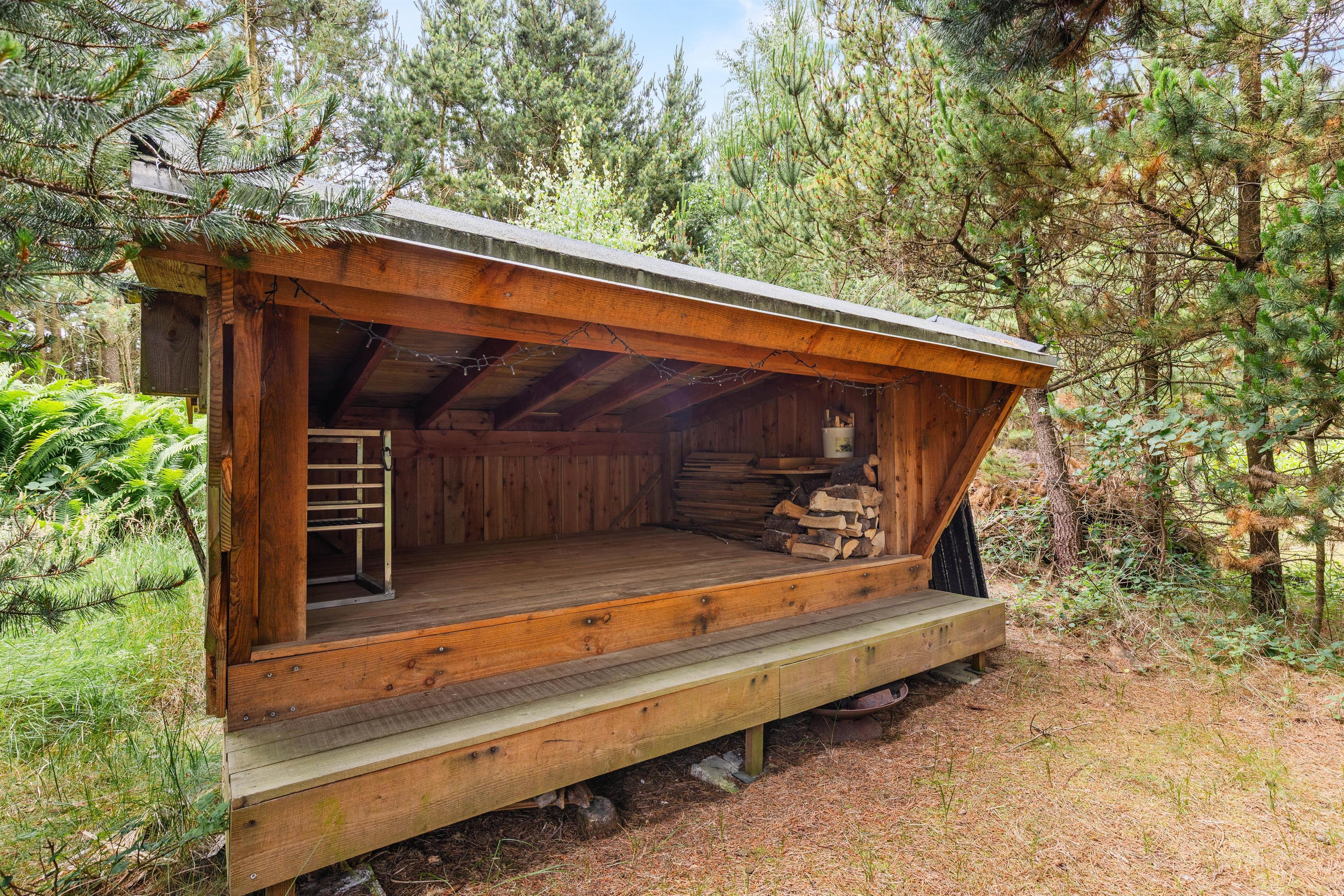 The many trees surrounding the holiday home create a feeling of complete privacy, with nature as your only neighbour. The garden features a cosy shelter where you can sleep outdoors on warm summer nights. Young children can play here while adults relax on the holiday home's terrace.