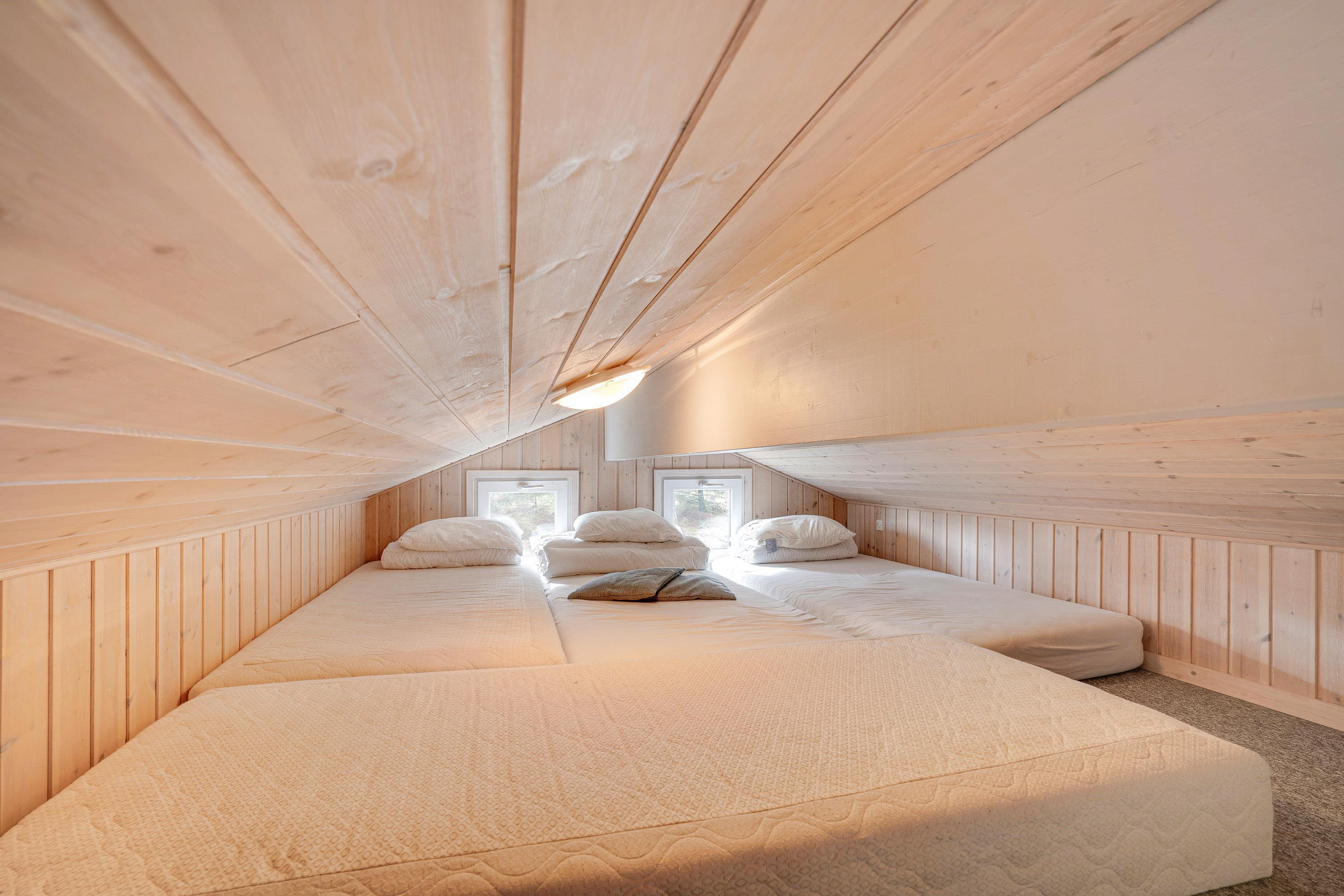 The house accommodates up to 12 people. Additional sleeping space in the mezzanine is particularly suitable for older children, giving them their own private retreat.