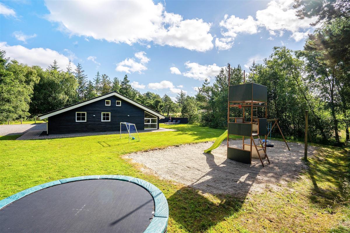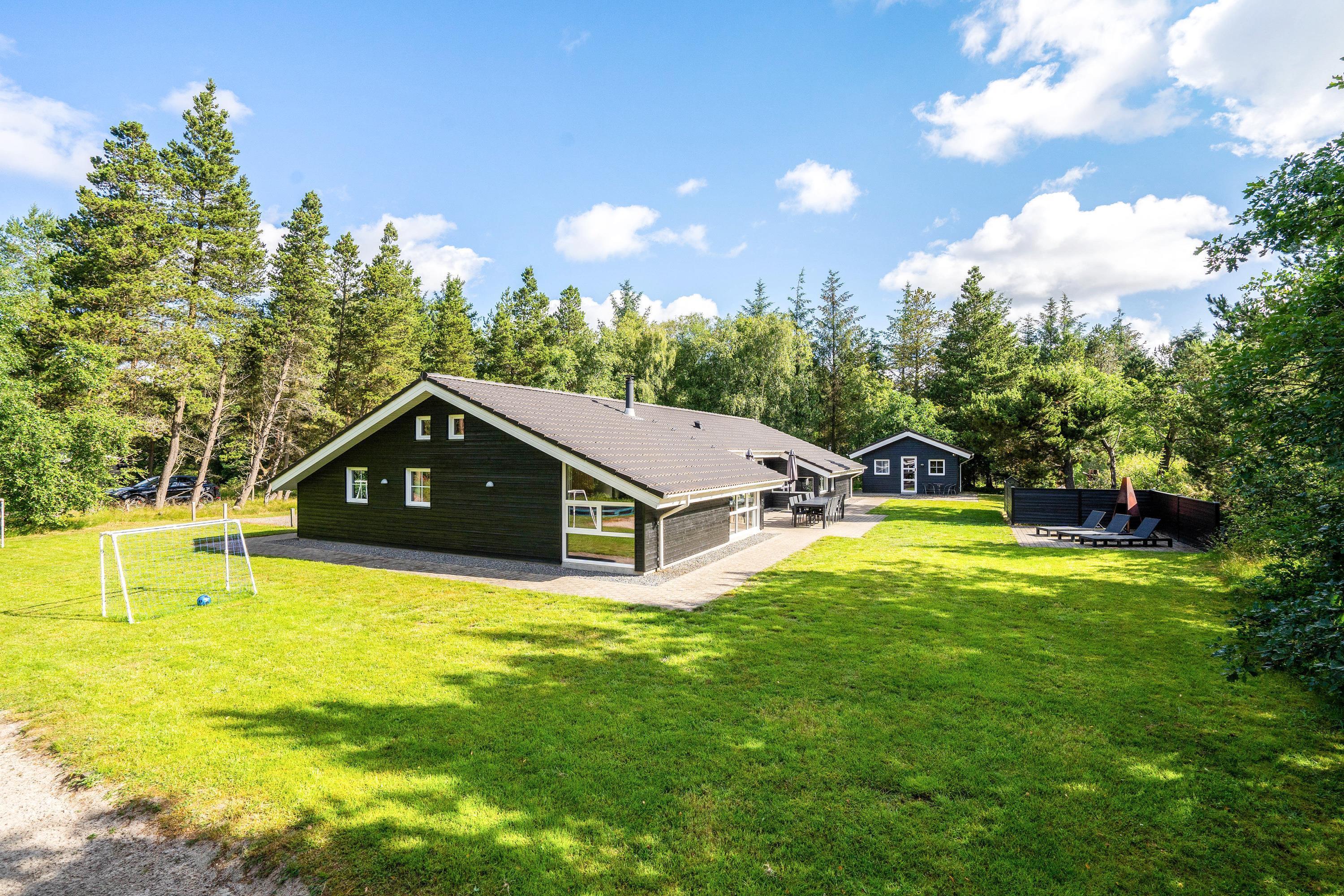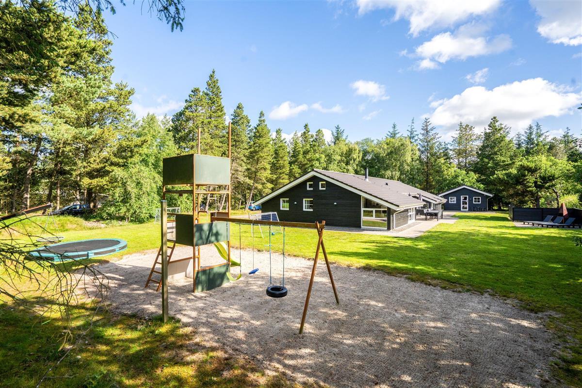 Situated on a large plot bordered by tall trees and bushes in Ho near Blåvand, this well-maintained holiday home with pool accommodates up to 12 people. Whether for extended families or multiple families holidaying together, this holiday home offers a private pool, sauna and indoor whirlpool in a fantastic location on Denmark's west coast. Your two dogs are also welcome, and children will love the outdoor area with playground!