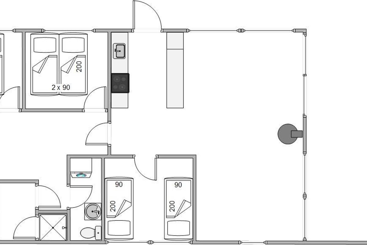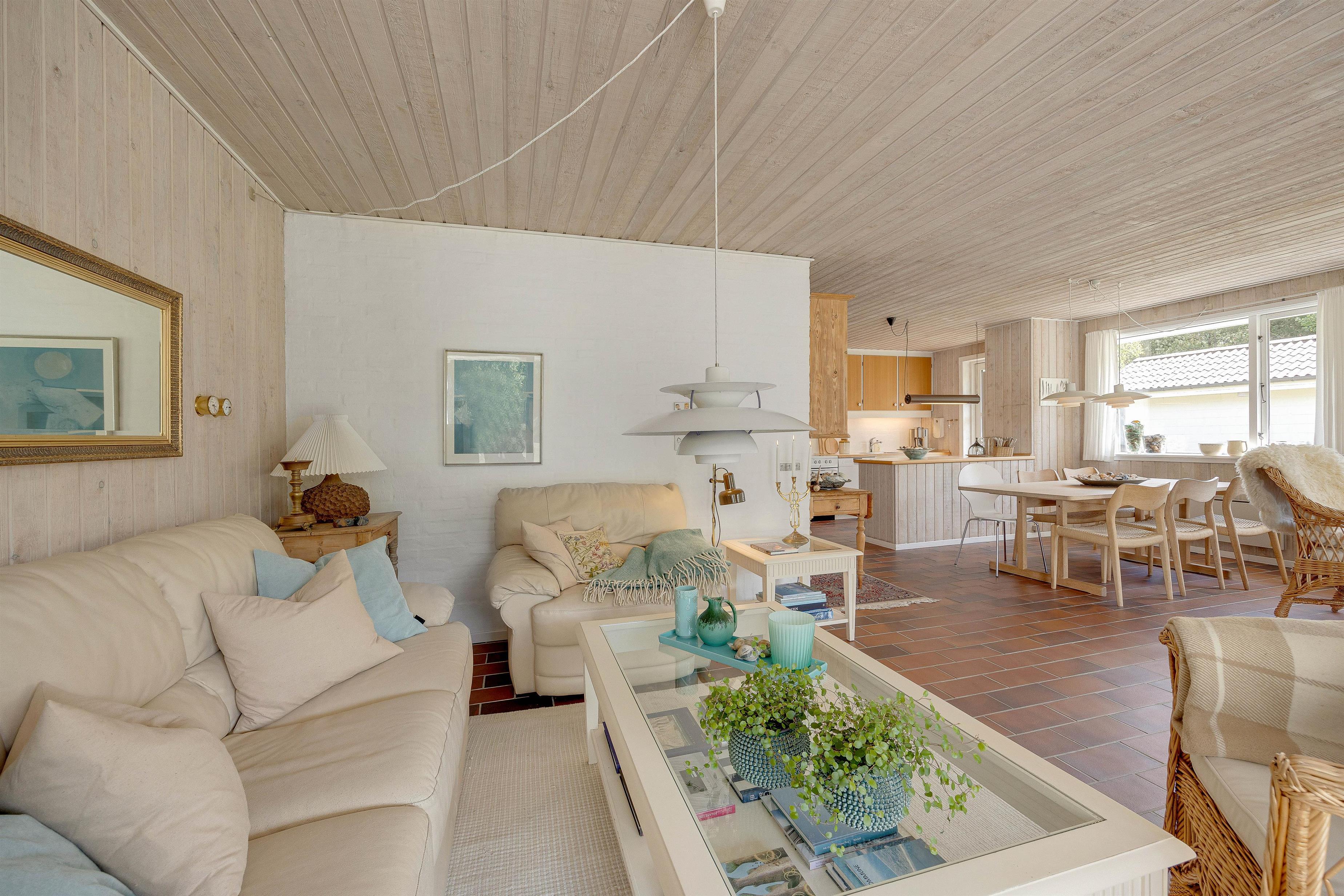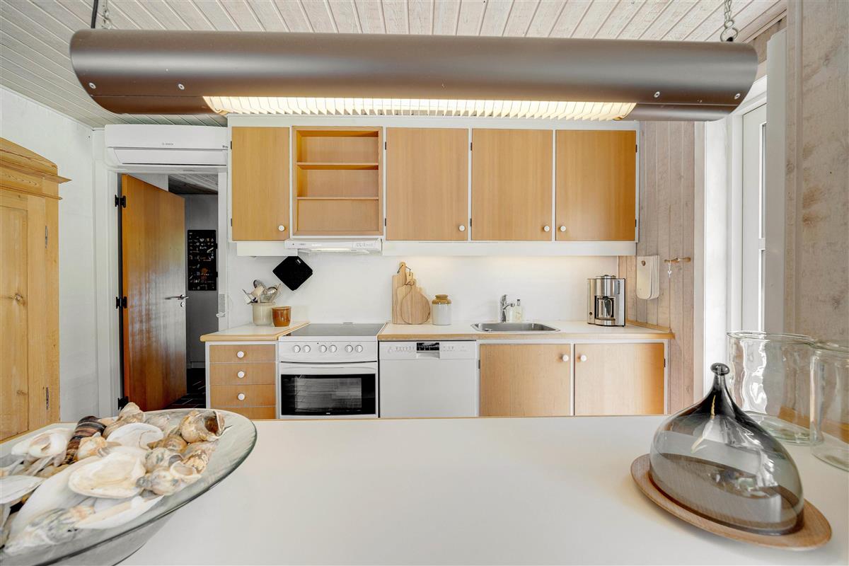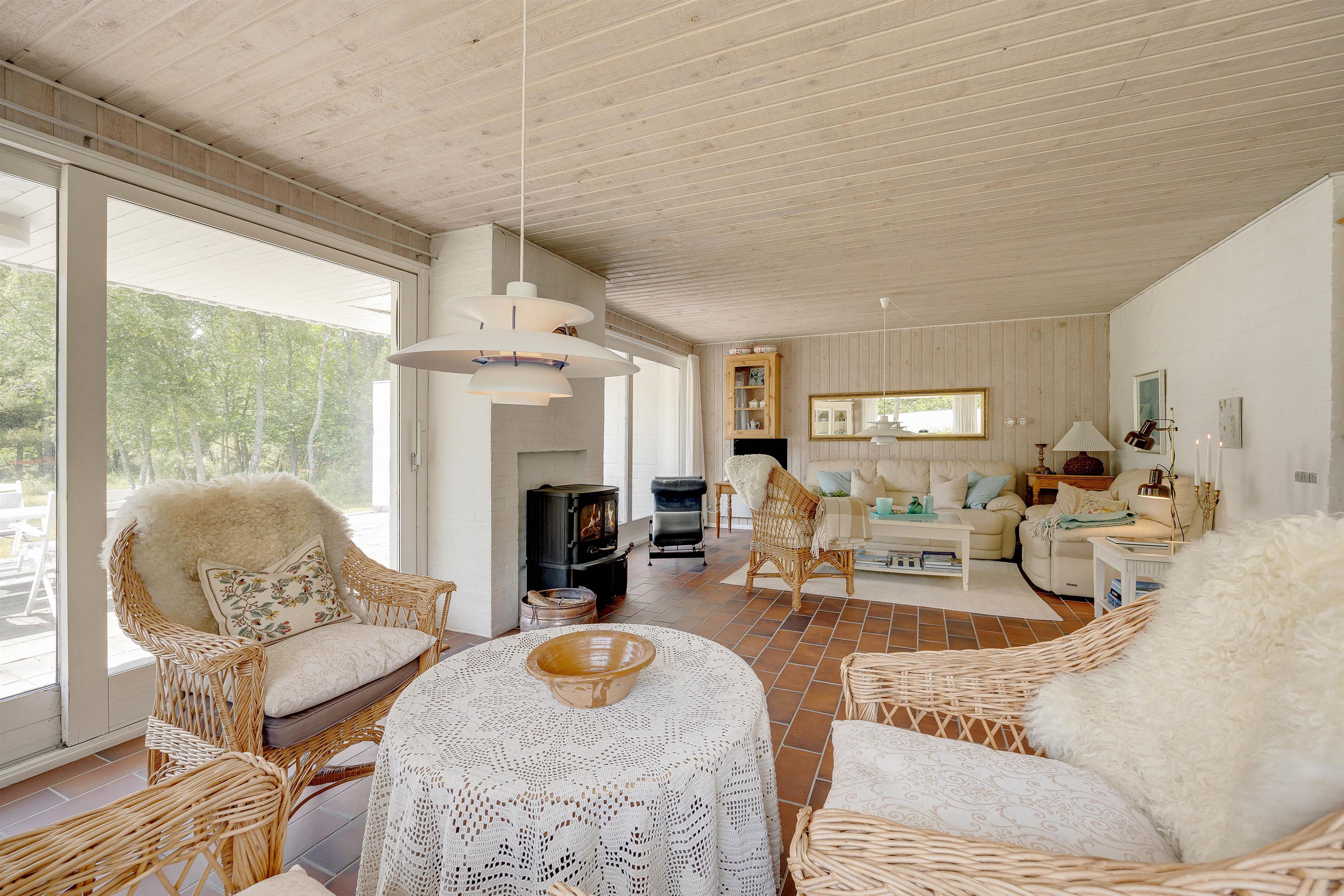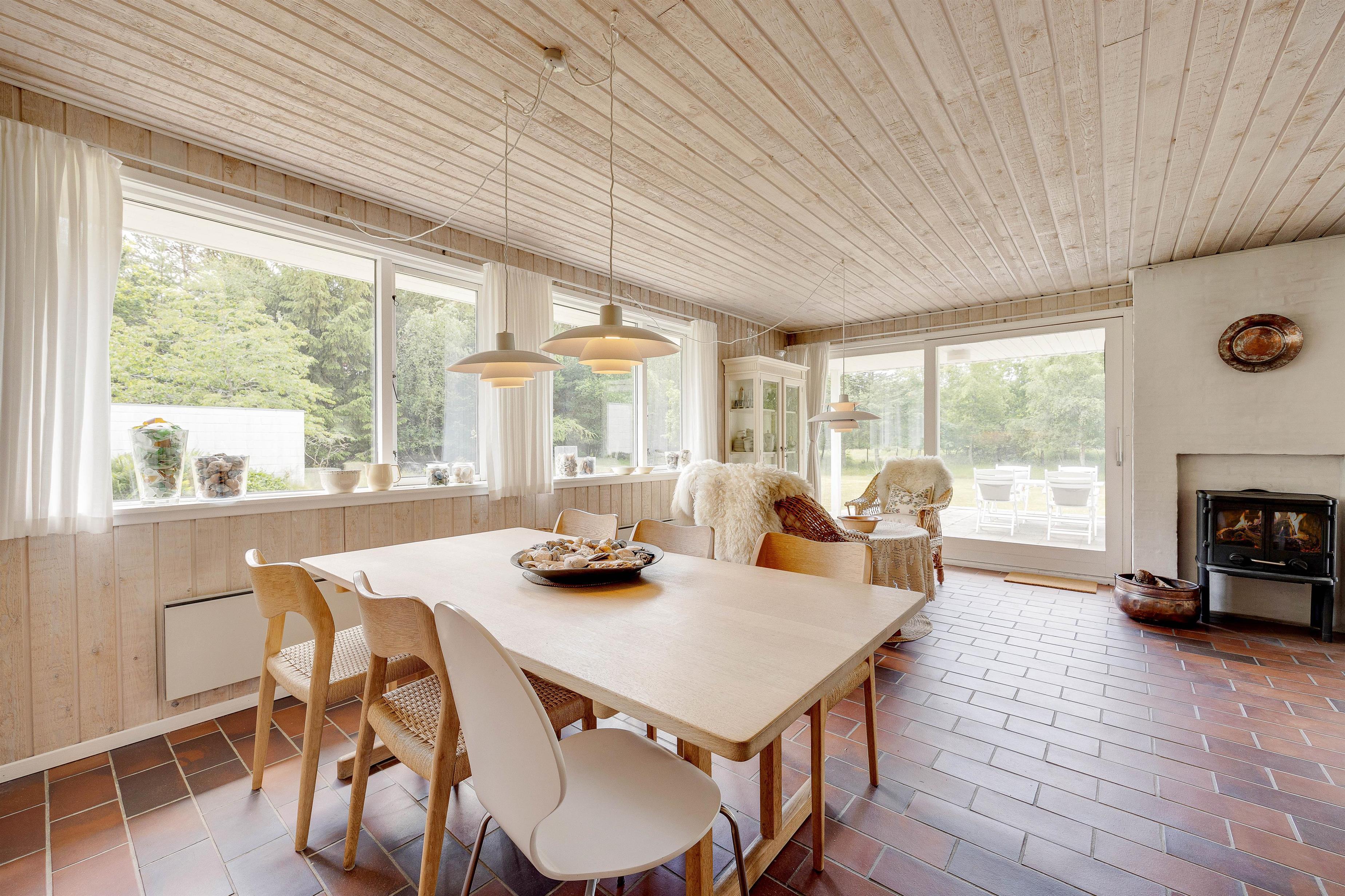 A cosy atmosphere awaits as you enter your holiday home. The kitchen, living and dining areas are all open-plan. You can enjoy comfortable hours curled up on the sofa in front of the warming wood-burning stove or savour a delicious Danish breakfast at the dining table. The house features an energy-efficient heat pump for cost-effective heating.