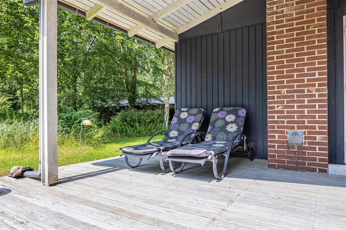 The wooden terrace extends around the holiday home, offering spots for both sun-seekers and shade-lovers. Garden furniture and sun loungers are provided for you to enjoy the beautiful natural surroundings in the fresh air.