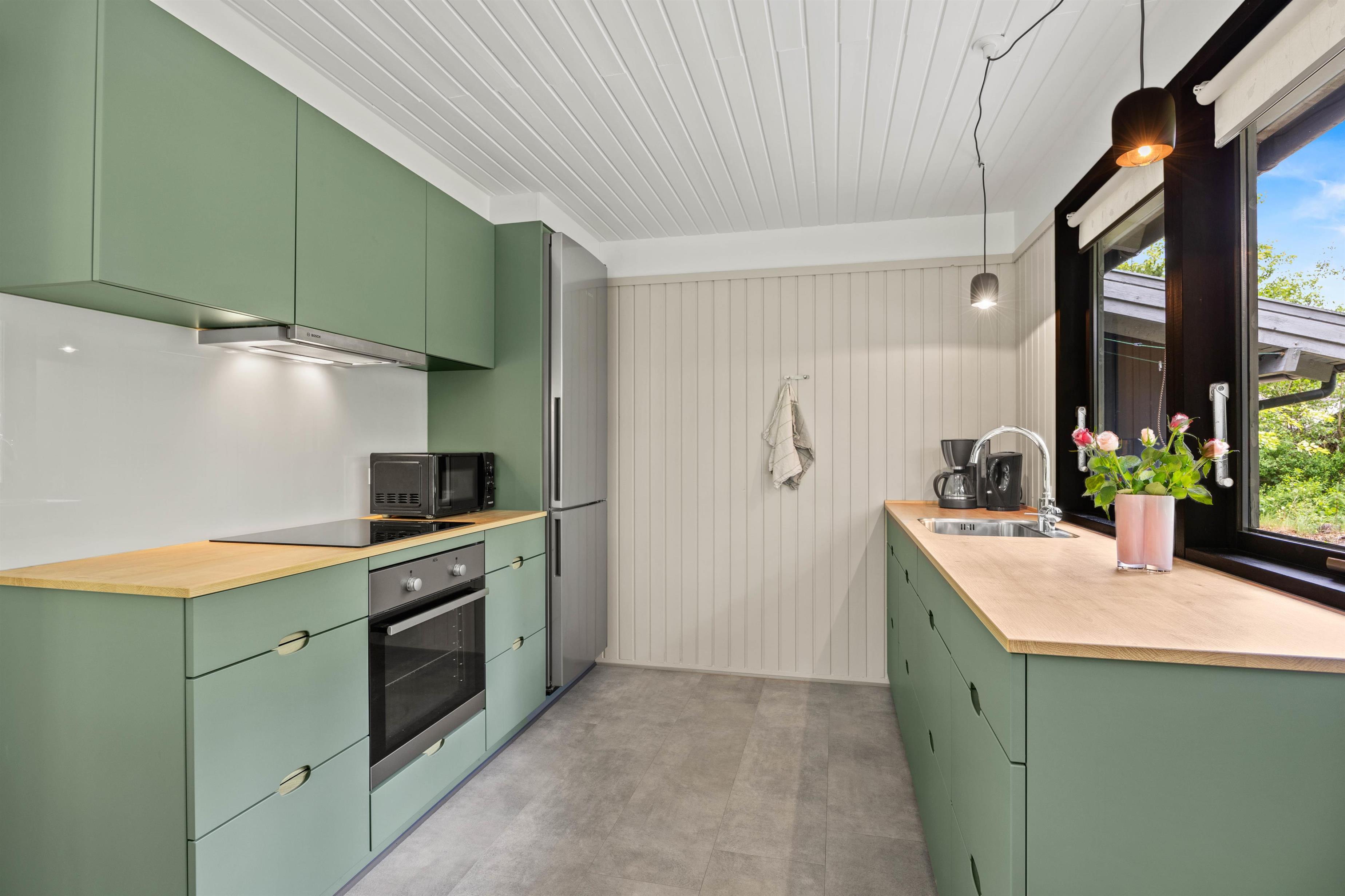 This traditional holiday home with wood-burning stove sits on a beautiful natural plot in Ho, ready for your next holiday. Located at Toftevej 32 in Ho, this holiday home accommodates up to 5 people looking to spend a wonderful holiday together in Ho's beautiful natural surroundings, close to the North Sea.